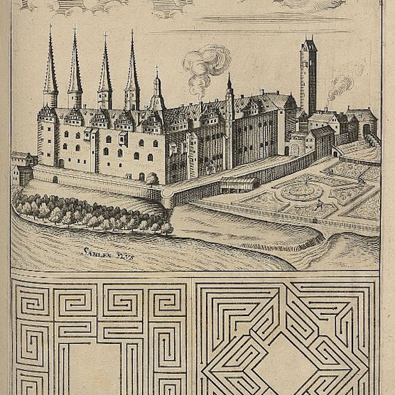 View of Merseburg Castle, with ground plans of the pleasure gardens.