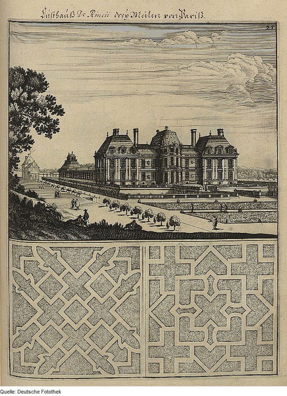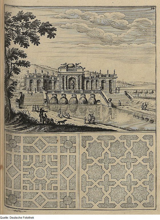 Selected illustrations from the German architect and engineer Georg Andreas Böckler's Architectura Curiosa Nova (1664). The book is mostly concerned with the theory of hydrodynamics, water pump systems and different designs for water fountains, but also contains this series of elaborate geometrical pleasure garden designs. It's not entirely clear whether they are projected plans or a record of what already existed (if anyone knows then please do let us know!).