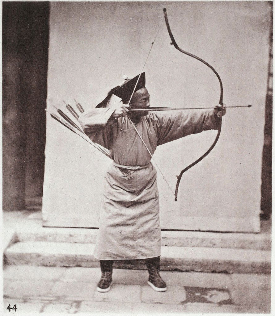 A Manchu Archer, from the North of China, with his bow and arrow, a photograph John Thomson from his Illustrations of China and its people (1874).