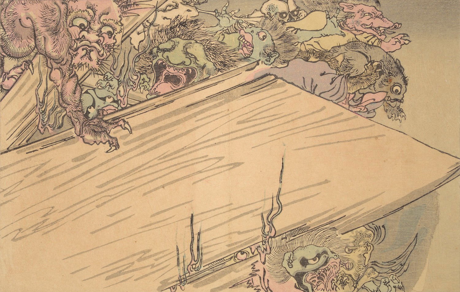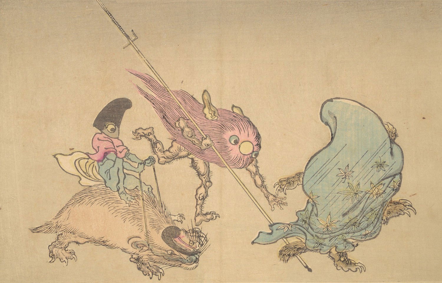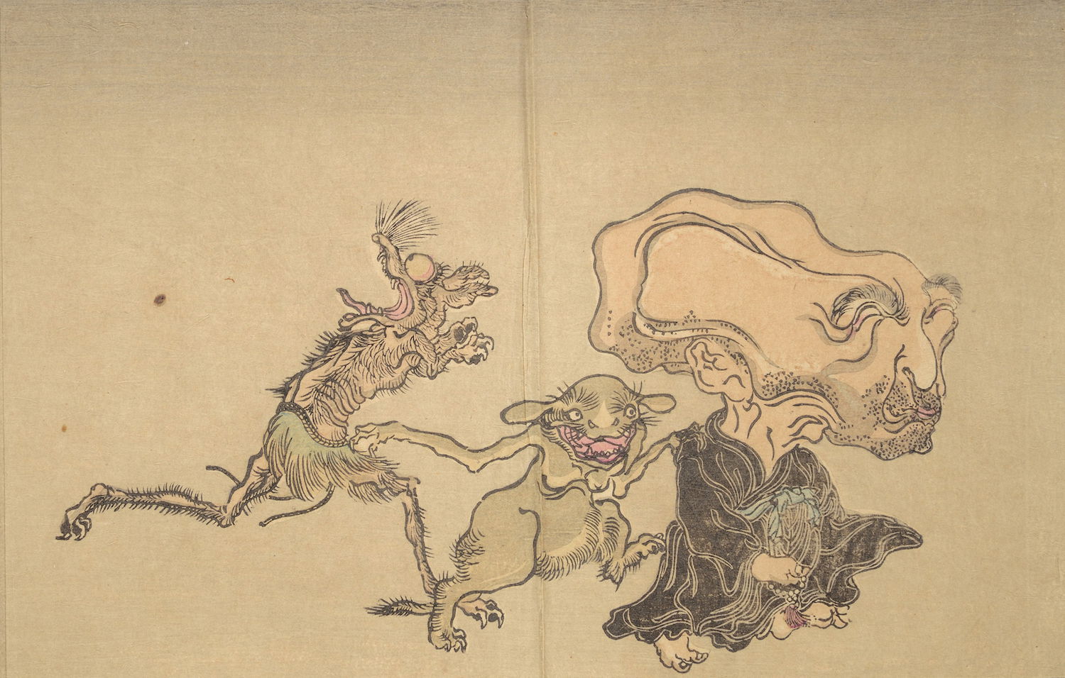 Kawanabe Kyōsai (1831–1889), aka “The Demon of Painting”, composed this book of woodblock illustrations toward the end of a life that had begun during the Edo period, when Japan was still a feudal country, and ended in the midst of the Meiji period, when the country was transforming into a modern state.
