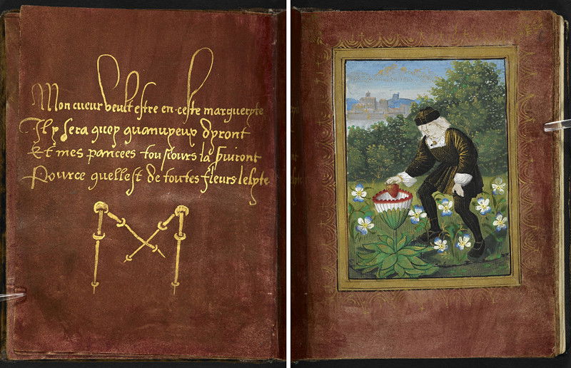 A Valentine's gift to top all Valentine's gifts - the Petit Livre d’Amour (Little Book of Love) was an ornate bespoke book given by the 16th-century Lyon-born poet Pierre Salas to his then lover and future wife Marguerite Bullioud. It measures just 5 by 3.7 inches, hand-written by Salas with gold ink and beautifully illuminated by an artist identified as the "Master of the Chronique scandaleuseas". The work begins with a few pages of prose describing the relationship between the author and the woman he loves before then presenting the rest of the book, 12 "iconologues", a combination of prose and poetry on the left-hand page - including the initials M, for Marguerite and P, for Pierre, scattered about in various forms - and on…