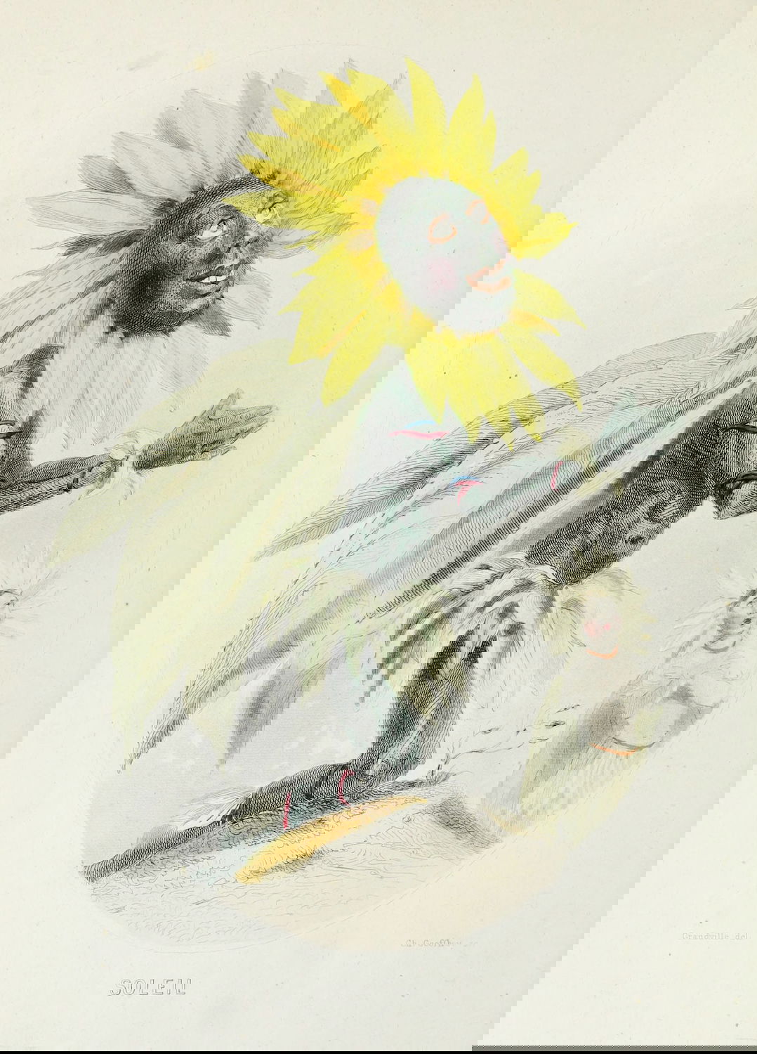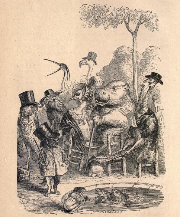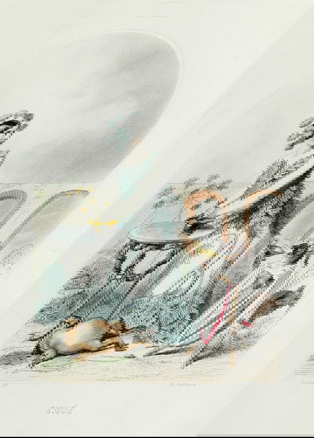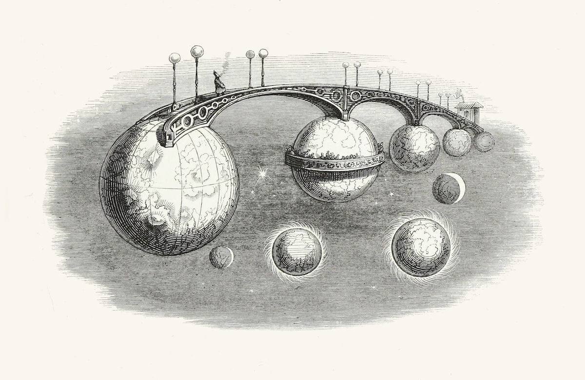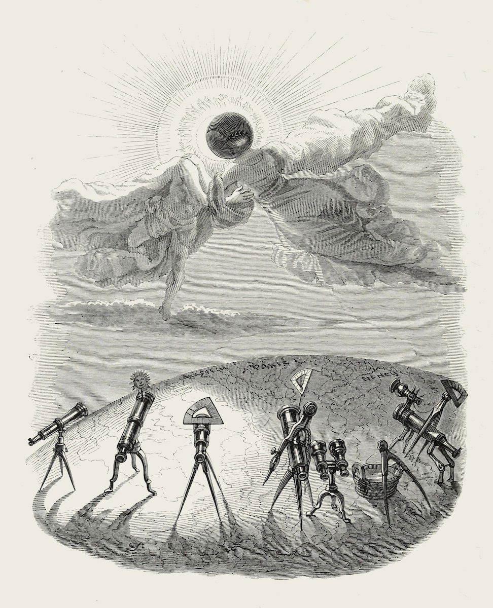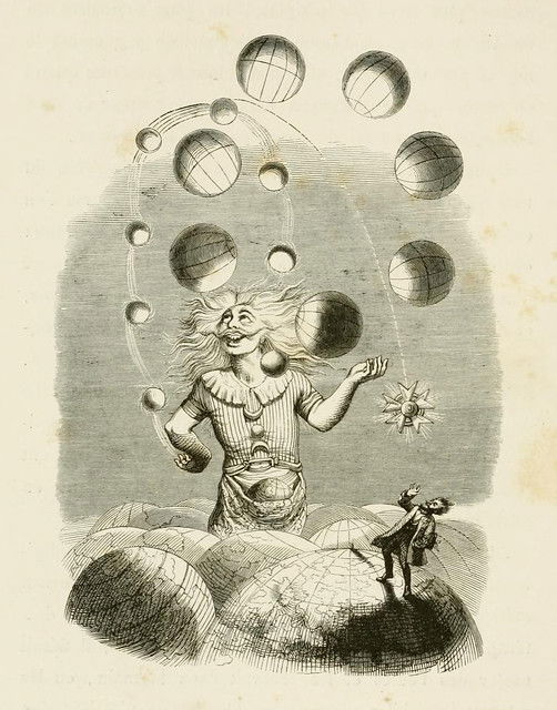 Untitled illustration, showing a juggler of worlds, from J. J. Grandville's Un Autre Monde (1844).