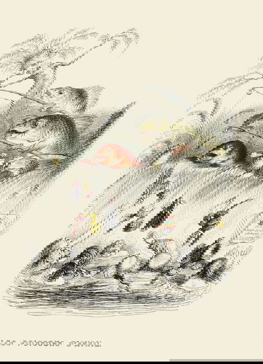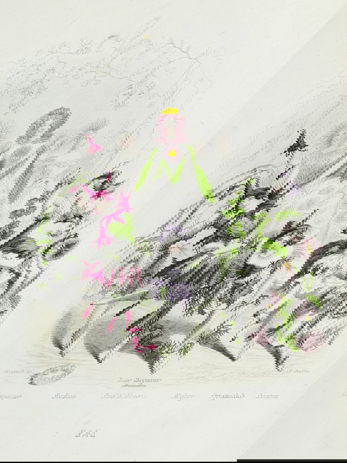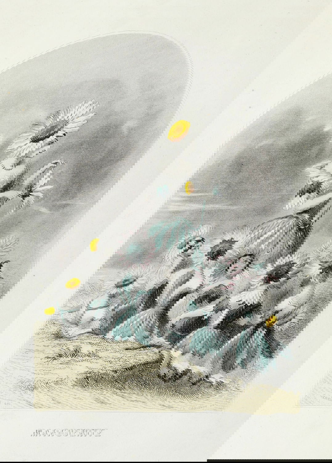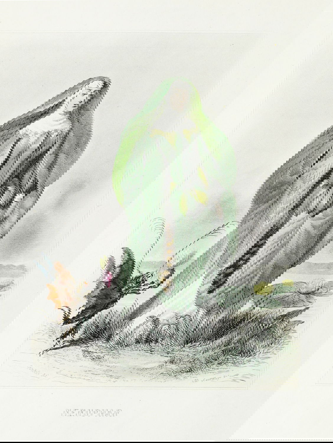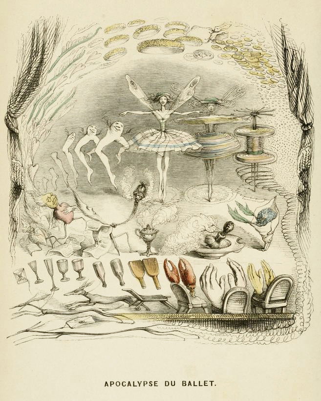 Untitled illustration, showing a juggler of worlds, from J. J. Grandville's Un Autre Monde (1844).