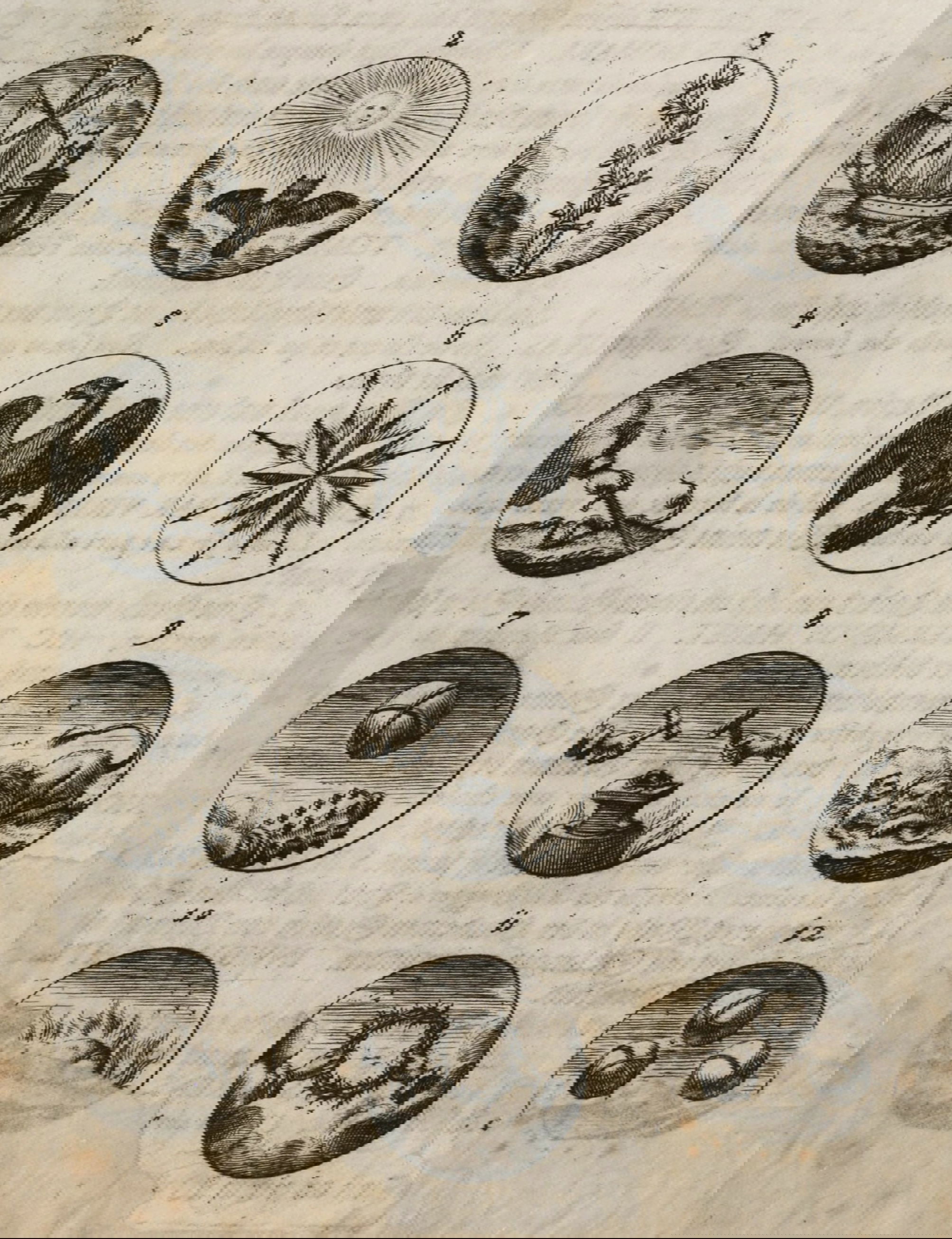 Some believe that the tradition of personal badges (or “devices”) and emblems descends from antiquity, when militaristic signs were carried into war to instill terror in enemies and influence the outcome of battles. Daniel S. Russell discusses the “strange or prophetic dimension” that these symbols could mediate in medieval Europe, giving the example of Charles VI, who adopted the device of a crowned, winged deer after capturing a stag wearing a copper collar in the forest of Halatte, which was inscribed with mysterious, ungrammatical Latin: “Hoc Caesar me donavit” (Caesar has given me this”). Into the seventeenth century, these images mixed with heraldry and retained their talismanic properties, but gained newfound associations as reflections of the bearer’s intellect and wit. Here the “emblem” tradition —…