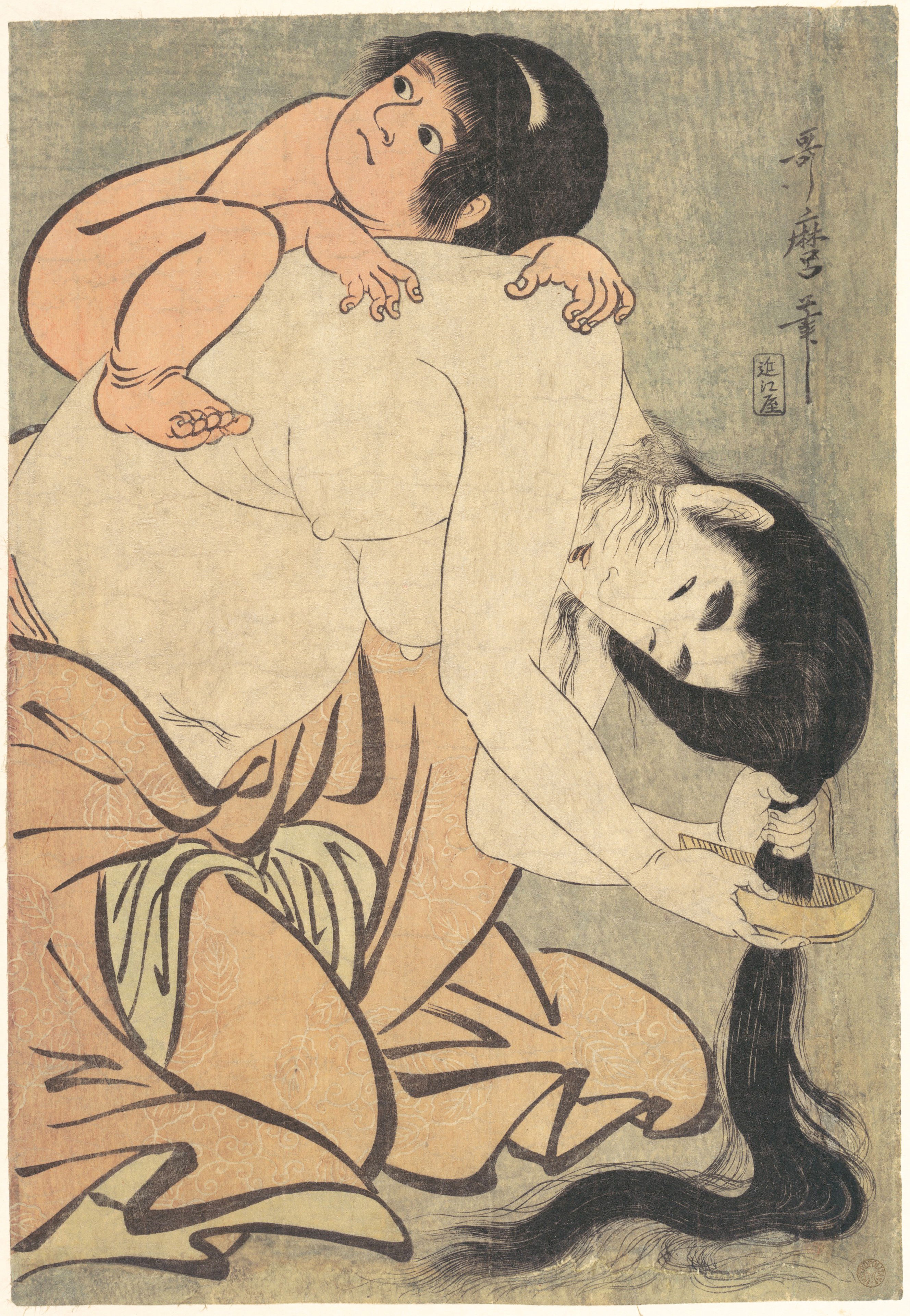 Yamauba Combing Her Hair with Kintarō
