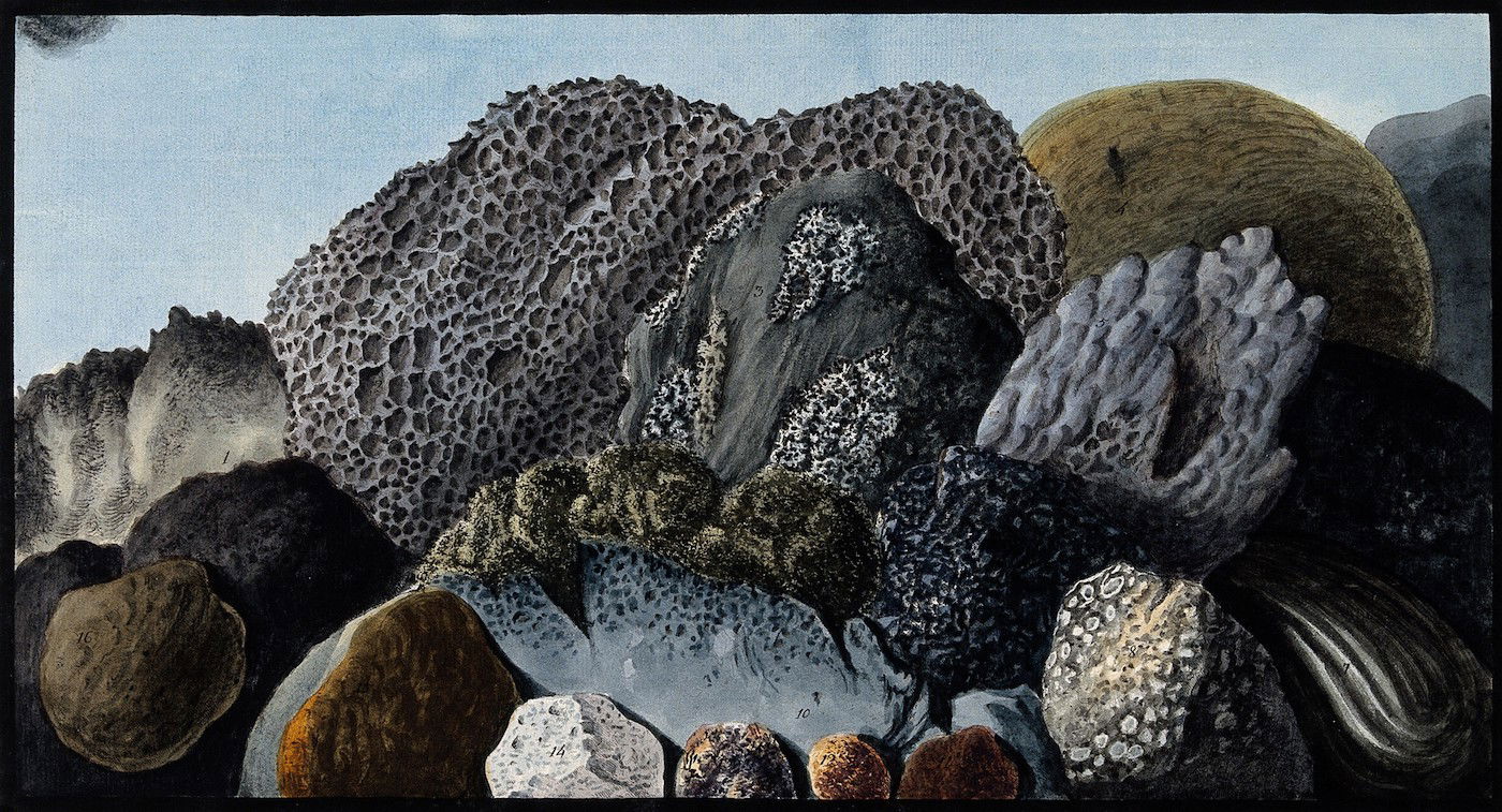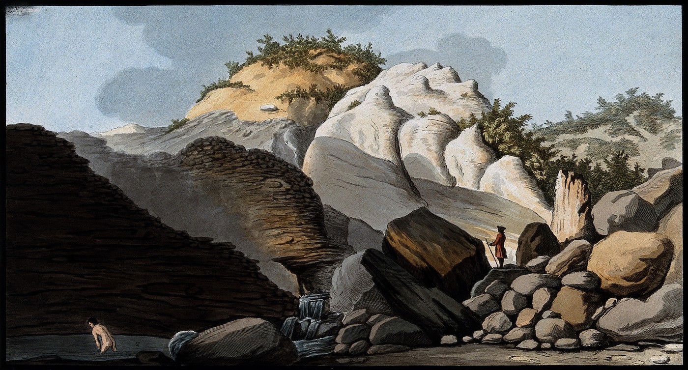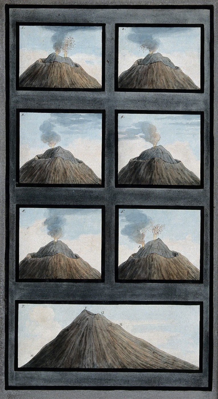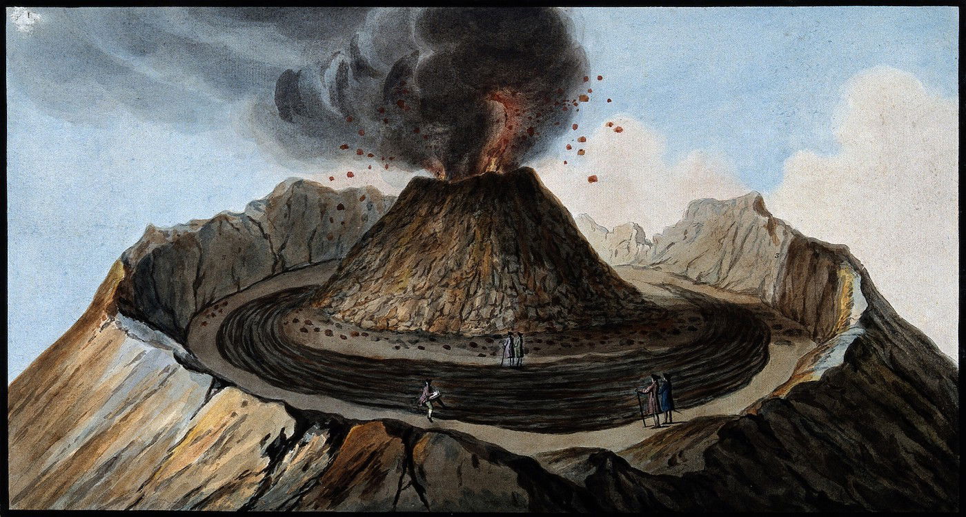 A British diplomat serving as Envoy Extraordinary to the Kingdom of the Two Sicilies, William Hamilton (1730–1803) spent a large part of his life in Naples — observing volcanic activity, collecting antiquities, and shepherding adventurous travelers, including kings and queens, to the summit of magma-rich mountains. Present for the eruptions of Mount Vesuvius during the mid-to-late eighteenth century, Hamilton wrote Campi Phlegraei in two parts, with a tertiary supplement, based on his Observations on Mount Vesuvius (1772) for the Royal Society. Composed as a bilingual French and English edition, the work is a notable watershed in volcanology, trading biblically-inflected narratives of catastrophe and creation for precise observational description. To illustrate these volumes in a manner true to his approach, Hamilton recruited the English-born Neapolitan artist…