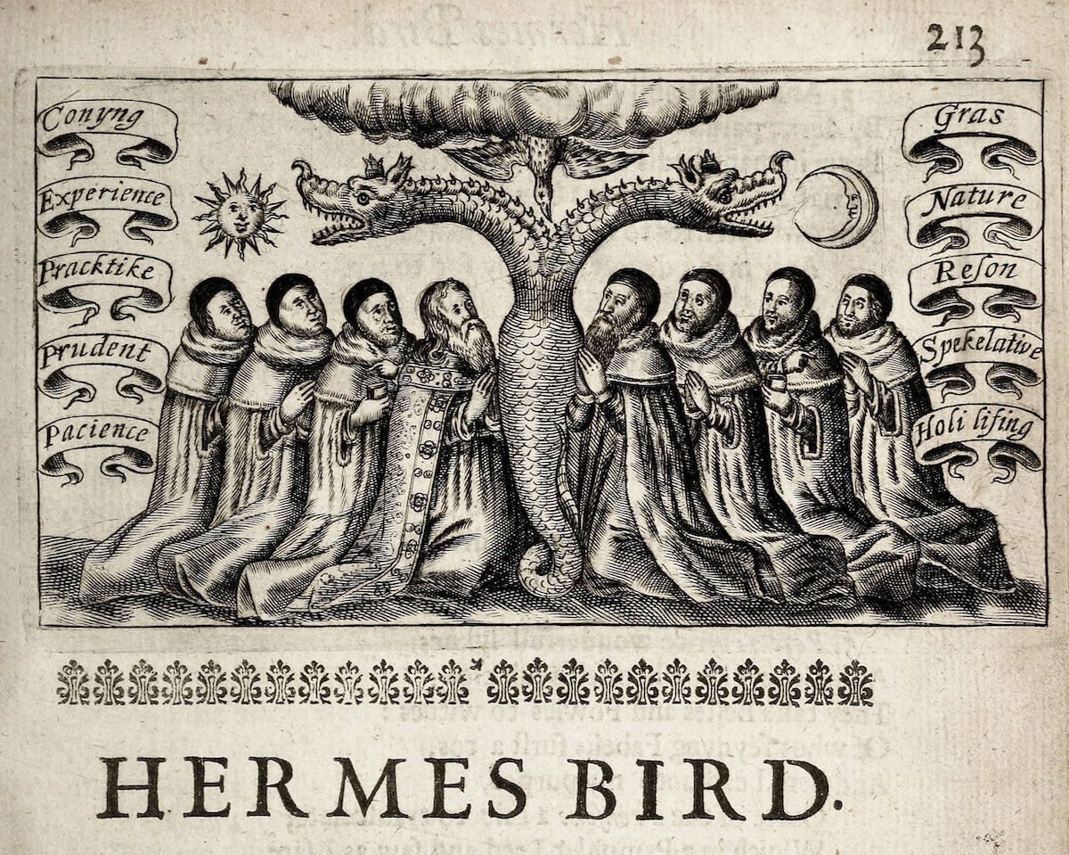 Theatrum Chemicum Britannicum — compiled and edited by antiquary extraordinaire Elias Ashmole (1617–1692) — is perhaps the seminal volume of English alchemical literature. Most significantly, it brings together a number of hermetic works previously only available in privately held manuscripts, including, as the subtitle has it, “severall poeticall pieces of our famous English philosophers, who have written the hermetique mysteries in their owne ancient language”. Among these famous English philosophers were John Gower, George Ripley, Thomas Norton, and Geoffrey Chaucer — whose alchemically themed “Tale of the Canans Yeoman” is excerpted from The Canterbury Tales.