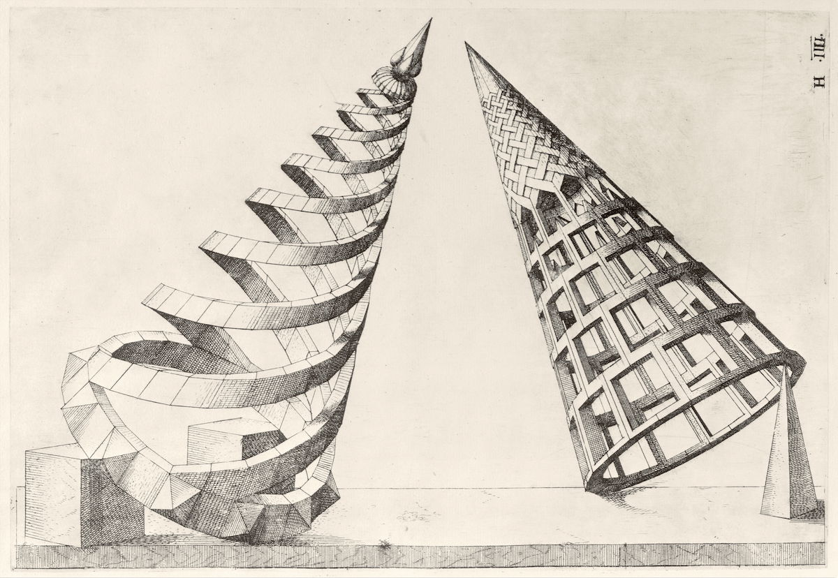 Etching by Jost Amman for Wentzel Jamnitzer's Perspectiva Corporum Regularium (Perspective of the Regular Bodies), a lavish exploration of perspectival geometry.
