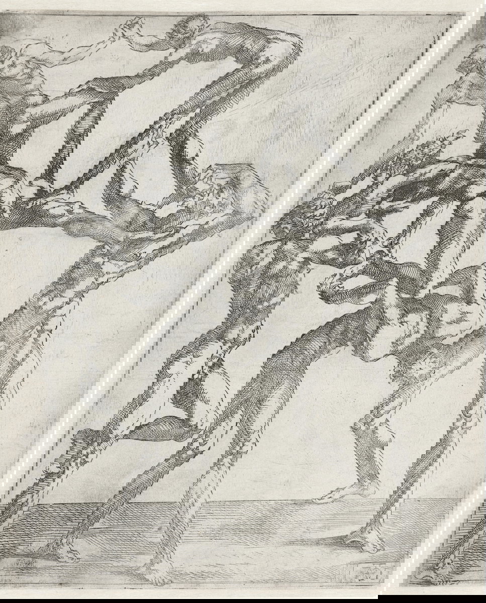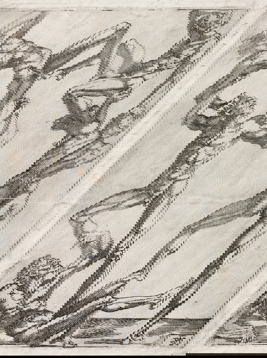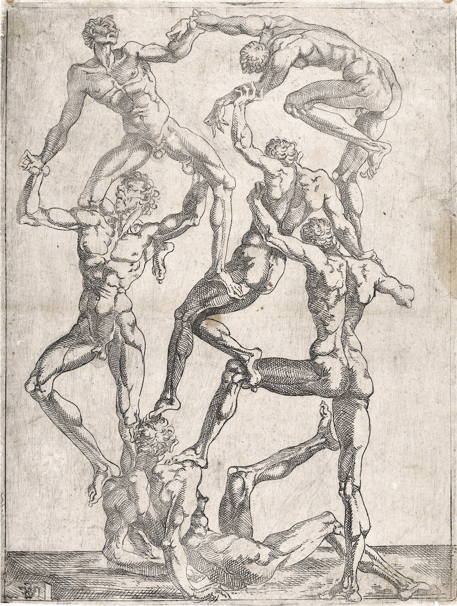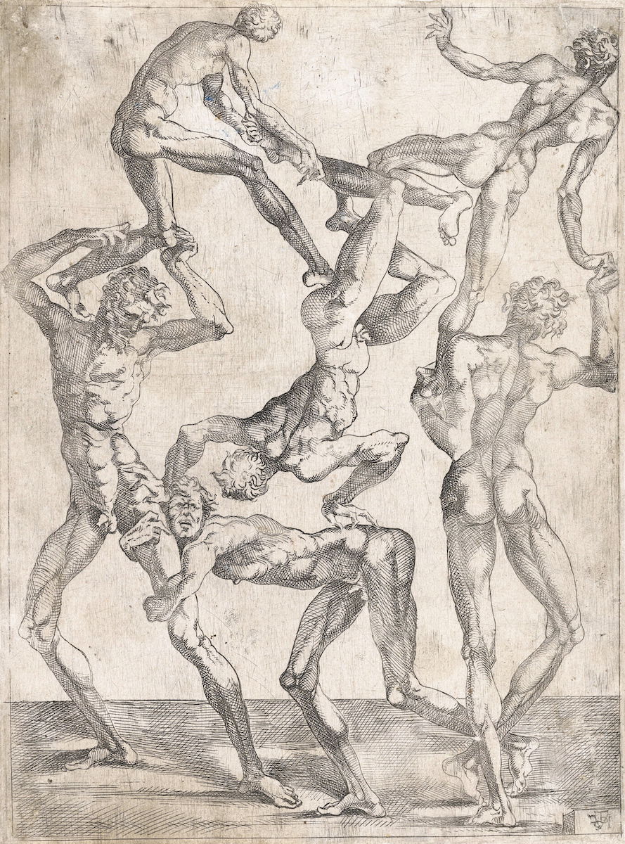 These etchings of flayed (écorché) men in acrobatic poses attributed to the Italian-born Juste de Juste (ca. 1505–1559) were almost certainly produced at the court of Fontainebleau in the 1530s. Juste de Juste was born near Florence in the early 1500s. He was the son, grandson, and nephew of Italian sculptors whose work was central to the Renaissance. Both his father and uncle —called Antoine and Jean Juste, respectively — had made their names in France, creating monuments for palaces and churches from Brittany to Paris. When he came of age, Juste de Juste followed in his elders’ footsteps. During the 1530s, he was employed at the château of Fontainebleau as a painter, sculptor, and stucco worker. It’s at least plausible he did some etchings…
