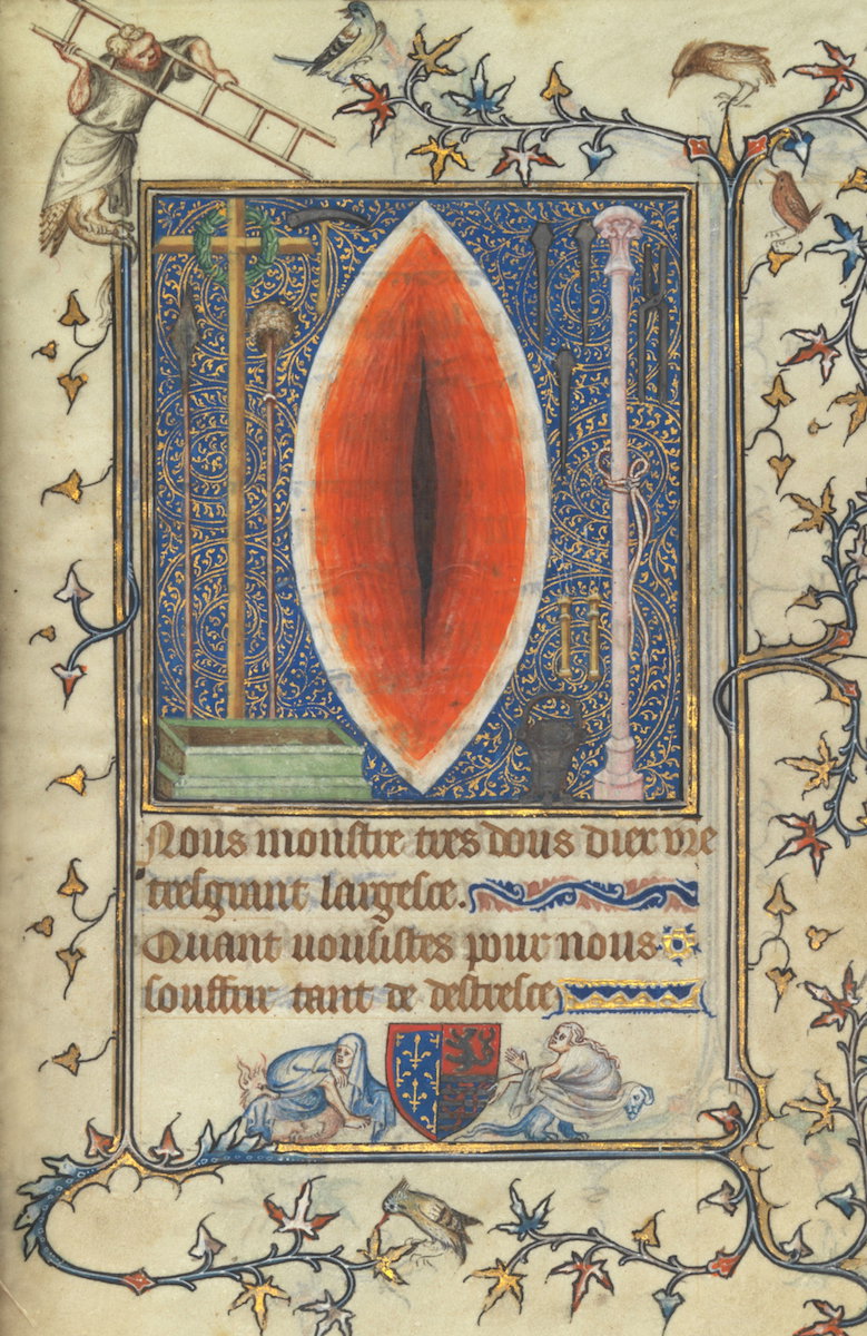 Image of the "Holy Wound", from a page of The Prayer Book of Bonne of Luxembourg, Duchess of Normandy, created prior to 1349 and attributed to Jean Le Noir.