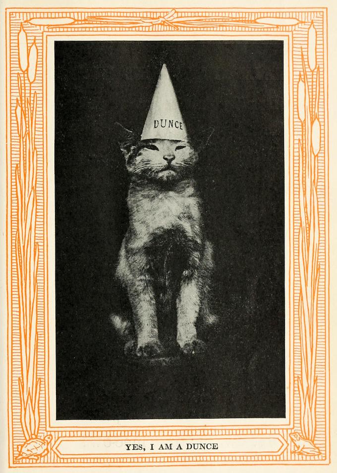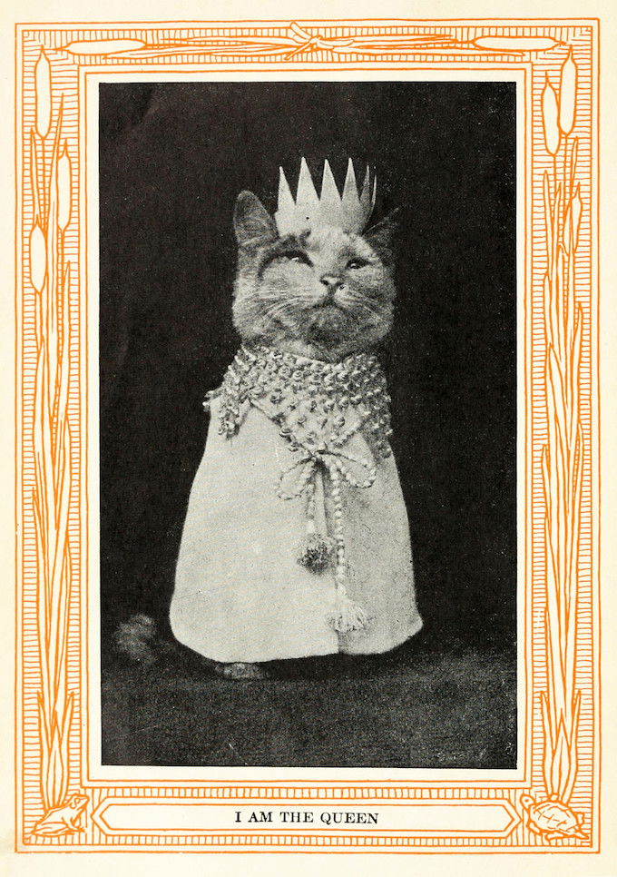 Before LOLCat, Grumpy Cat, Longcat, Nyan Cat, before all the famed kitties of the internet age, before the modern computer was but a glint in Mother Turing's eye, there were the felines featured in Kittens and Cats: A First Reader (1911). If this delightful, yet also slightly creepy, book is anything to go by then taking photos of cats and brandishing them with an amusing caption was far from being a phenomenon born with the internet. Within its pages we meet "Queen Cat", "Dunce Cat", "Party Cat", and perhaps our favourite "Hero Cat", amongst others. The book is attributed to the American children's author Eulalie Osgood Grover, who weaves about the pictures the tale of the Queen's party and all the kitty characters attending. As…