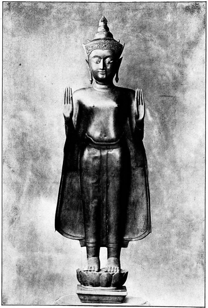 Bronze statue depicting the "Ayuthia Crowned Buddha", ca. 16th century, featured in The Antiques of Siam (1909) by J. W. Margrett.