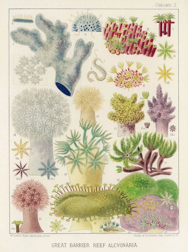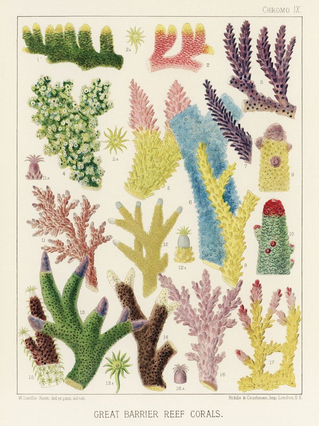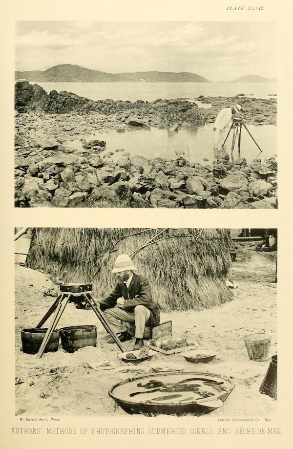 While naming and arranging corals in the Natural History Department of the British Museum, William Saville-Kent daydreamed of seeing the beautiful grey organisms in front of him “in their native seas and wonderful living tints.” Years later he would realise his dream at the Great Barrier Reef in Queensland. There he conceived of a book that would be the first to extensively depict a coral reef in photographs — a selection of which are embedded at the bottom of this post.