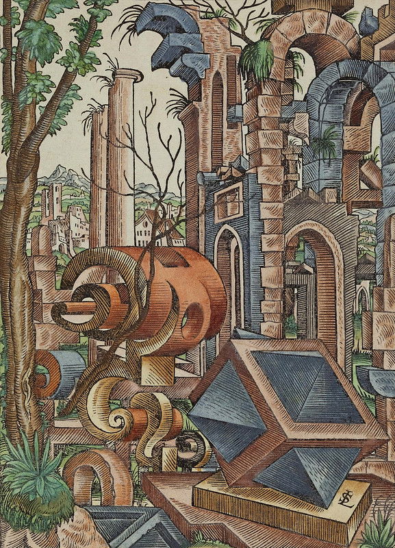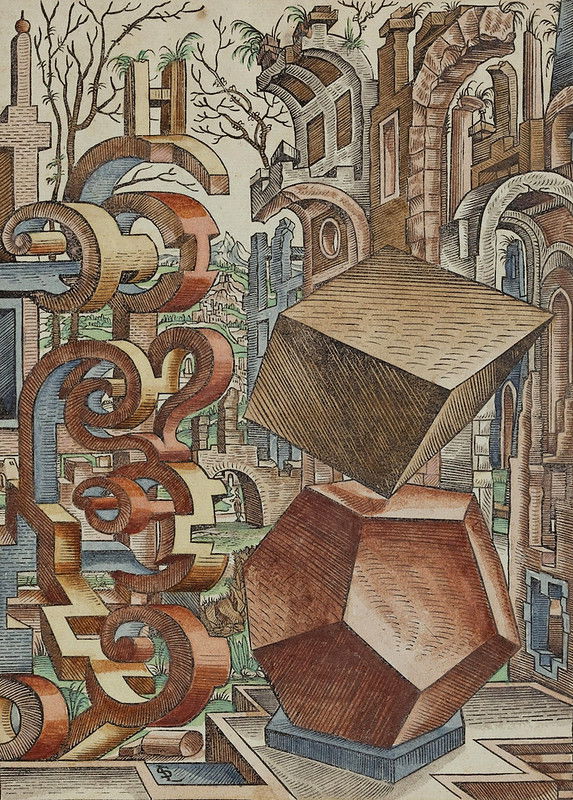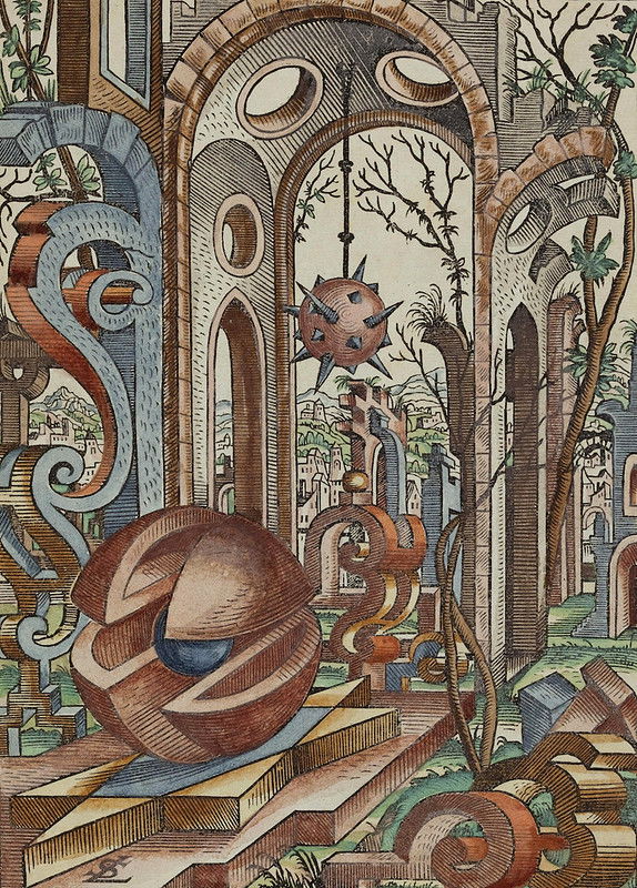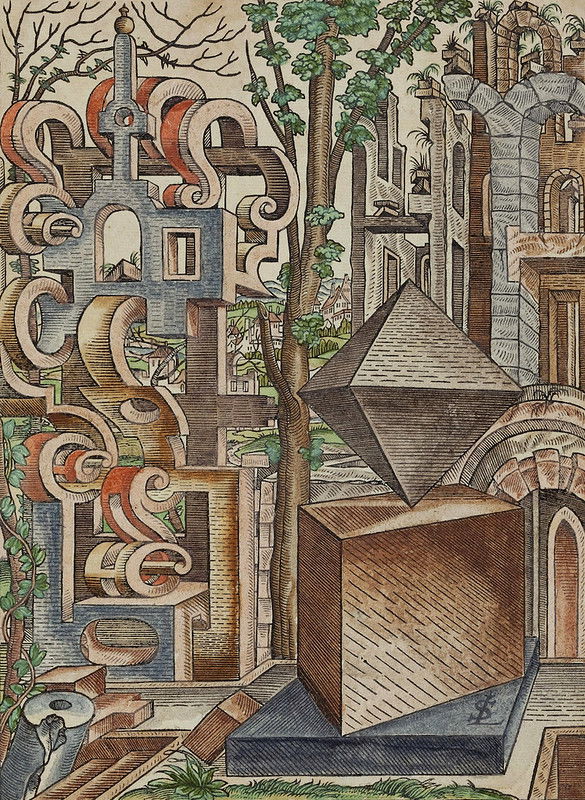 Though these images may at first appear the handiwork of a Futurist or M. C. Escher imitator, they are in fact the work of a sixteenth-century artist named Lorenz Stoer.