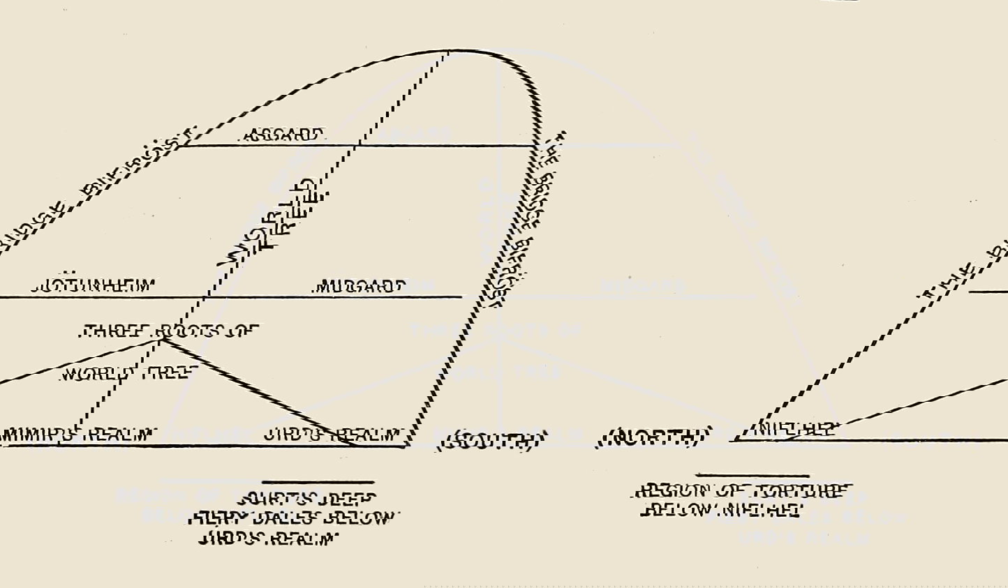 Illustration of the Nine Worlds in Mary E. Litchfield’s The Nine Worlds: Stories from Norse Mythology (1890).