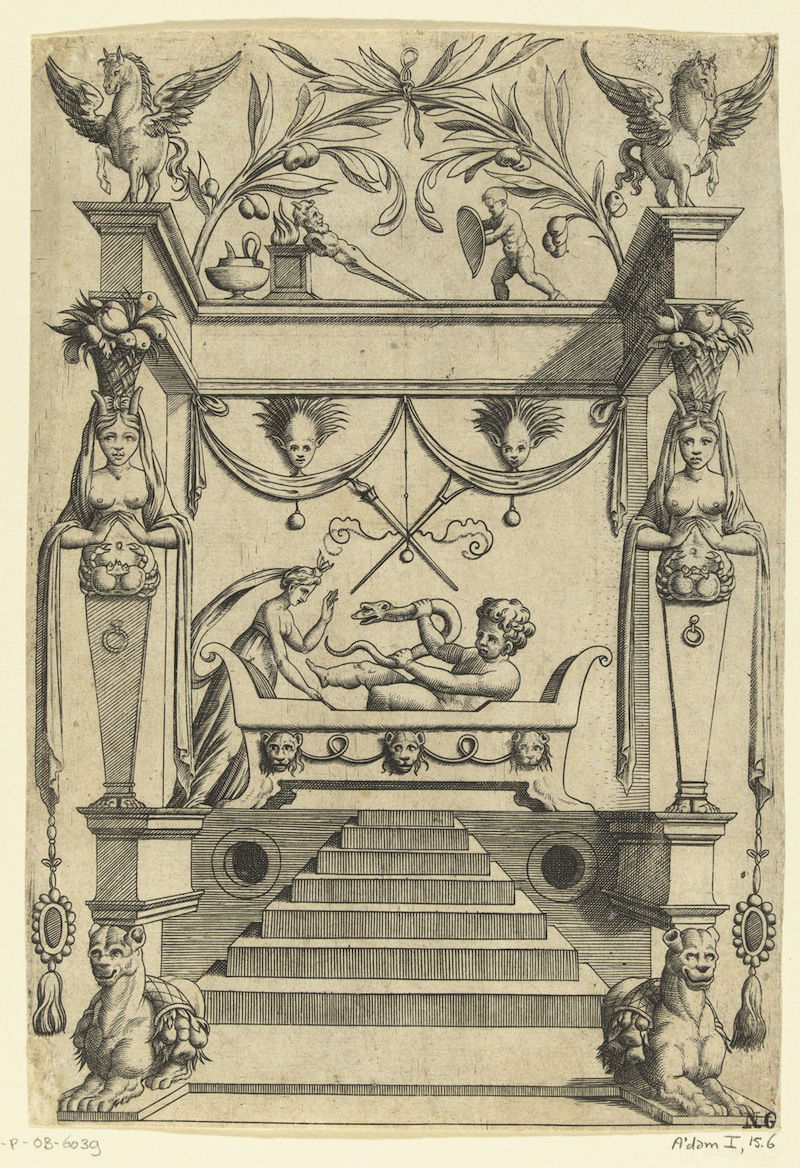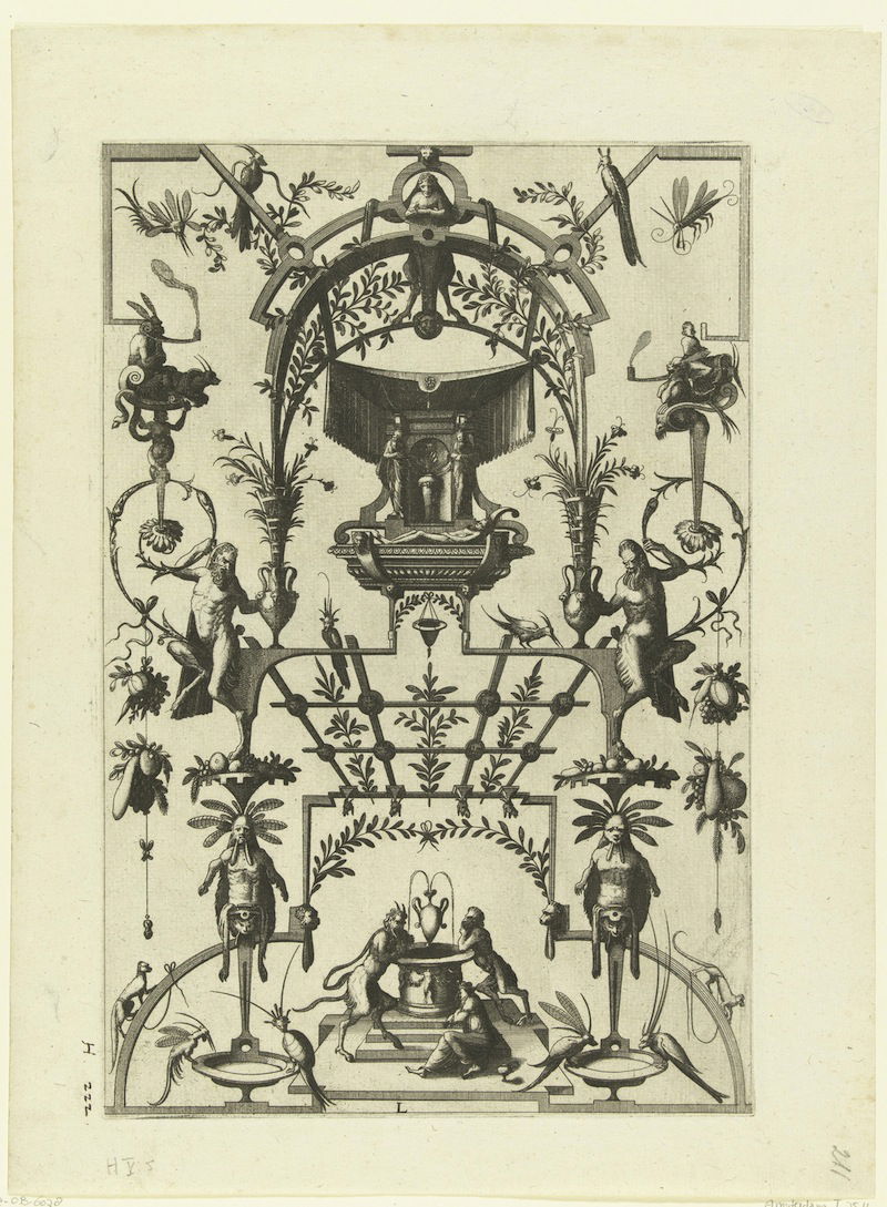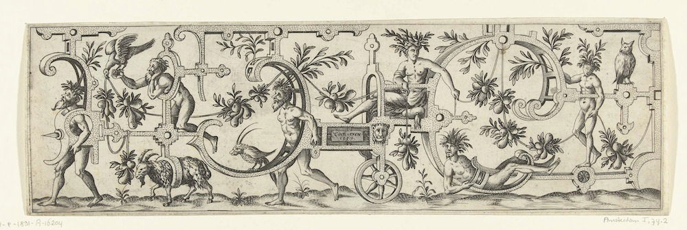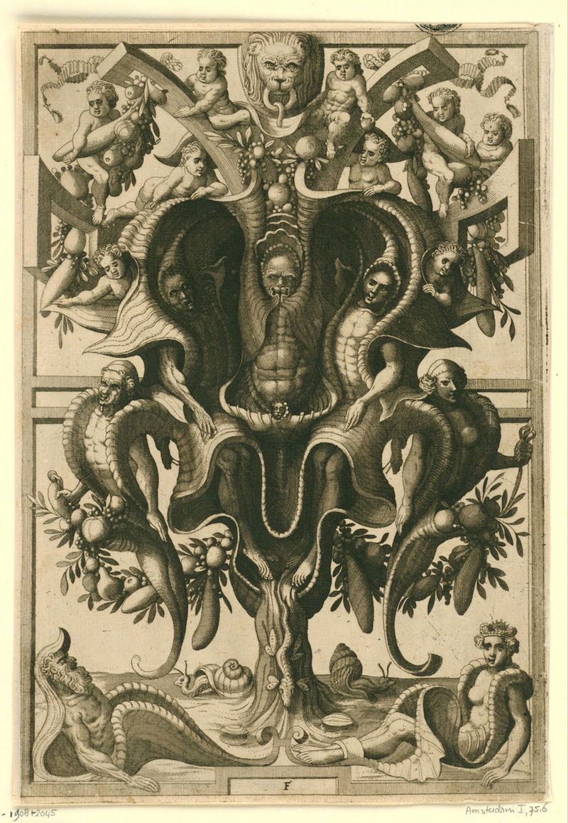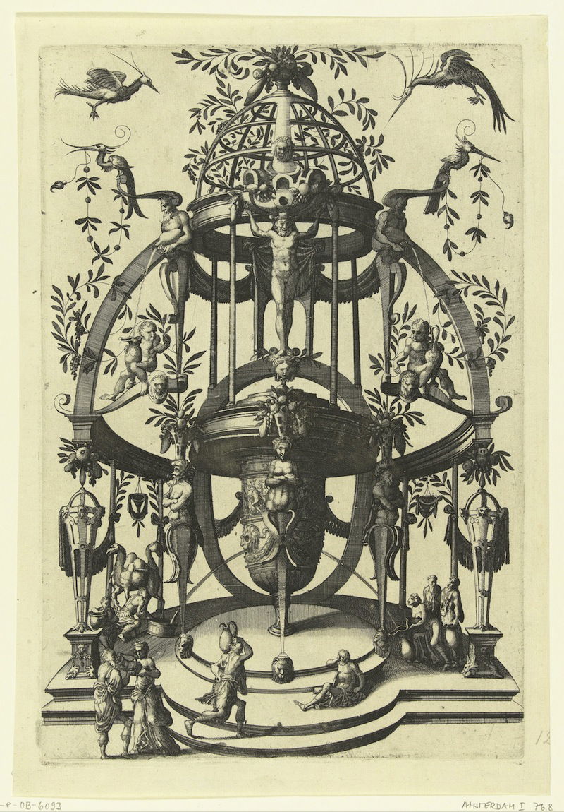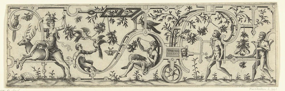 A collection of highly elaborate ornament prints, mostly in the grotesque style, from the collection of the Rijksmuseum. On the one hand, prints such as these had a functional value, serving as inspiration for craftsmen, such as goldsmiths or carpenters, whose adorning of objects and buildings with ornate designs was in much demand at the time. On the other hand, they are stunning pieces of artwork in their own right, twisting as they do traditional motifs from Roman art and architecture into truly surreal scenes, teeming with curious detail, which almost seem to exist apart from space and time.