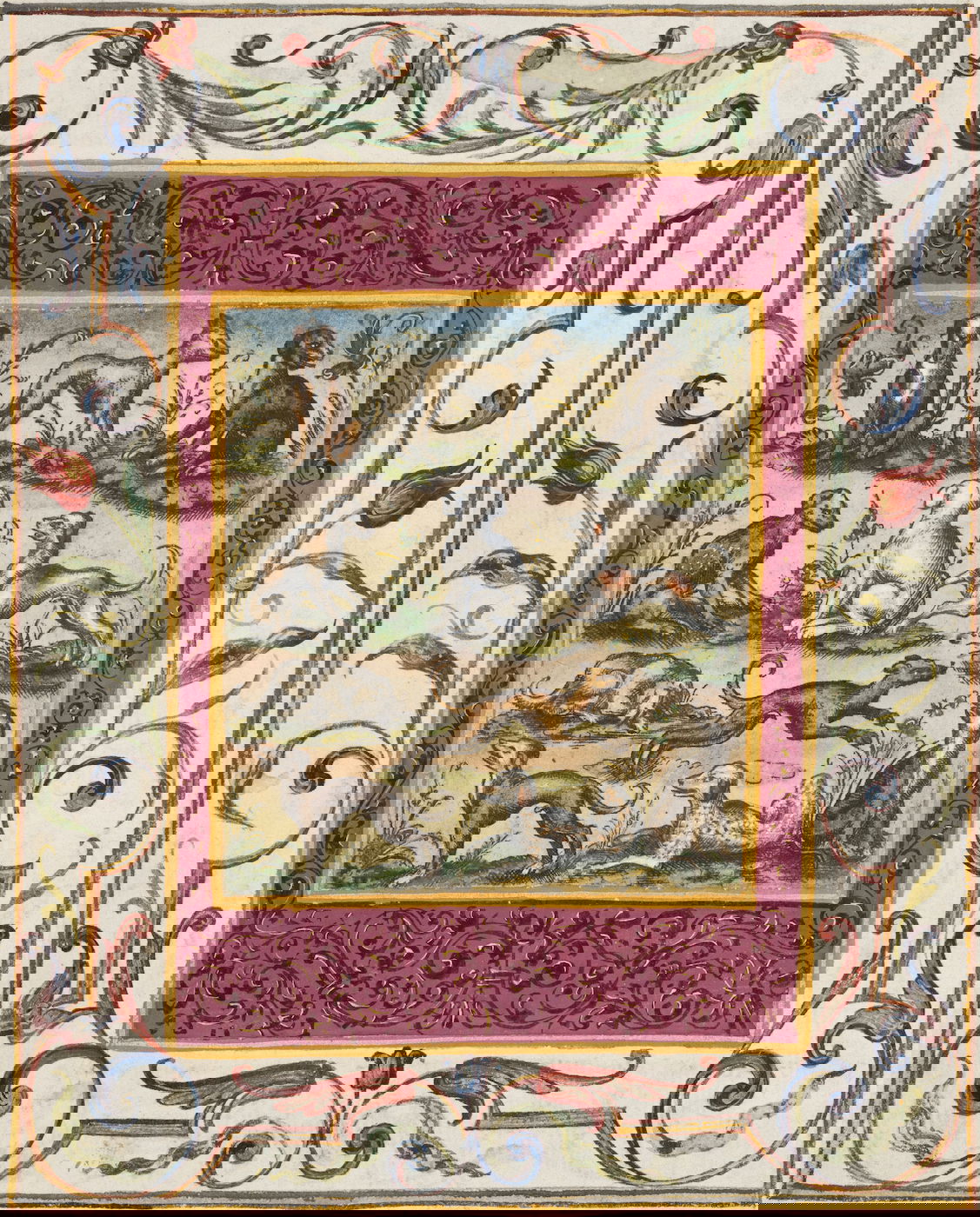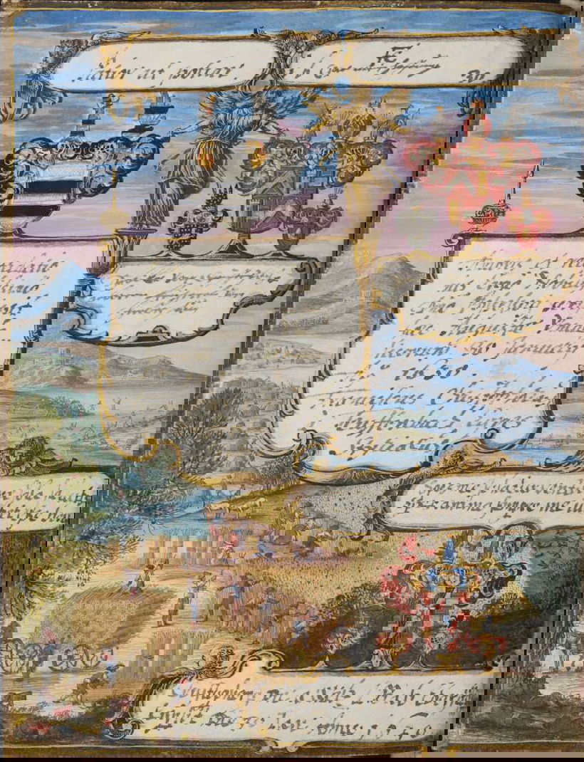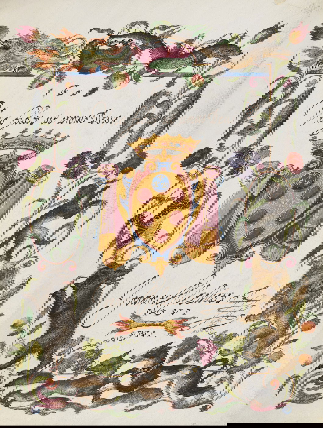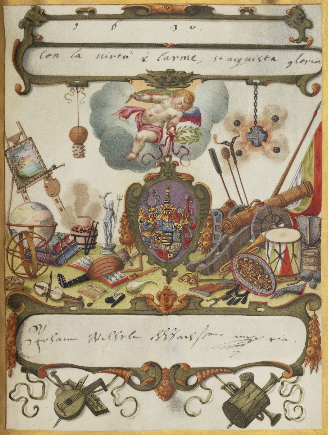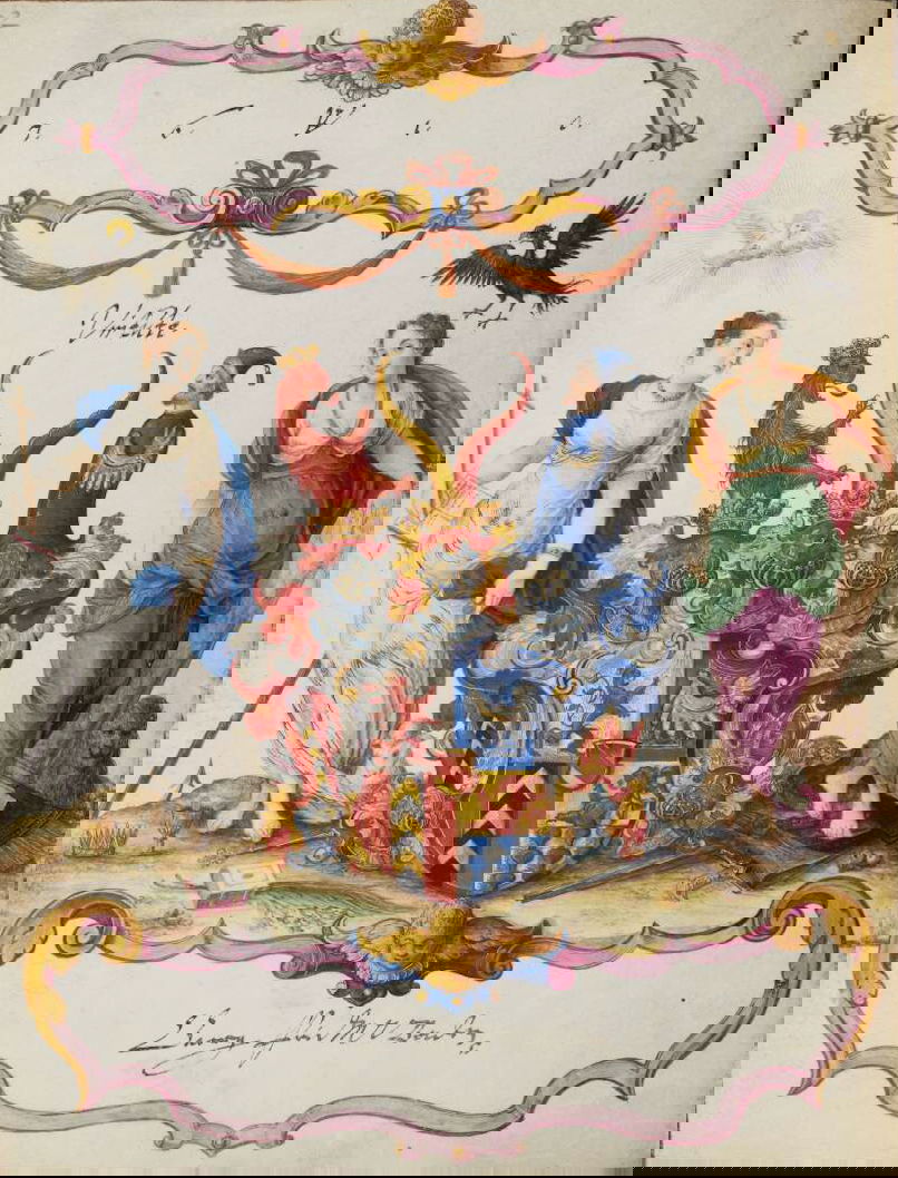 Art dealer and diplomat Philipp Hainhofer's 227-page volume collects the signatures of over seventy-five of Europe’s most notable seventeenth-century nobles. A richly illustrated album amicorum — a kind of friendship book for preserving the autographs of acquaintances — the Große Stammbuch was renowned in Hainhofer’s lifetime, becoming one of Augsburg’s must-see artworks. This vellum Kunstkammer brings together the royal, semi-divine hands of the Holy Roman Emperor Rudolf II [17], King of Denmark Christian IV [20] and Cosimo II de’ Medici [30] with exquisite drawings, a painting on silk, and embroidered panels made by dozens of artists, including Georg Behem, Tobias Bernhard, Joseph Heintz, Johann Mathias Kager, Lucas Kilian, Jacopo Ligozzi, and Anton Mozart.