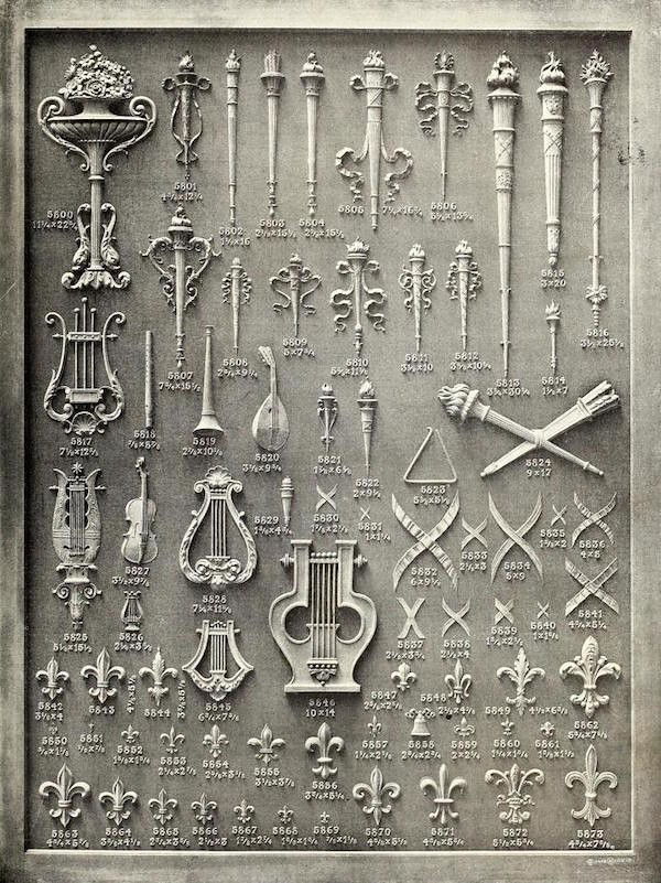 Featured on PDR in the collection Pages From an Illustrated Catalogue of Period Ornaments (ca. 1919)