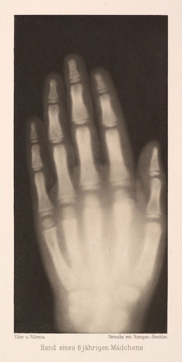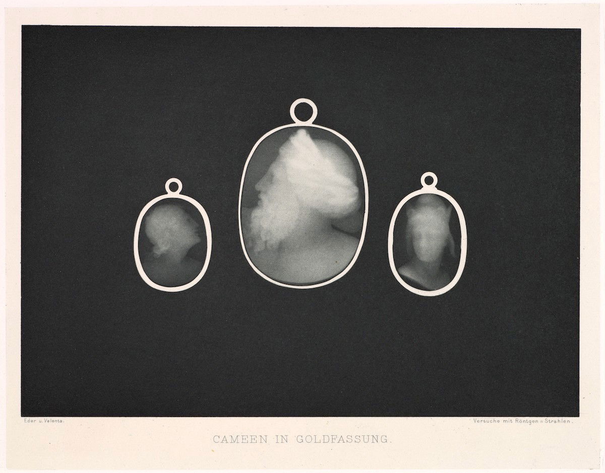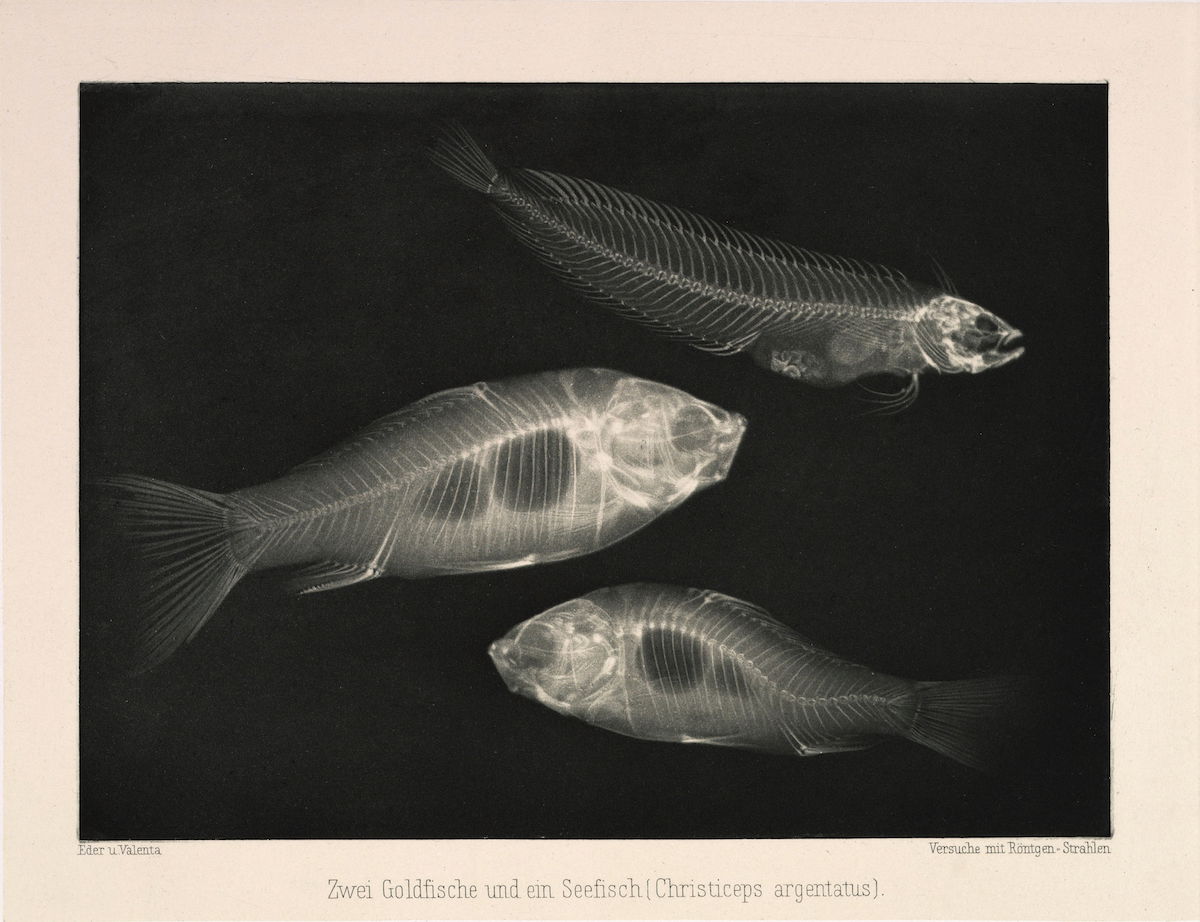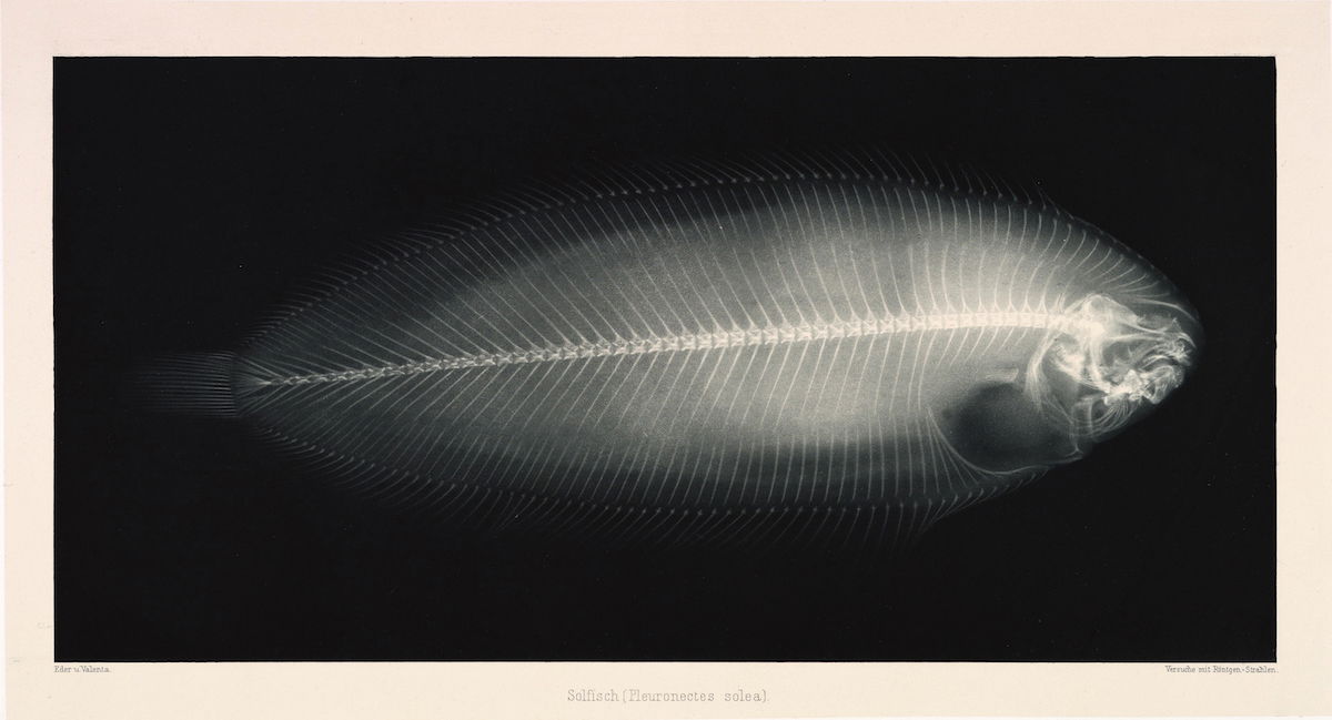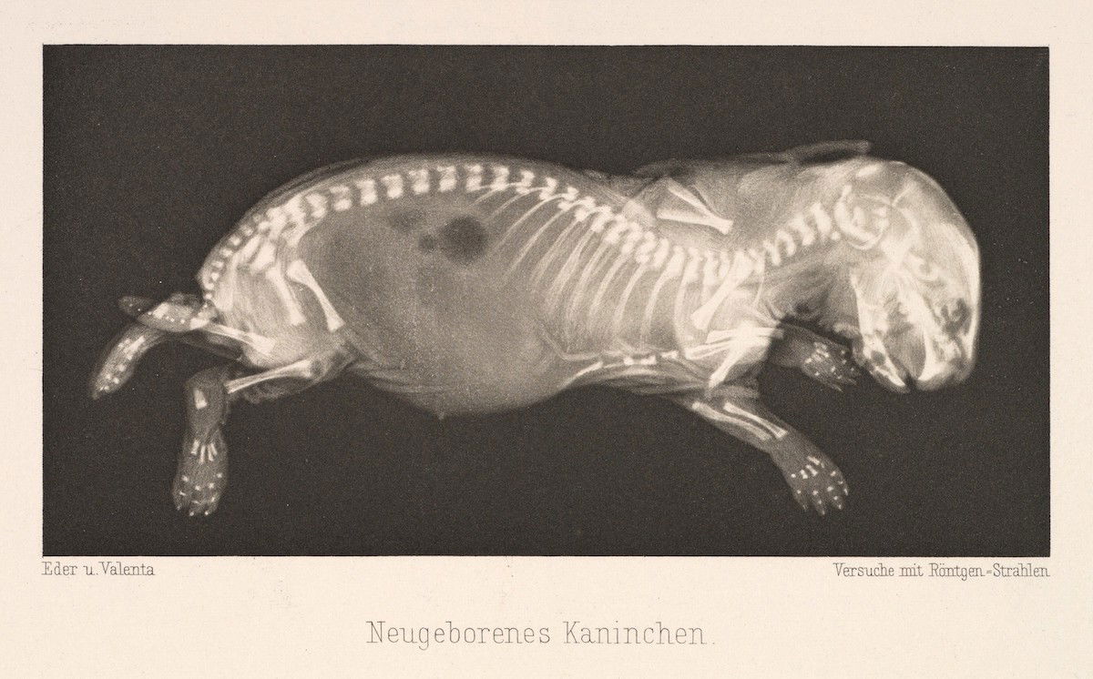These exquisite photogravures are from one of the first series of X-rays ever produced, by Josef Maria Eder (1855–1944), a director of an institute for graphic processes, and Eduard Valenta (1857–1937), a photochemist, both from Austria. The portfolio, simply titled Versuche über Photographie mittelst der Röntgen'schen Strahlen (Experiments in Photography by means of X-Rays), contains a total of fifteen images: a mixture of positives and negatives, including, in addition to the skeletal forms of animals and human limbs, X-rays of carved cameos and an assortment of various materials such as metal, wood, glass, and meat. If the images are striking today they must have been doubly so when first published, only a few weeks after Wilhelm Conrad Röntgen made his discovery of X-rays public with…