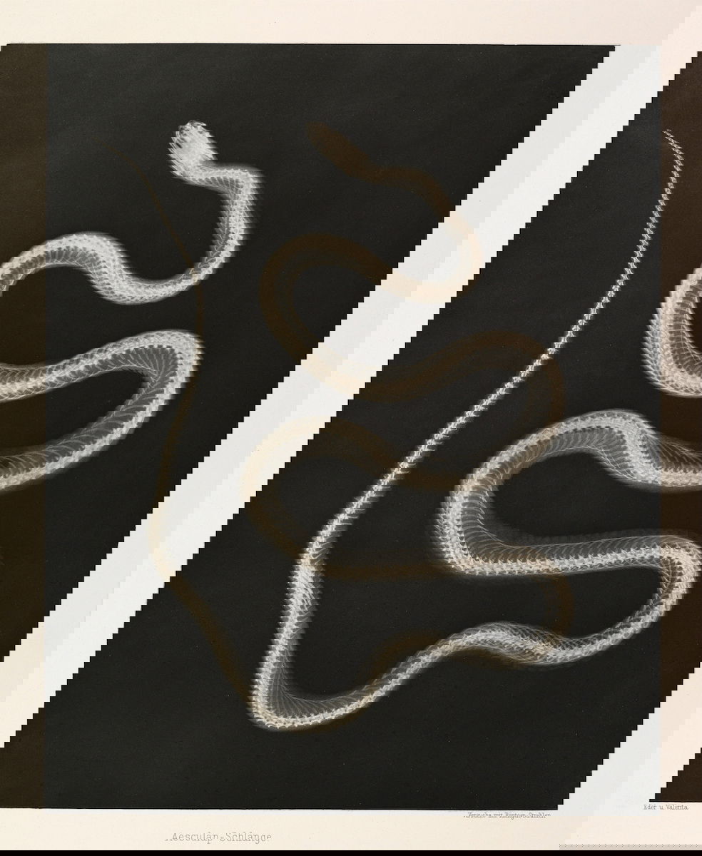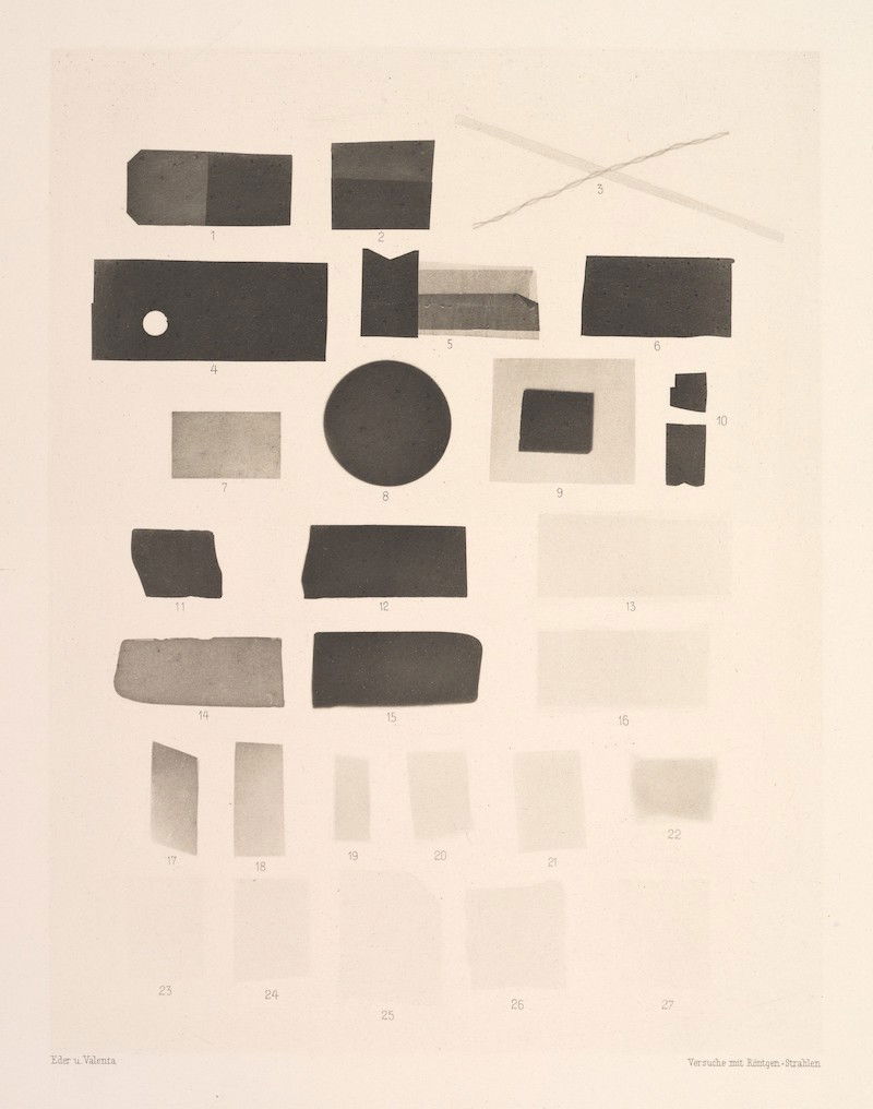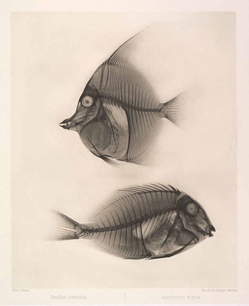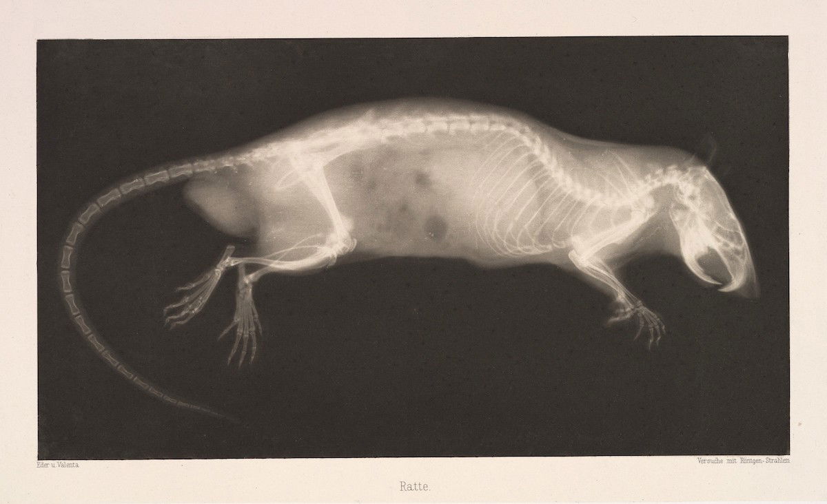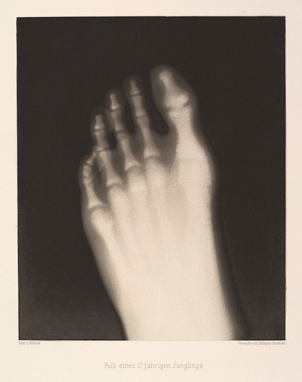 These exquisite photogravures are from one of the first series of X-rays ever produced, by Josef Maria Eder (1855–1944), a director of an institute for graphic processes, and Eduard Valenta (1857–1937), a photochemist, both from Austria. The portfolio, simply titled Versuche über Photographie mittelst der Röntgen'schen Strahlen (Experiments in Photography by means of X-Rays), contains a total of fifteen images: a mixture of positives and negatives, including, in addition to the skeletal forms of animals and human limbs, X-rays of carved cameos and an assortment of various materials such as metal, wood, glass, and meat. If the images are striking today they must have been doubly so when first published, only a few weeks after Wilhelm Conrad Röntgen made his discovery of X-rays public with…