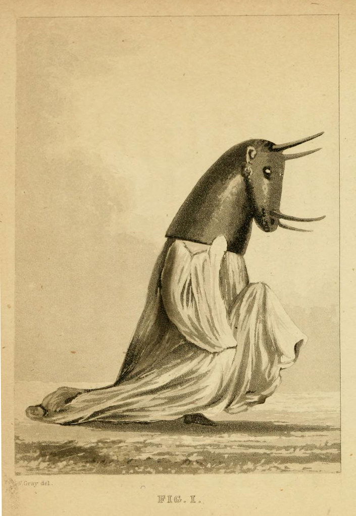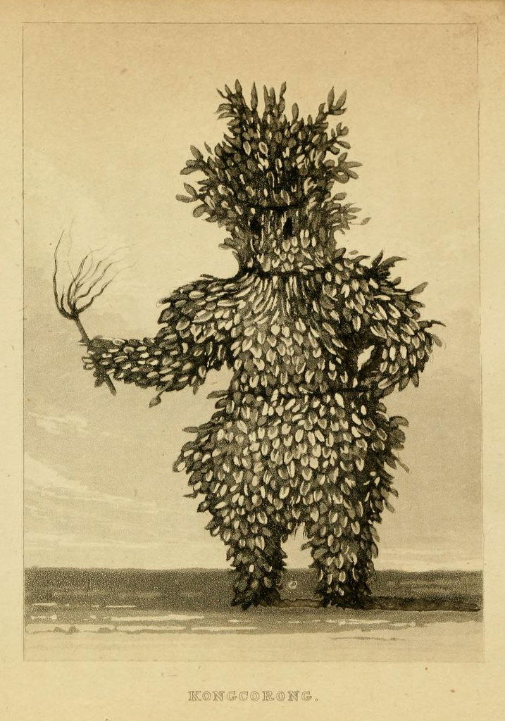 A native of the Kayaye village, dressed head to toe in boughs and leaves as part of the Kongcorong ceremony. Featured in Major William Gray’s account of his doomed expedition in Africa.