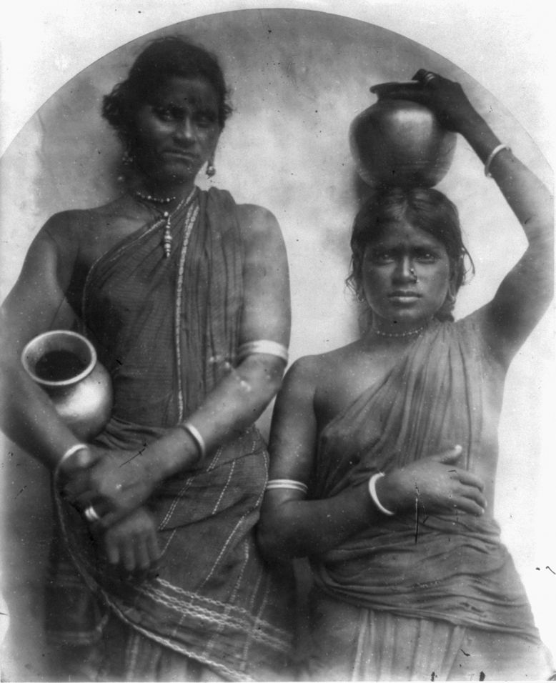 Photograph of two Ceylonese women with water jars by Julia Margaret Cameron, ca.1870.
