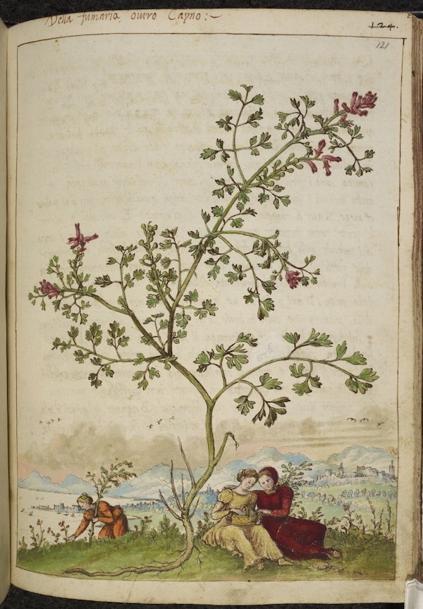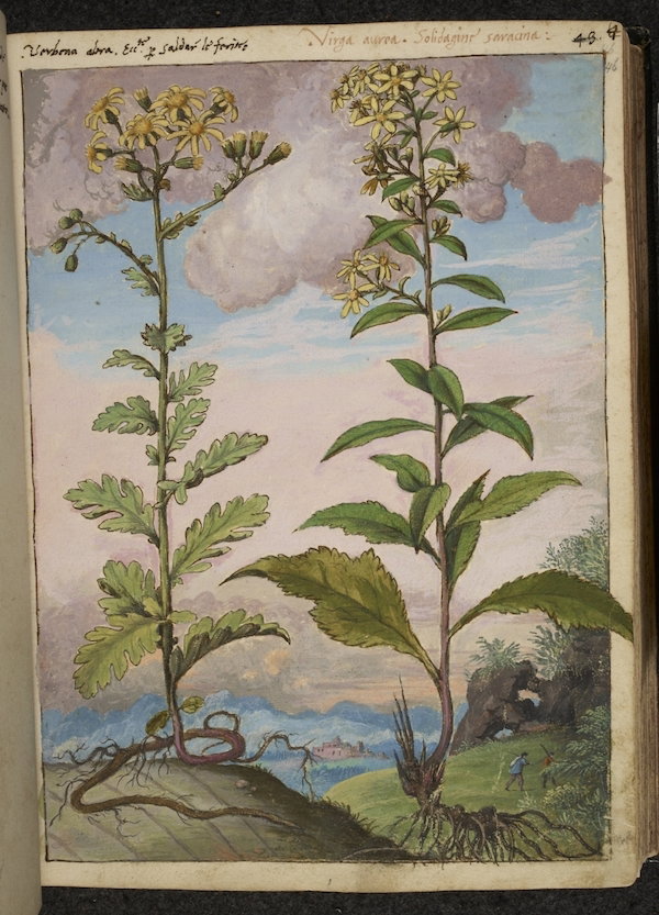 These wonderful full-page watercolour illustrations are from a 16th-century edition of Pedanius Dioscorides's work on herbal medicine, De Materia Medica. Dioscorides (ca. 40–90 AD), a Greek physician and botanist, is considered to be the father of pharmacology, with this five-volume book hailed as the forerunner of modern pharmacopoeias (books that record medicines along with their effects and directions for their use). His book was translated from the original Greek to Latin, Arabic, and Spanish, and continued to be in use with additions and commentaries written by various authors, one of them being the 16th-century Italian doctor Pietro Andrea Mattioli (1501–1577). Describing one hundred new plants not included by Dioscorides, Mattioli's expansion of the book first appeared in Italian and was later translated into Latin, French,…