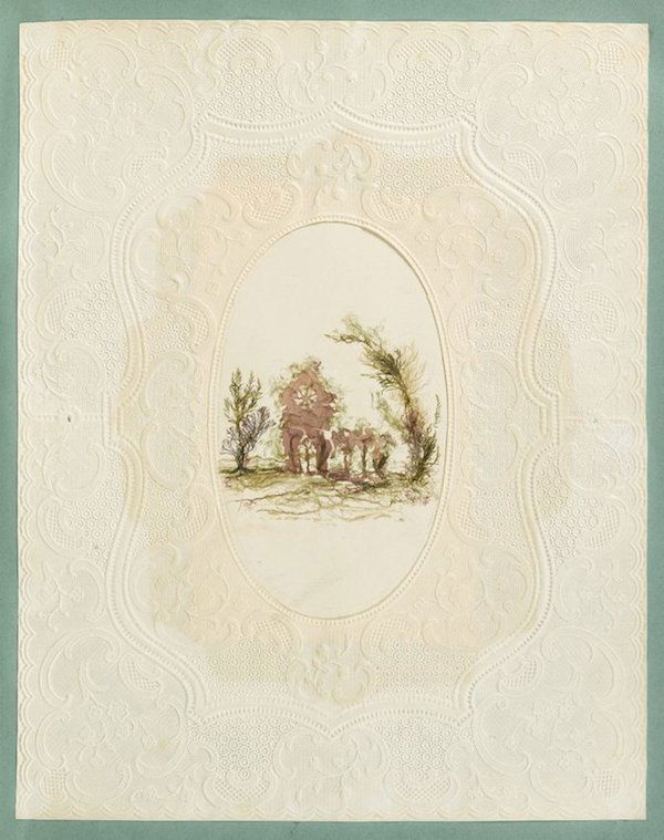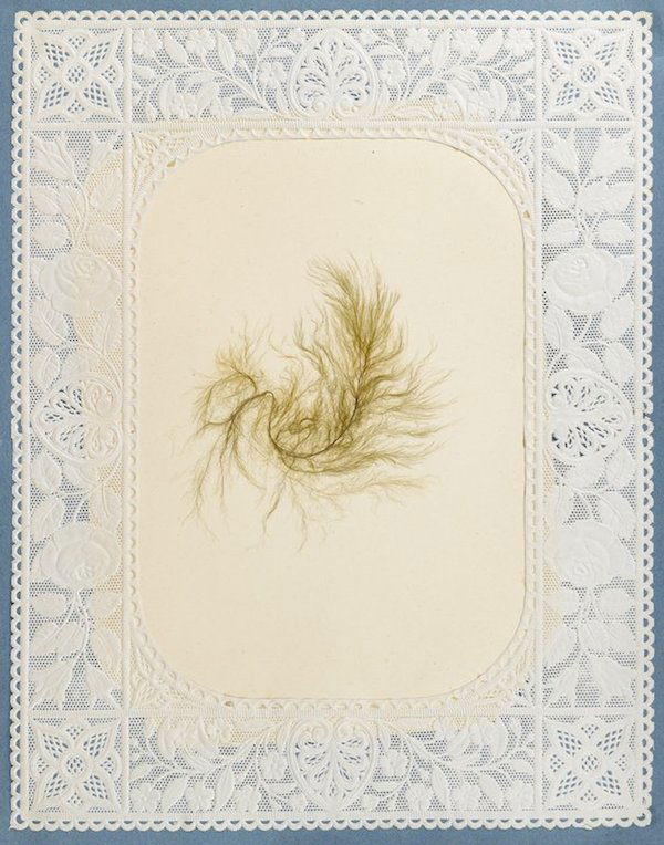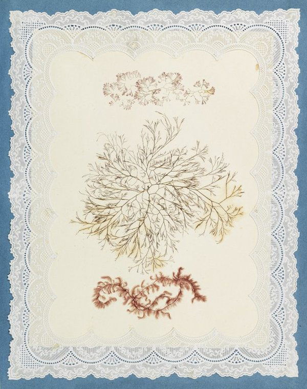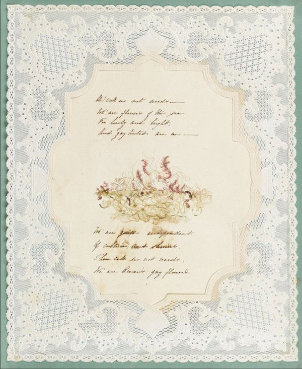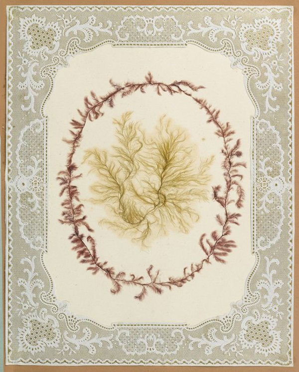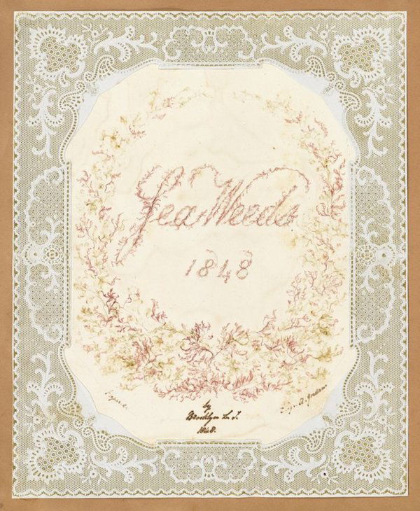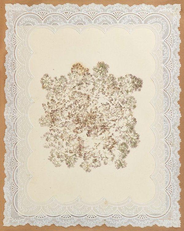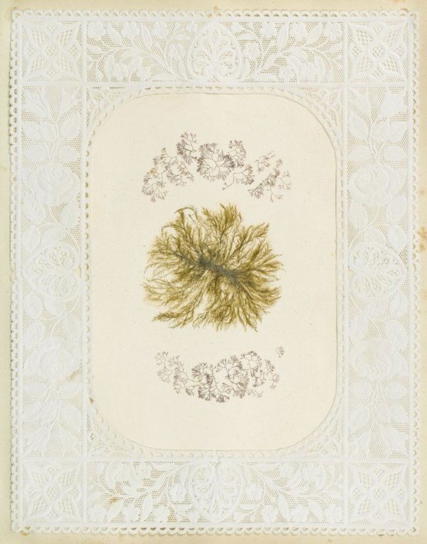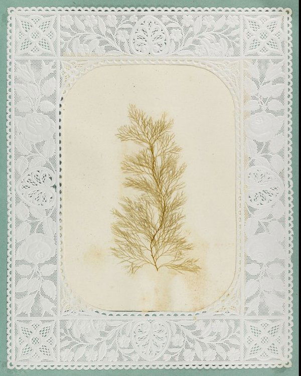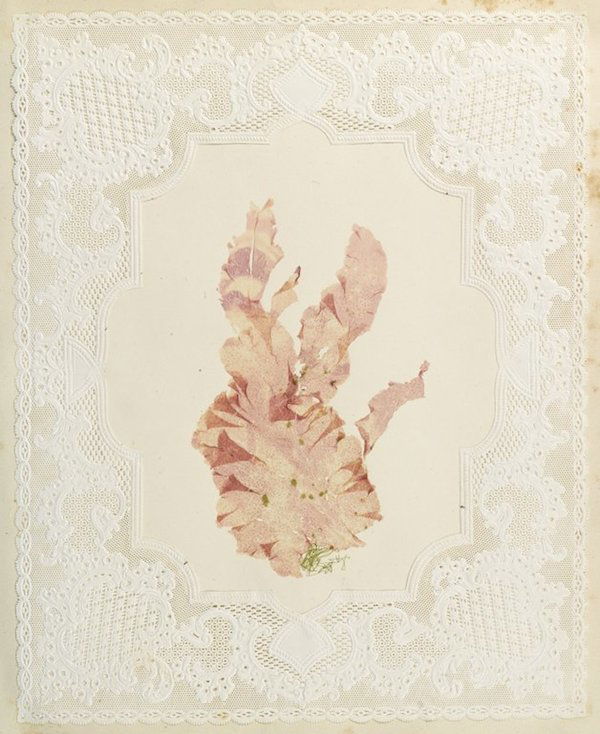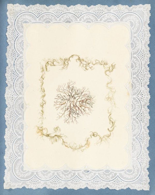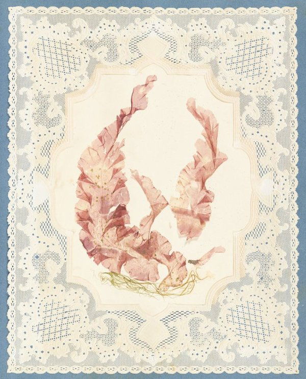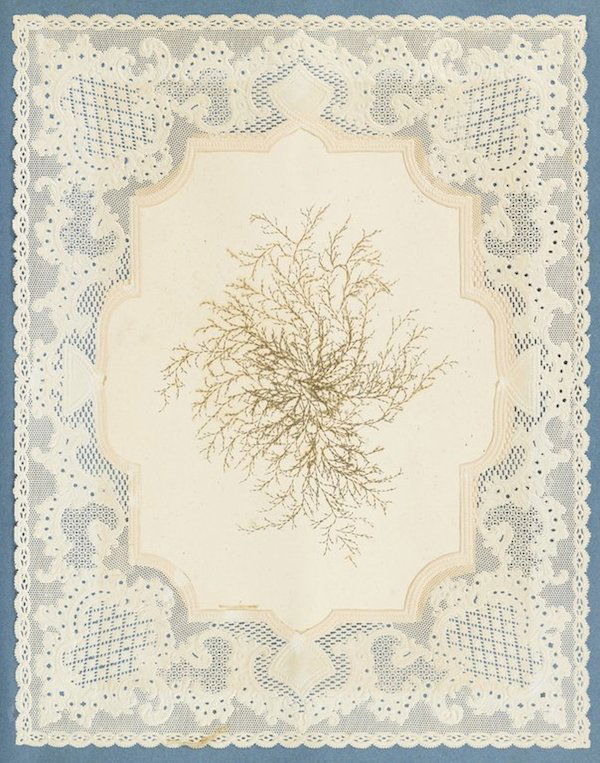 The art of arranging marine algae into designs, bouquets, and even sometimes intricate little scenes, was surprisingly popular in the nineteenth century. The particularly fine examples featured here, using doilies as frames, are from an album presented to Augustus Graham, a member of the first board of directors of the Brooklyn Apprentice's Library, later to become the Brooklyn Institute of Arts and Sciences and the Brooklyn Museum. Graham also served as the first president of the Institute of Arts and Sciences between 1840-1851 and the album was given to him as a thank you in recognition of his work. Made by a woman named Eliza A. Jordson, it contains – apart from the specimens of seaweed – an essay on the method of transferring the…