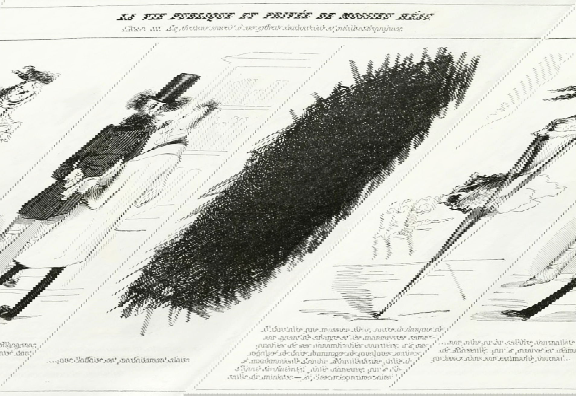 Nadar, “La Vie Publique et Privée de Mossieu Réac” (The Public and Private Life of Mister Réac), part of the artist’s ten-part series for La Révue comique (Paris, 1848). Here the chaotic and confused state of the incompetent opportunist hero’s affairs is represented as a scribbled haze of blackness.