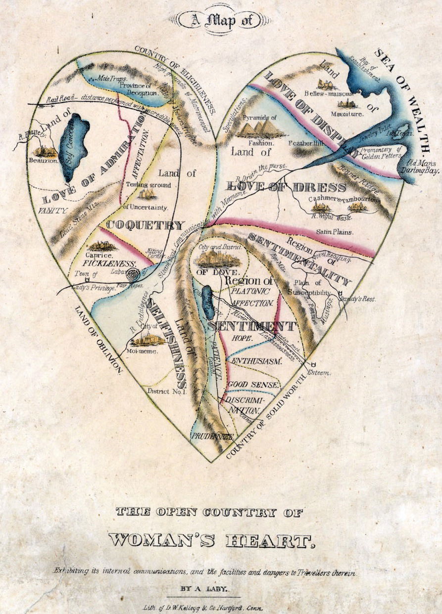 A Map of the Open Country of Woman's Heart, Exhibiting its internal communications, and the facilities and dangers to Travellers therein