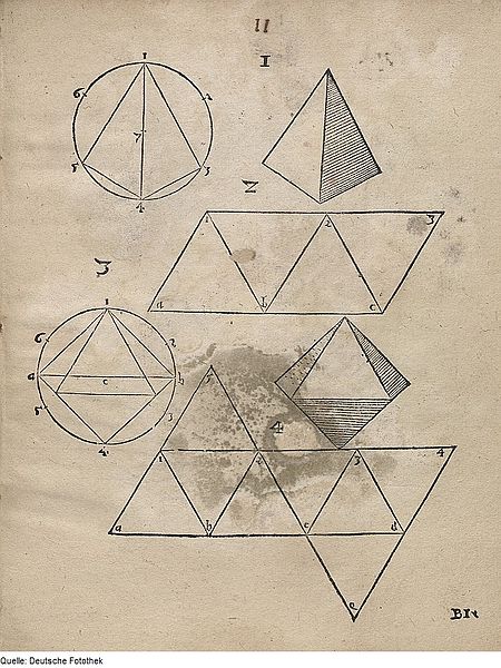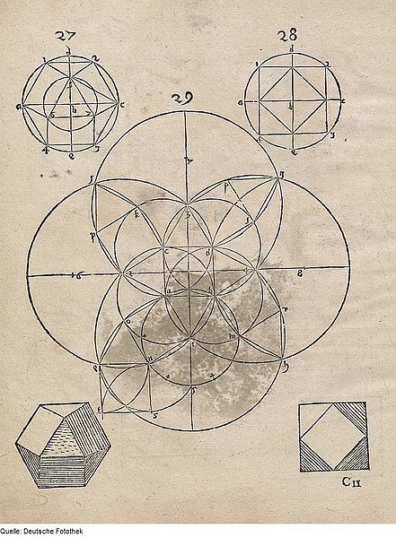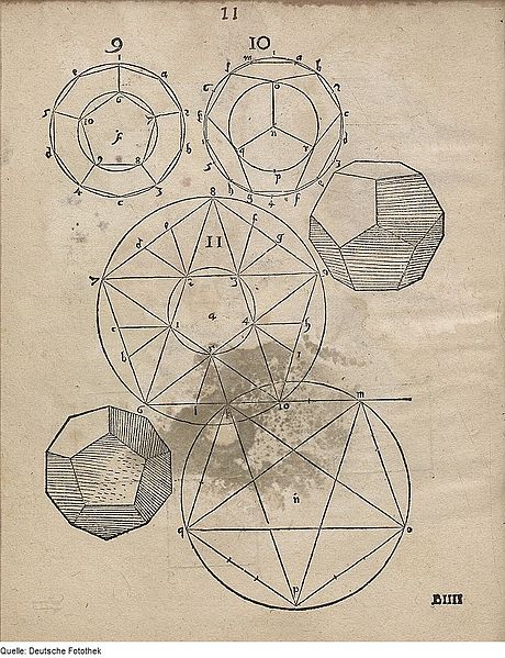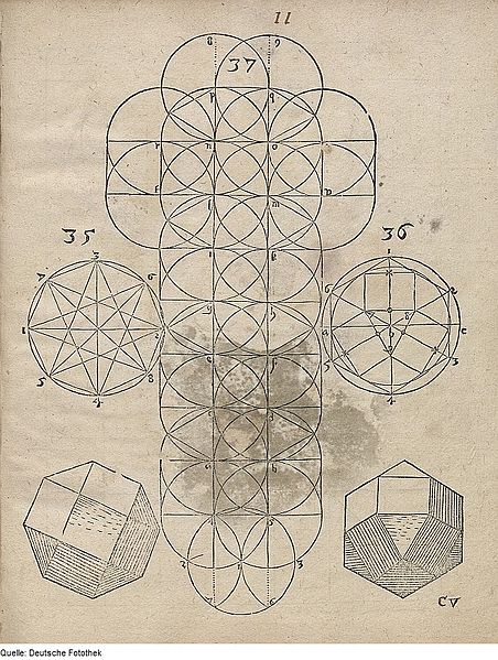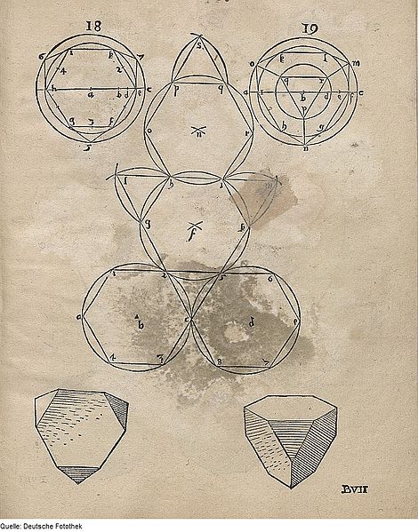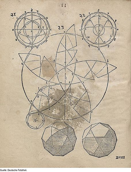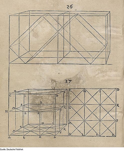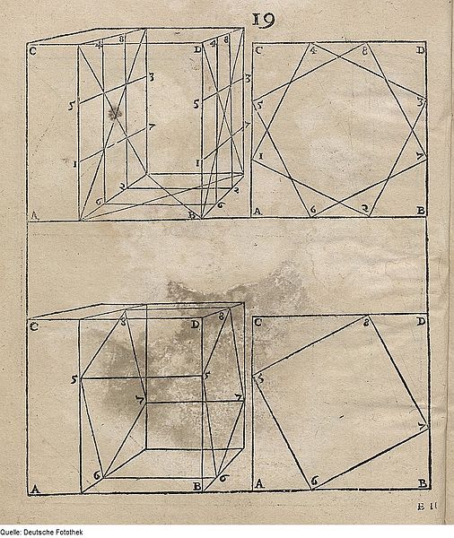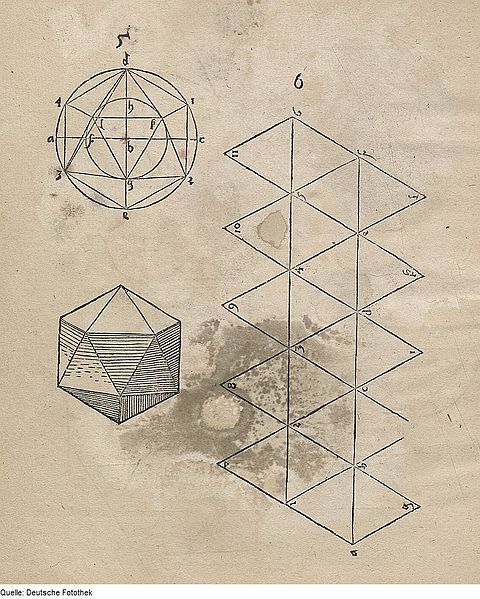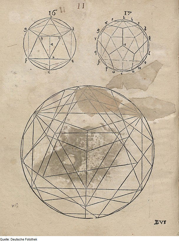 One theory about wormholes — those speculative cosmological structures that tunnel between distant points in the universe — holds that spacetime can be folded like a piece of paper, bringing the near and far into proximity. Examining the manuscript pages from Augustin Hirschvogel’s Geometria (1543), collected below, we are thrust into an analogous encounter with early solid geometry; suddenly the distant past is thrown up before our eyes on screen, and we glimpse another form of interdimensional folding, one much less hypothetical.