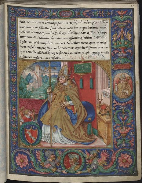 The Catalogus Archiepiscoporum Gnesnensium Vitae episcoporum Cracoviensium (Catalogue of the Archbishops of Gniezno and Lives of the Bishops of Cracow) by Jan Długosz is a 16th century manuscript illuminated by Stanislaw Samostrzelnik between 1531-1535. Today it resides in the collection of the National Library in Warsaw.