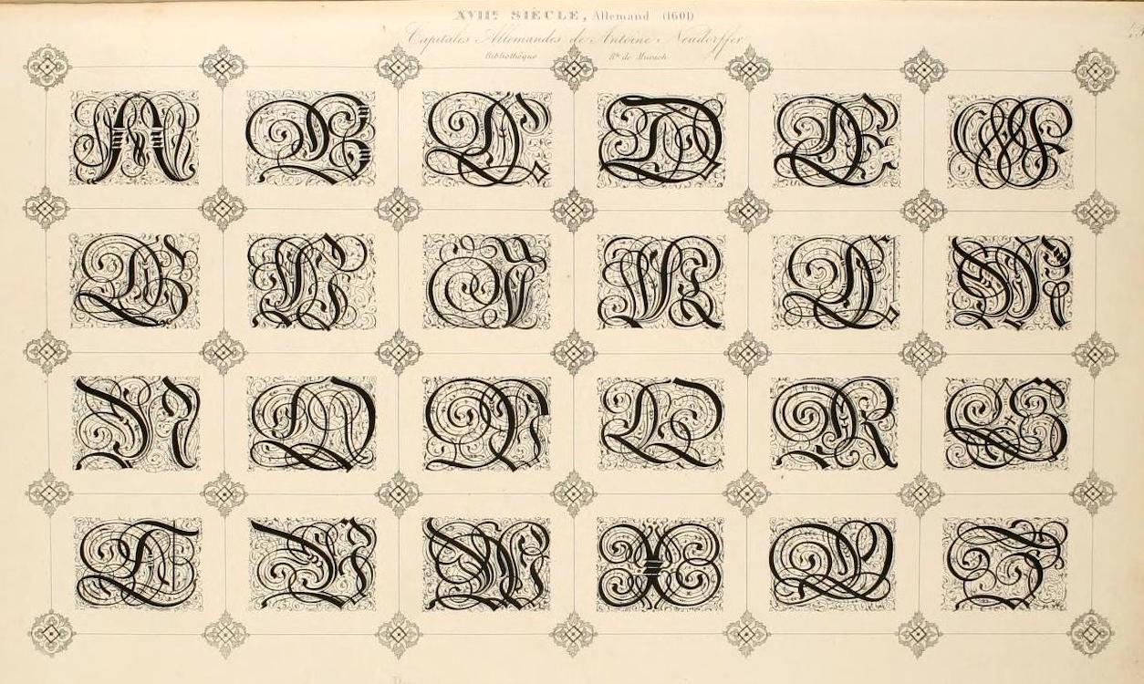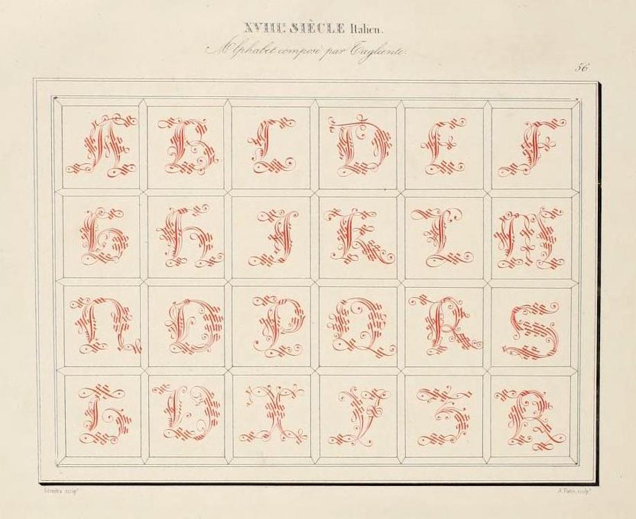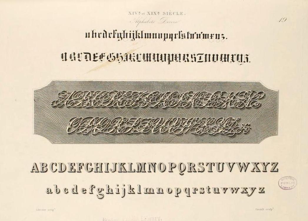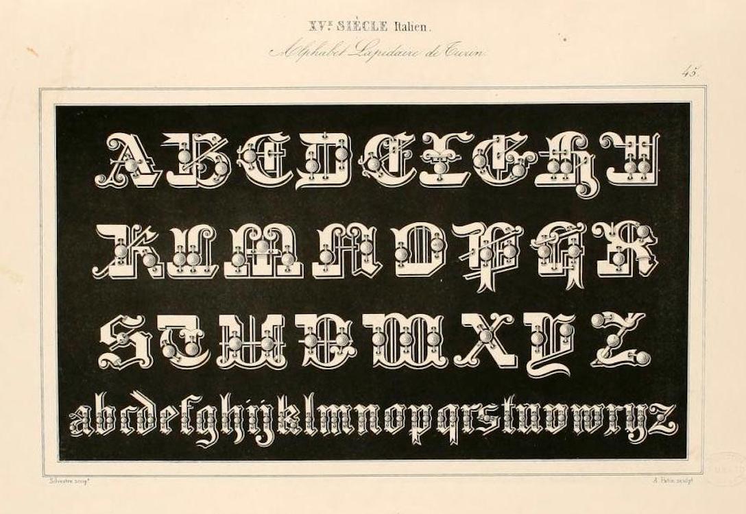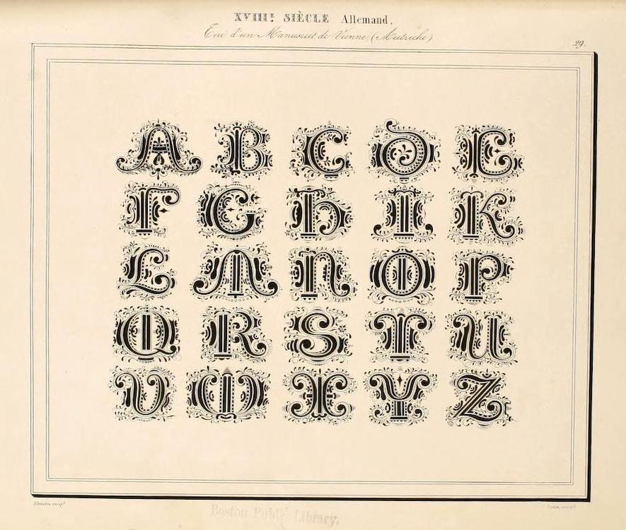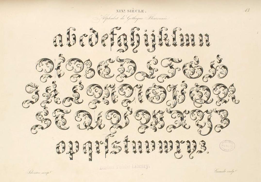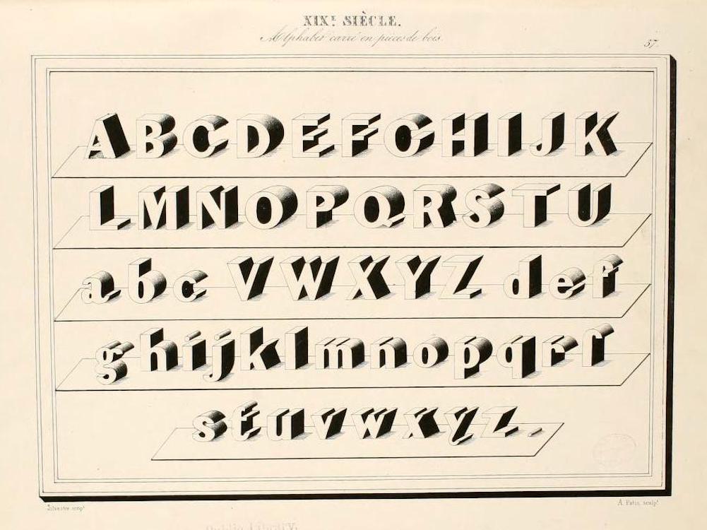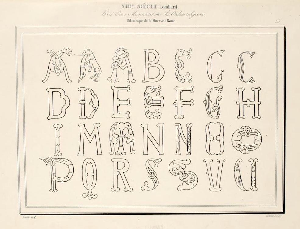 This “alphabet album”, a beautiful book of calligraphy and typographic engraving, was assembled by Joseph-Balthazar Silvestre (1791–1869), a paleographer, calligrapher, and miniaturist painter born in Avignon who later taught the sons of King Louis-Philippe I (1773–1850) how to form their letters.