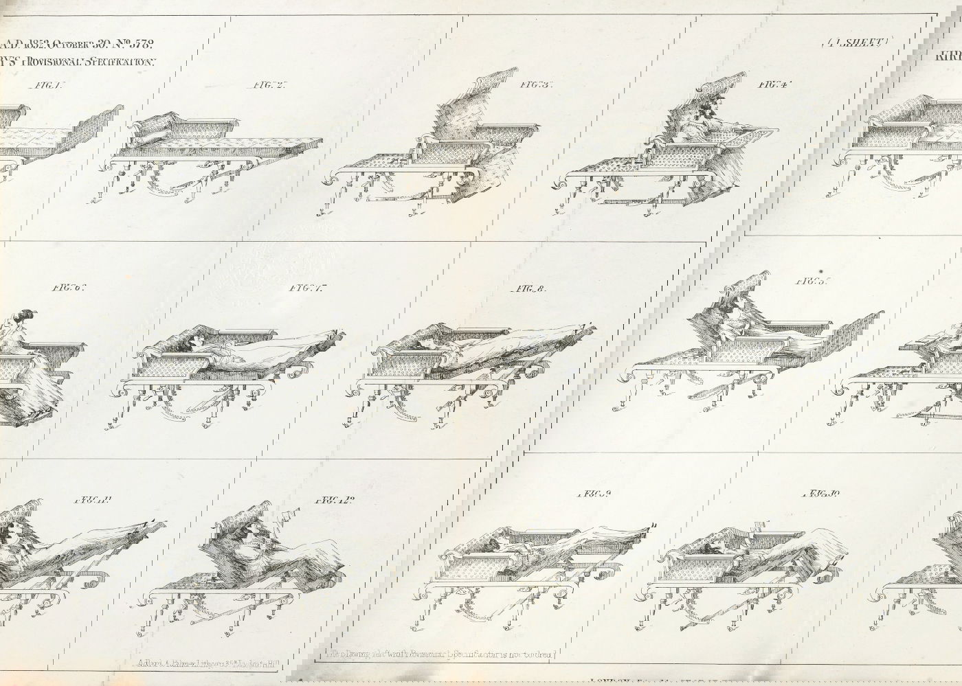 Edmund Adolphus Kirby’s patent specification for an “adjusting couch”, to be used for medical, surgical, and general purposes (1852–1854).