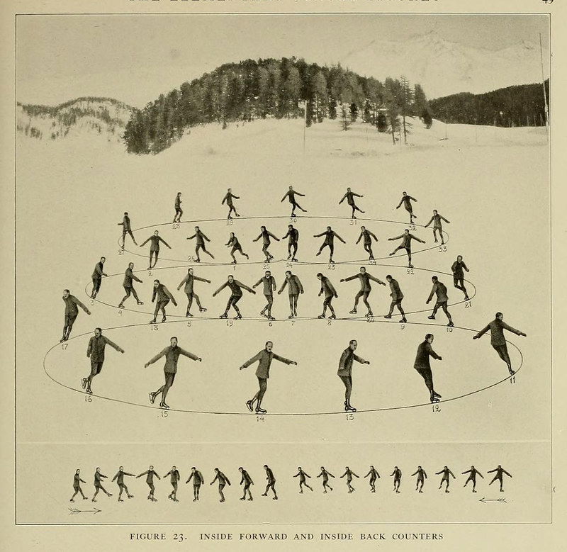 Delightful images from an illustrated guide to figure skating by Bror Myer, a Swedish champion in the art. Meyer felt the guide necessary as in "latter years the art of skating has made such rapid strides". On his use of photography, he continues: