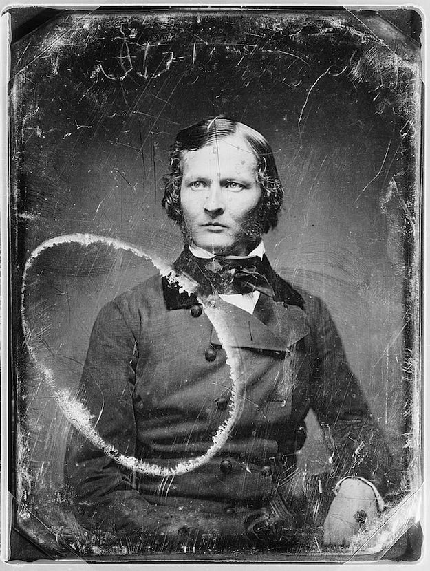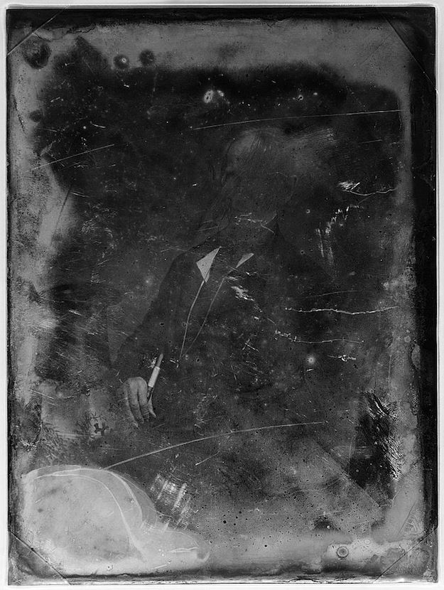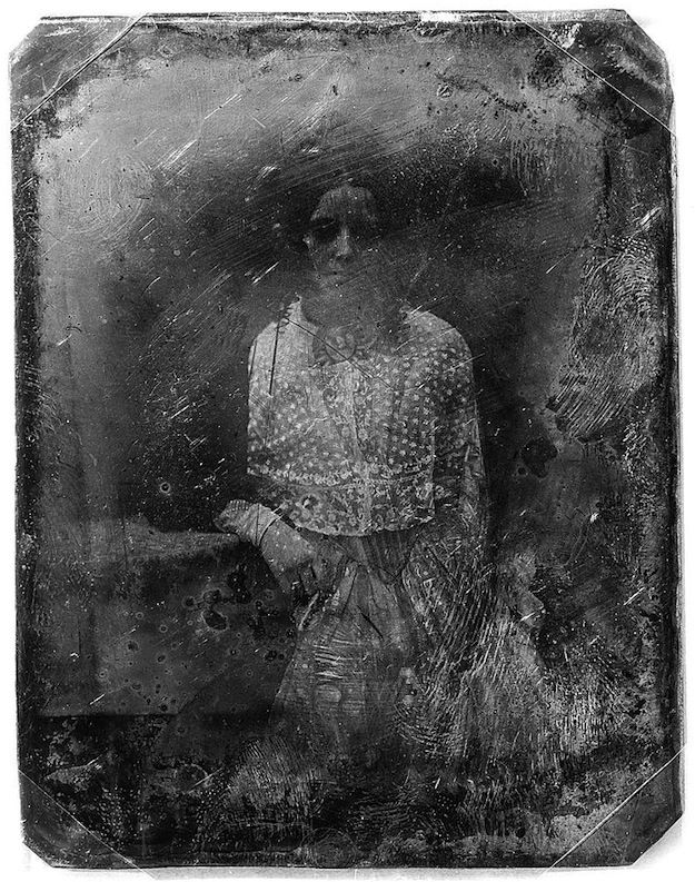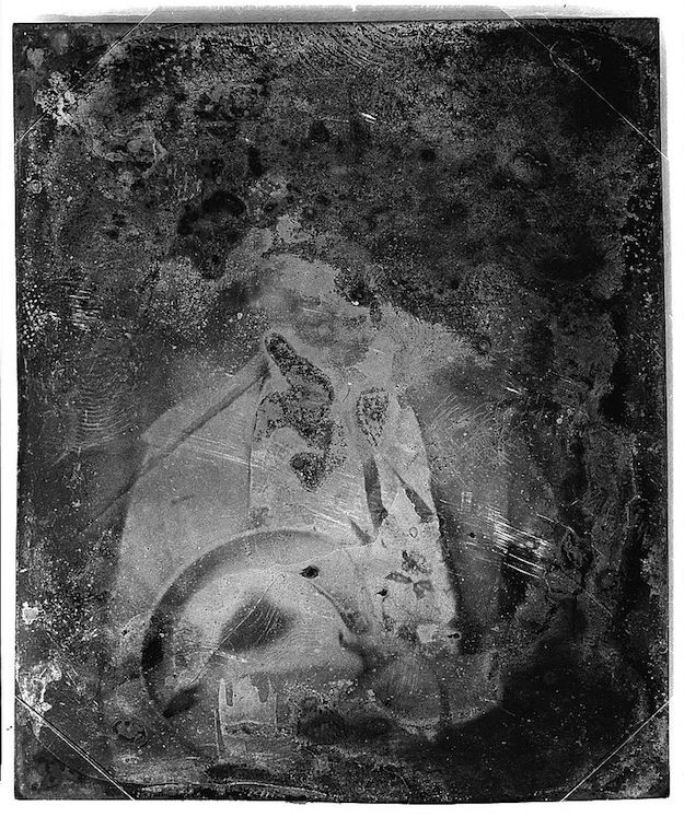A selection of images from the Library of Congress found via the always excellent Ptak Science Books blog. The daguerreotype, invented by Louis-Jacques-Mandé Daguerre in 1837, was the first commercially successful photographic process and was popular throughout the mid-19th century. Daguerreotype portraits were made by the model posing (often with head fixed in place with a clamp to keep it still the few minutes required) before an exposed light-sensitive silvered copper plate, which was then developed by mercury fumes and fixed with salts. This fixing however was far from permanent - like the people they captured the images too were subject to change and decay. They were extremely sensitive to scratches, dust, hair, etc, and particularly the rubbing of the glass cover if the glue…