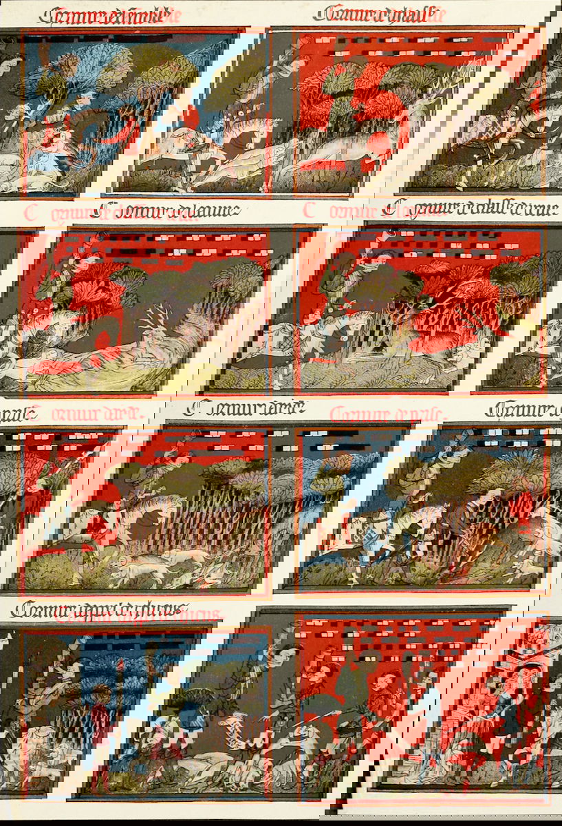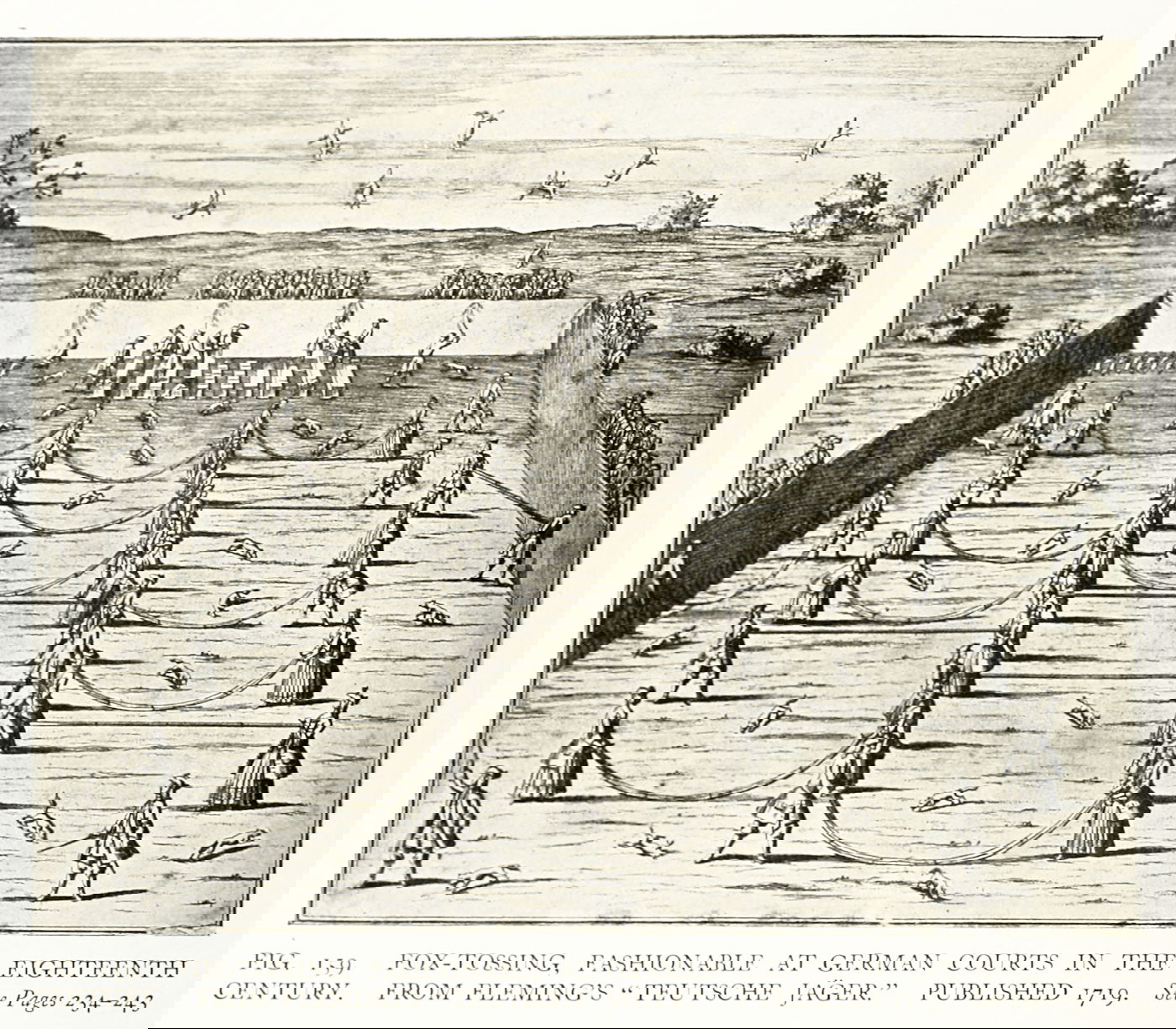 So explains William Baillie-Grohman (1851–1921) in the preface to his 1913 book Sport in Art: An Iconography of Sport, which includes a grand total of 243 illustrations — two in colour, the rest in black-and-white. A warning for tender-hearted readers: here “sport” means the pursuit and killing of animals, though this encyclopedic tome enfolds other topics too. You will learn, for instance, what jolly song was sung while the seventeenth-century Duke of Coburg used his “waidblatt” (game knife) to spank the buttocks of an etiquette-lacking huntsman, laid across the corpse of a stag: “Jo, Jo, ha, ho ! this is for the King, princes and lords!”