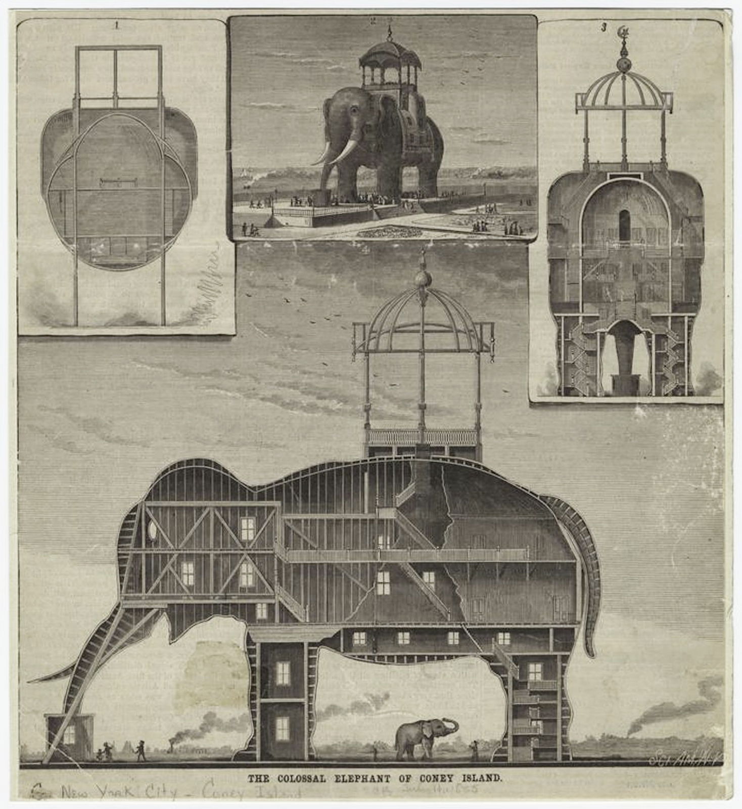 Illustration of “The Colossal Elephant of Coney Island”, from an 1885 issue of Scientific American.