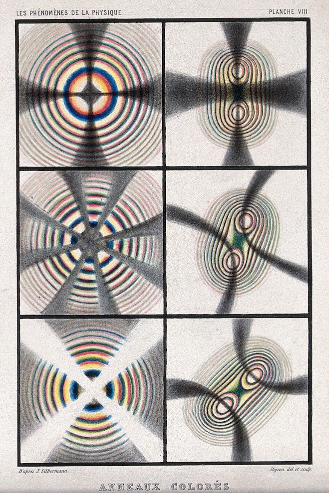 Coloured lithograph, 1868, depicting a double rainbow, by René Henri Digeon after Étienne Antoine Eugène Ronjat.