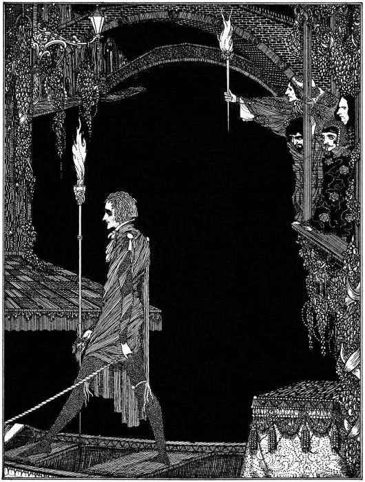 Since Edgar Allan Poe’s stories of suspense and horror were first compiled as Tales of Mystery and Imagination in 1902, many gifted artists have tried their hand at illustrating them, notably Arthur Rackham, Edmund Dulac and Gustave Dore. But perhaps it is the Irishman Harry Clarke who has come closest to evoking the delirious claustrophobia and frightening inventiveness of “Poe-land”. For the 1919 edition of Tales Clarke created the twenty-four monochrome images featured below. Their nightmarish, hallucinatory quality makes you wonder if he was on something, until you remember the stories.