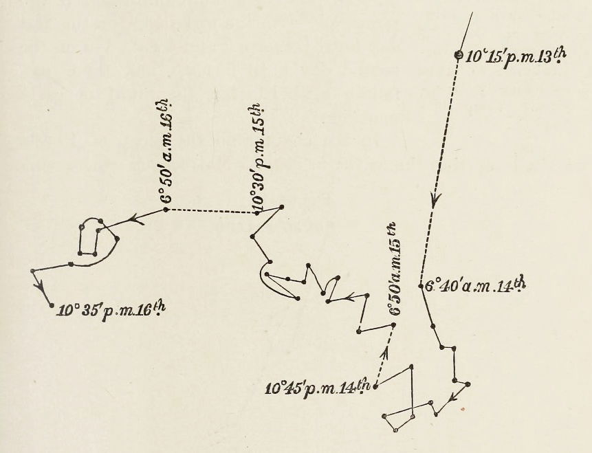 The circumnutation of a young carnation leaf (Dianthus caryophyllus) across a three-day period in June, as illustrated in Darwin’s The Power of Movement in Plants (1896).