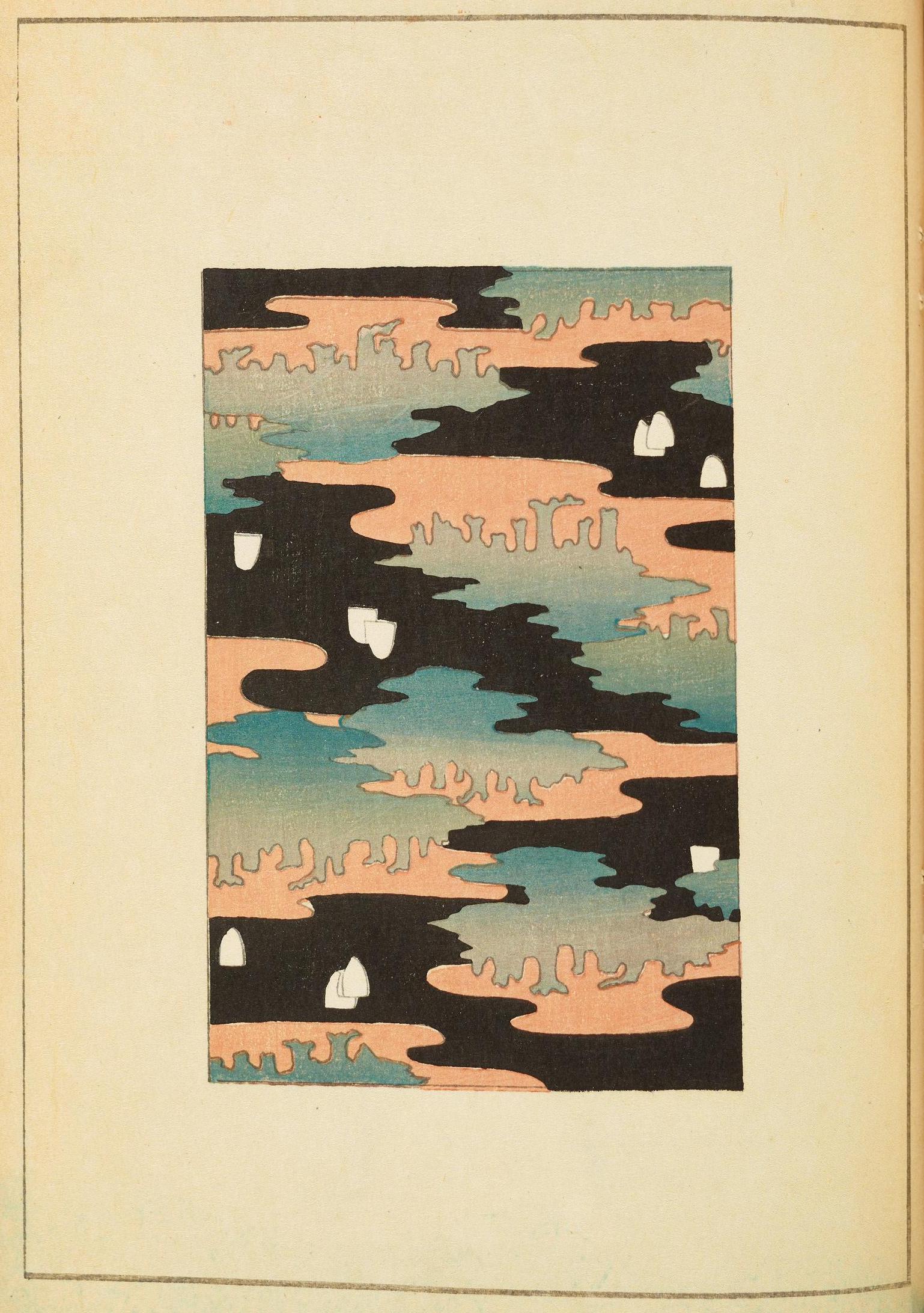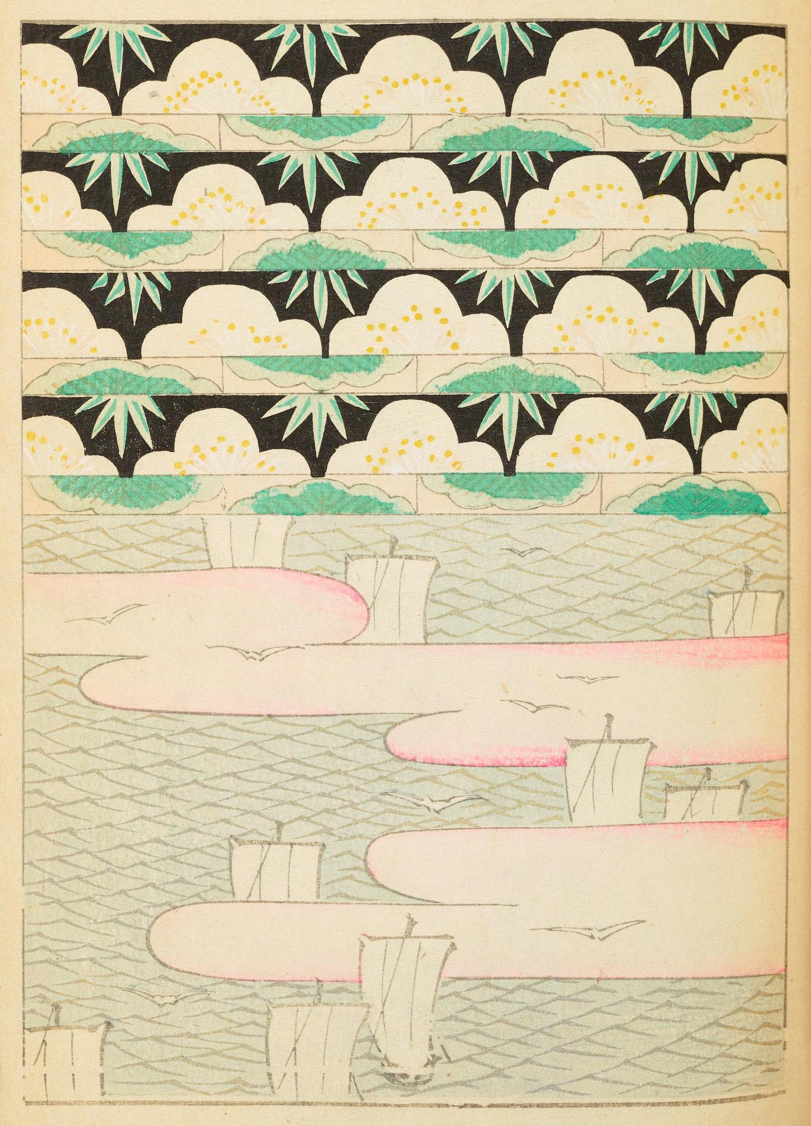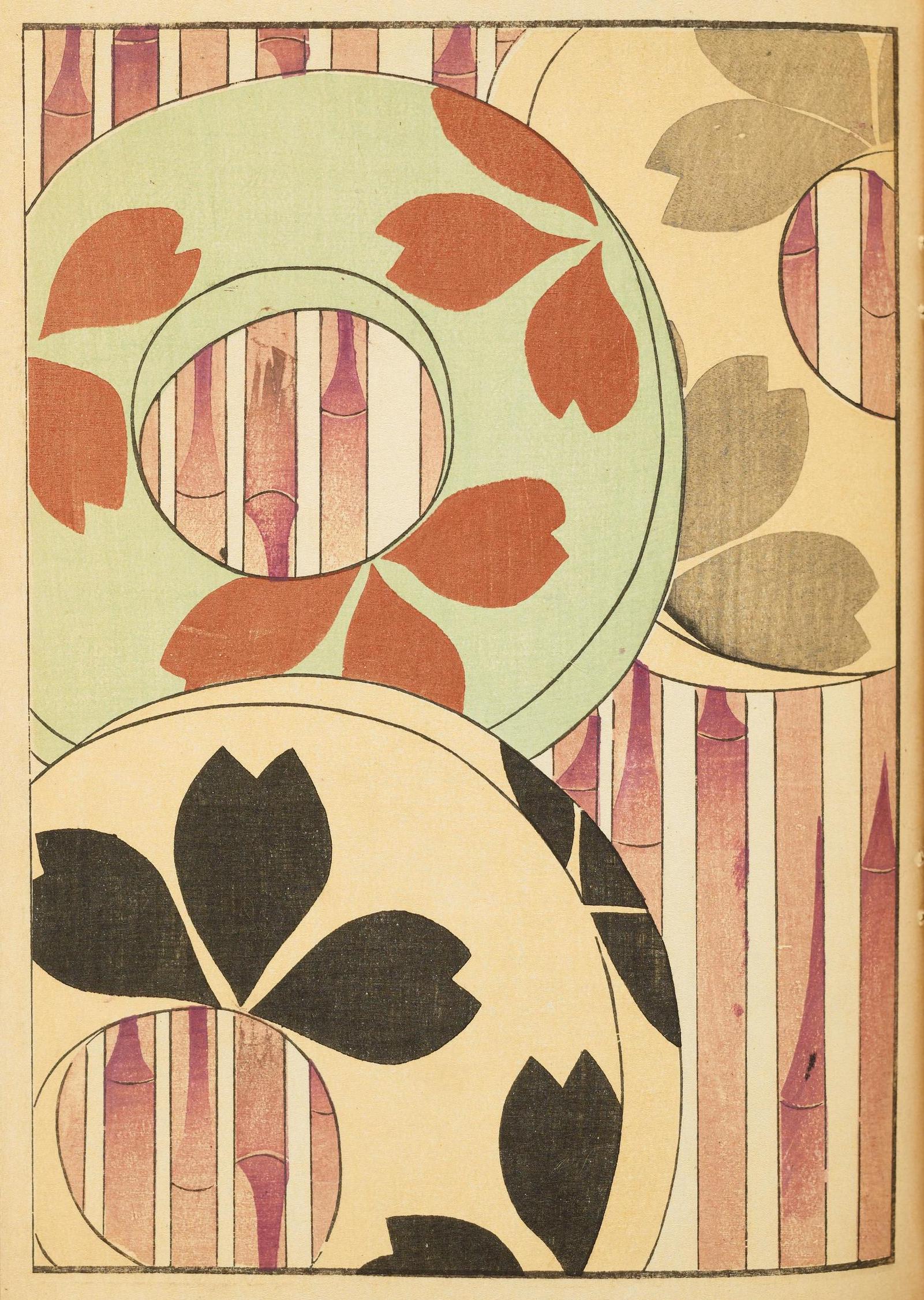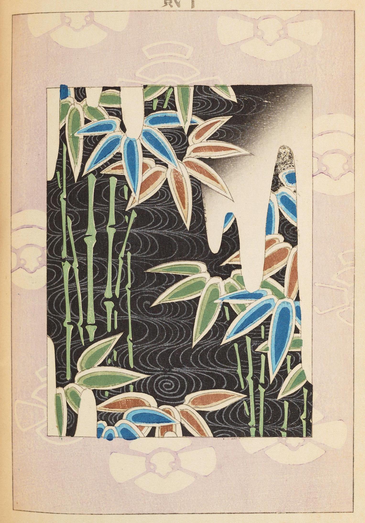 Shin-Bijutsukai (New Oceans of Art) magazine appeared during a watershed in Japanese publishing history: when pattern and design books became standalone works of art. The first Japanese pattern books — colorless woodblock manuals, known as hinagata-bon (雛形本) — were created in the 1660s, when political stability and a bullish economy fostered an expansion in fashion and a desire for voguish textiles. While growing out of this genre, the colorful and abstract designs in Shin-Bijutsukai magazine (1902–1906) reflect a convergence of historical and technological shifts in turn-of-the-century Japanese society. Notably, artists traveling abroad on government grants encountered Art Nouveau and Japonisme — the Western European fondness for a mediated, Japanese aesthetic — which they, in turn, folded back into domestic patterns: forging originality through the prism…