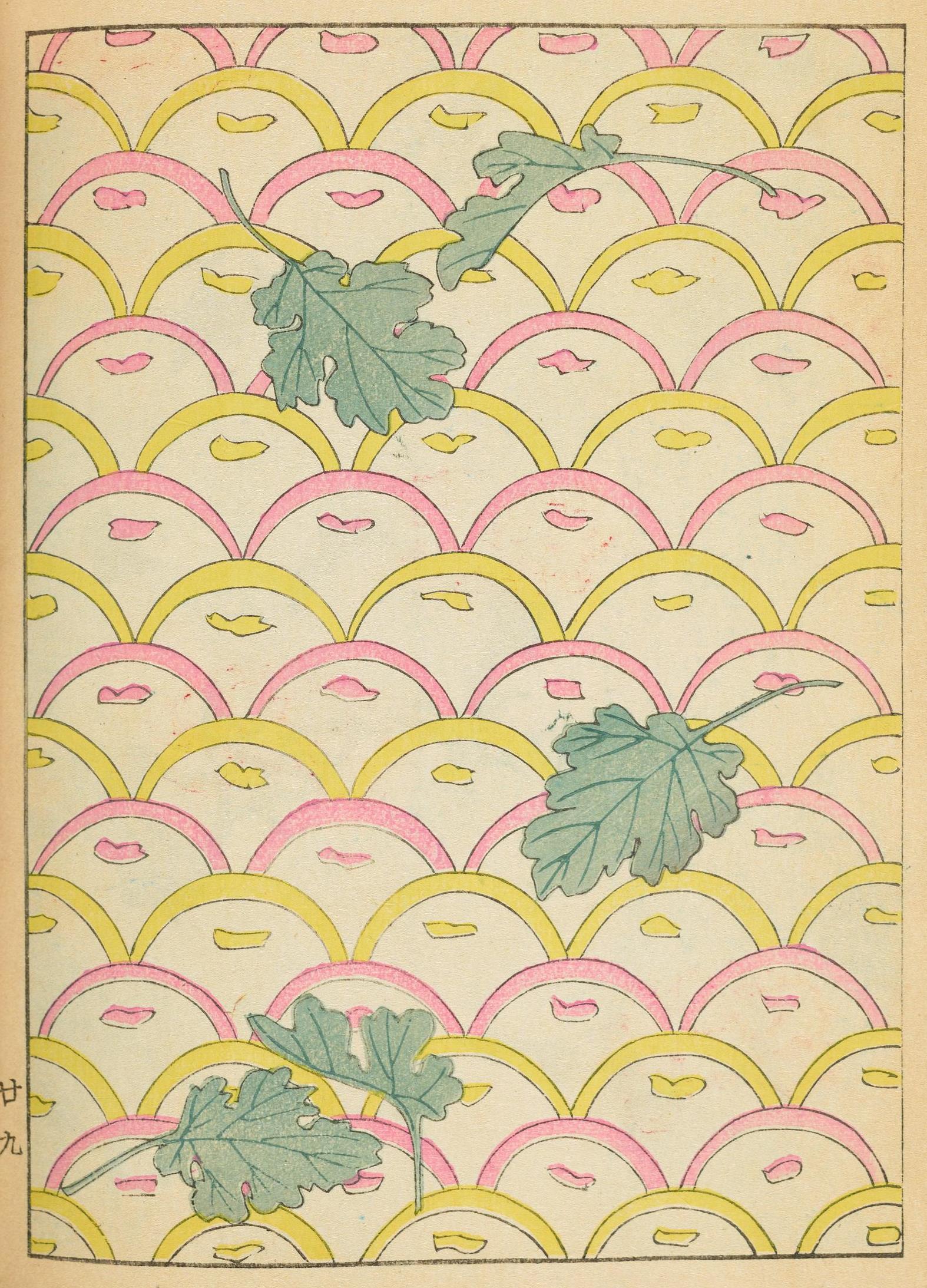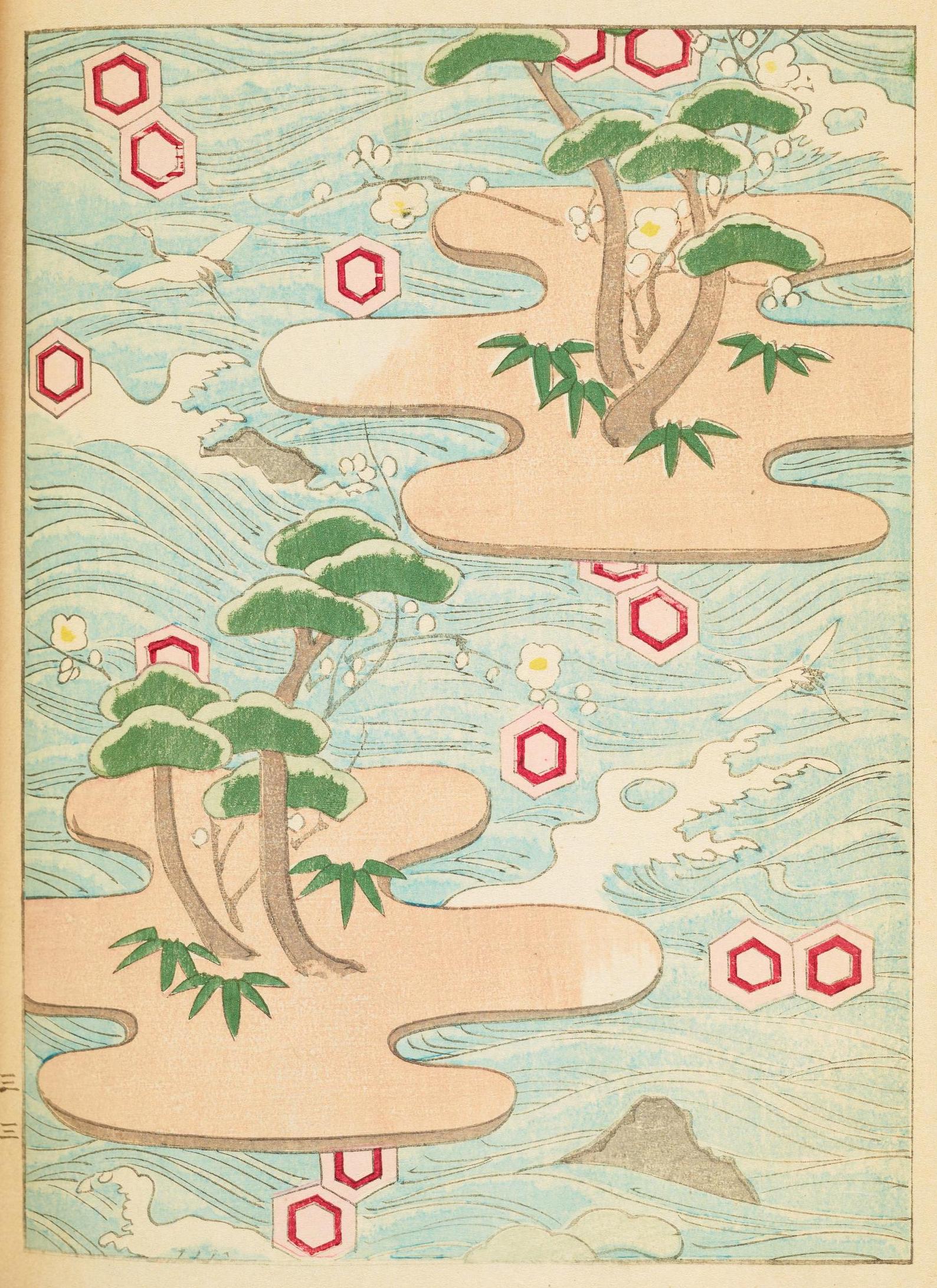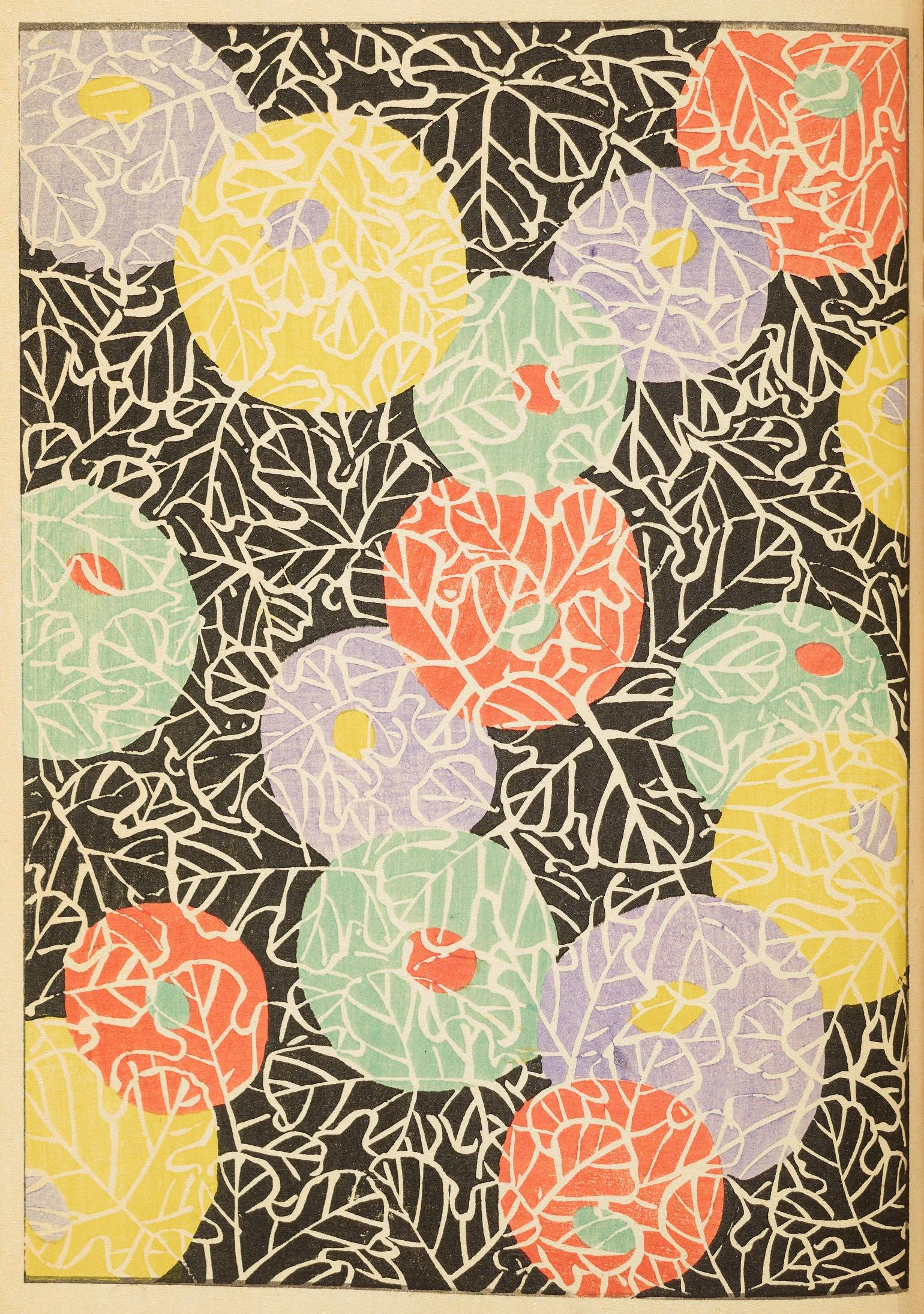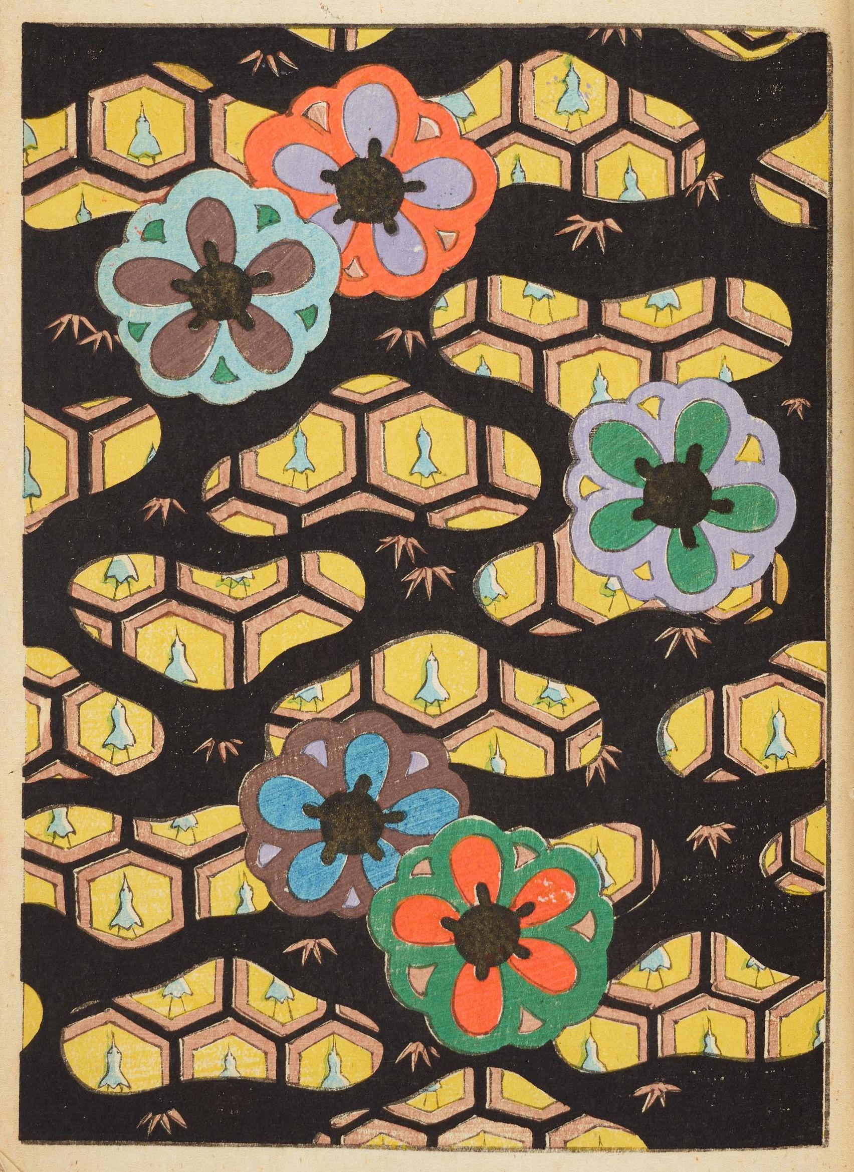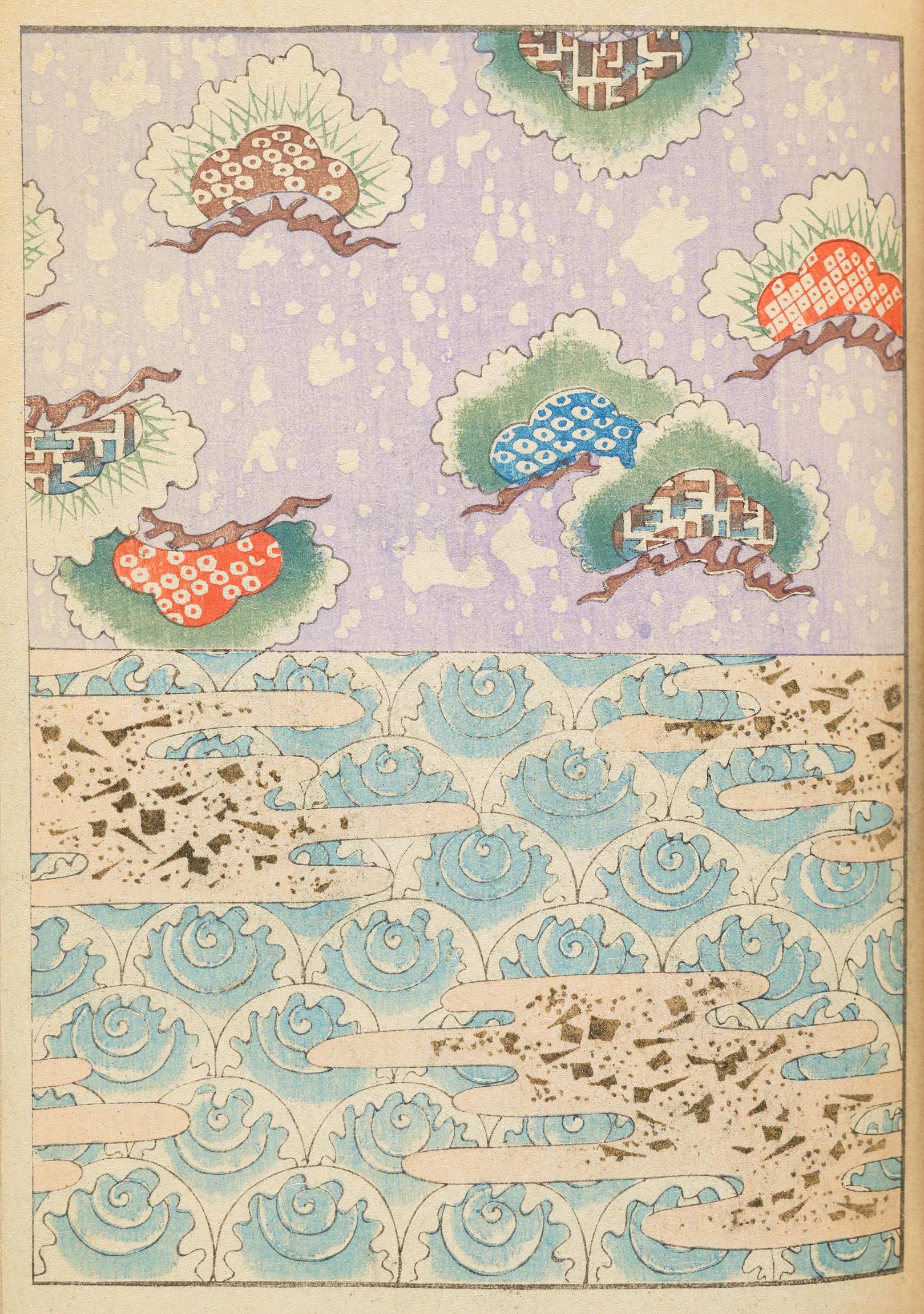 Shin-Bijutsukai (New Oceans of Art) magazine appeared during a watershed in Japanese publishing history: when pattern and design books became standalone works of art. The first Japanese pattern books — colorless woodblock manuals, known as hinagata-bon (雛形本) — were created in the 1660s, when political stability and a bullish economy fostered an expansion in fashion and a desire for voguish textiles. While growing out of this genre, the colorful and abstract designs in Shin-Bijutsukai magazine (1902–1906) reflect a convergence of historical and technological shifts in turn-of-the-century Japanese society. Notably, artists traveling abroad on government grants encountered Art Nouveau and Japonisme — the Western European fondness for a mediated, Japanese aesthetic — which they, in turn, folded back into domestic patterns: forging originality through the prism…