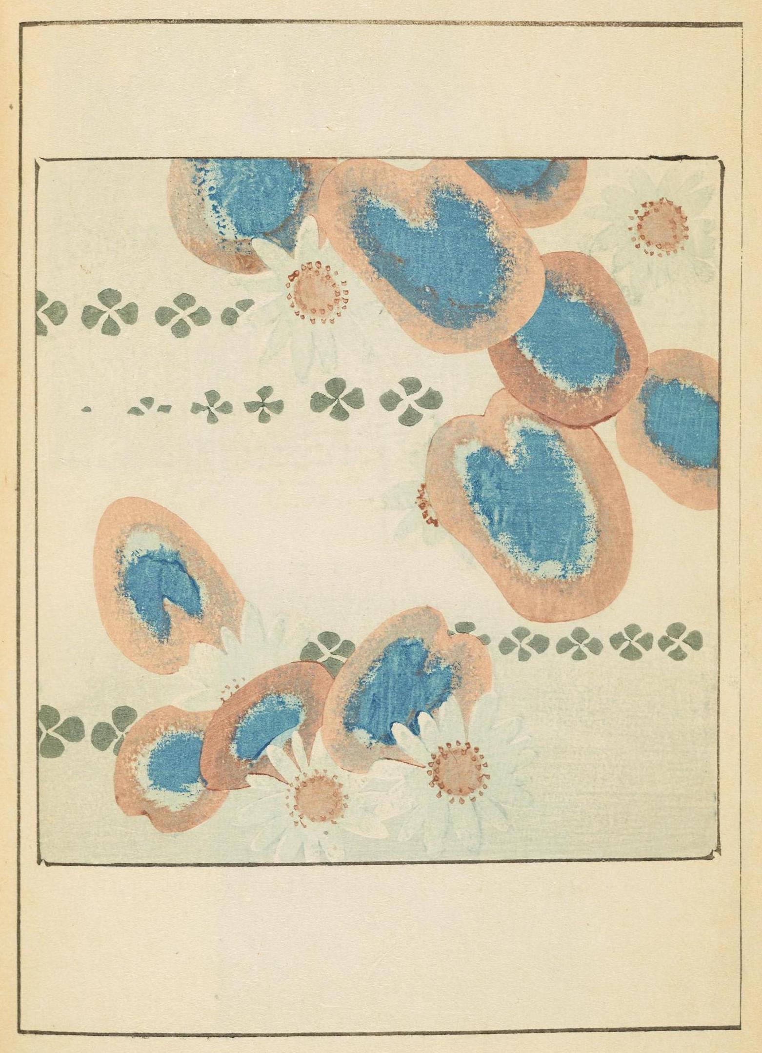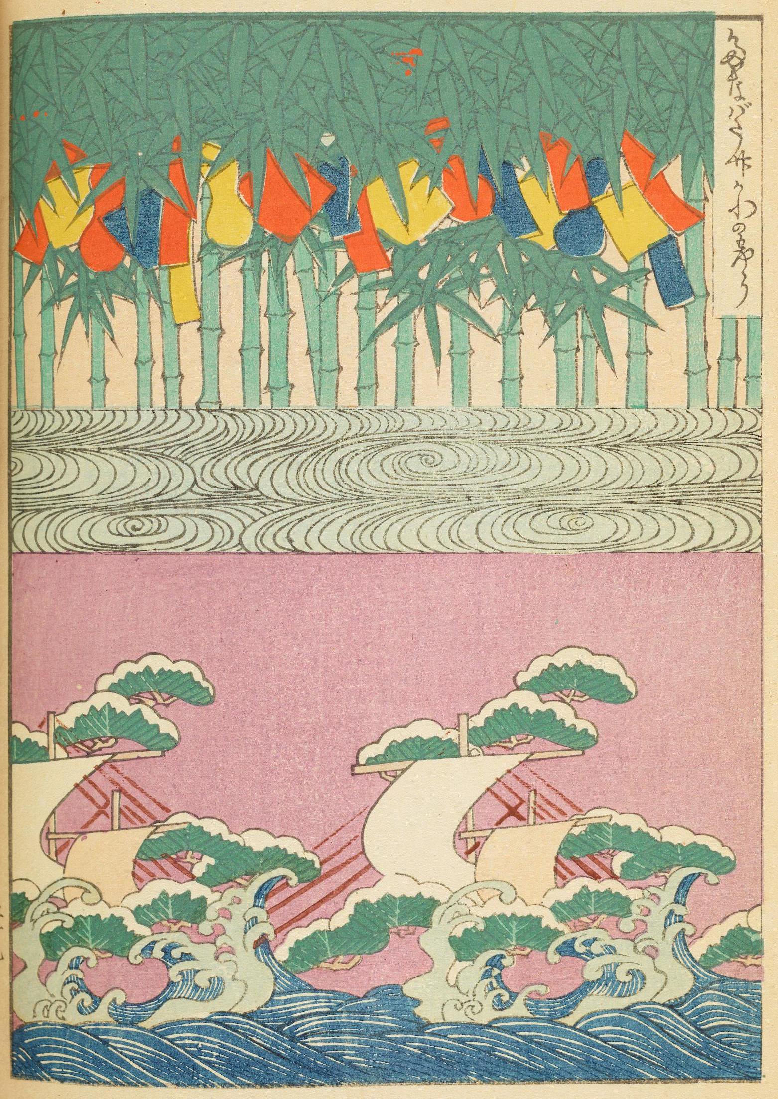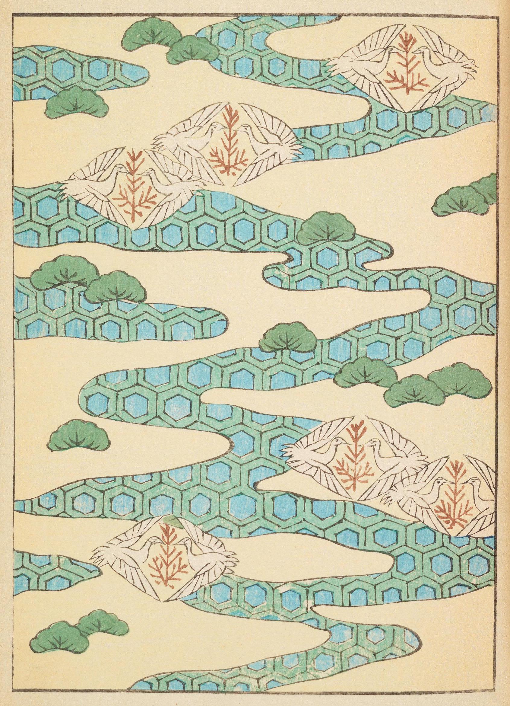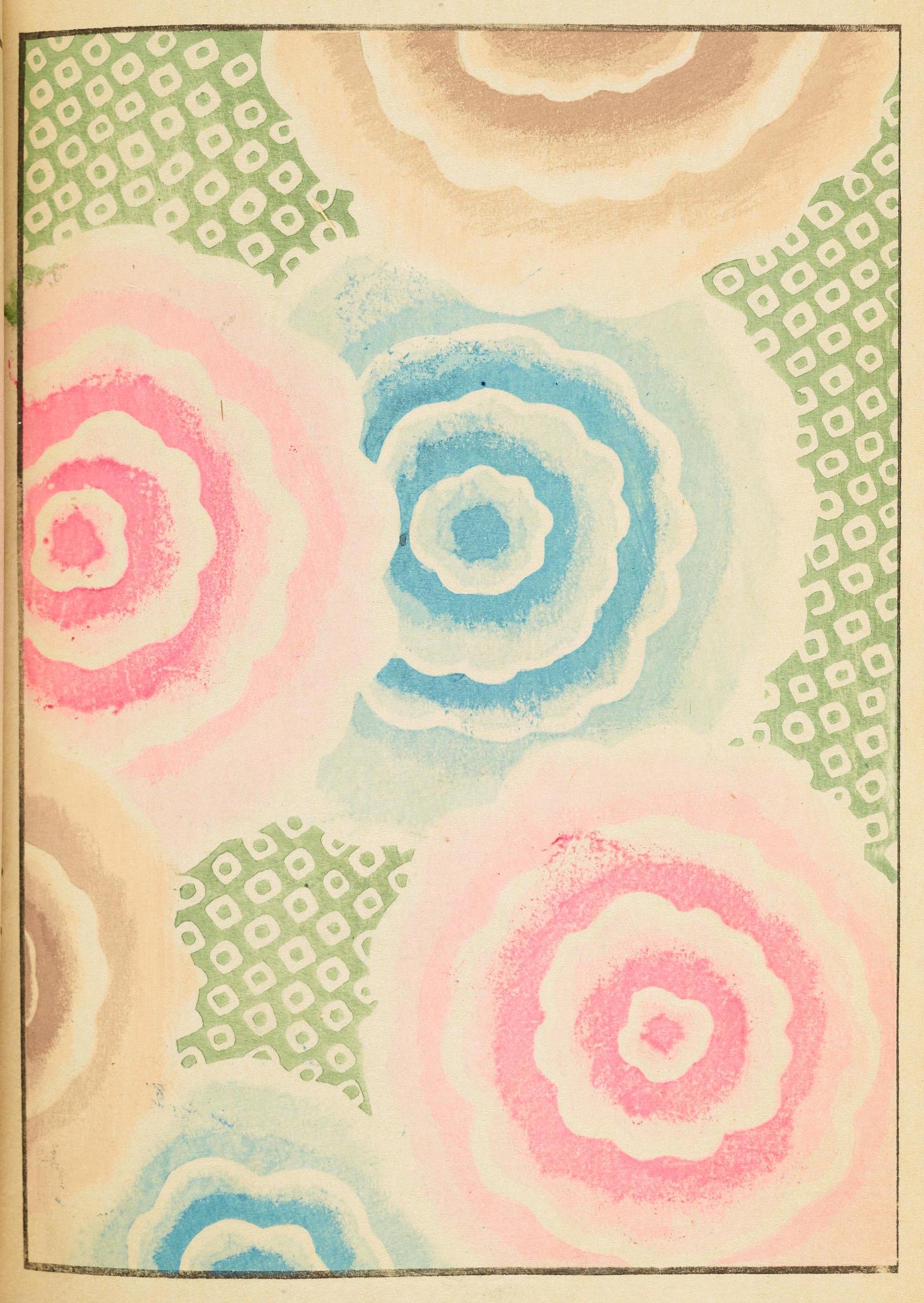 Shin-Bijutsukai (New Oceans of Art) magazine appeared during a watershed in Japanese publishing history: when pattern and design books became standalone works of art. The first Japanese pattern books — colorless woodblock manuals, known as hinagata-bon (雛形本) — were created in the 1660s, when political stability and a bullish economy fostered an expansion in fashion and a desire for voguish textiles. While growing out of this genre, the colorful and abstract designs in Shin-Bijutsukai magazine (1902–1906) reflect a convergence of historical and technological shifts in turn-of-the-century Japanese society. Notably, artists traveling abroad on government grants encountered Art Nouveau and Japonisme — the Western European fondness for a mediated, Japanese aesthetic — which they, in turn, folded back into domestic patterns: forging originality through the prism…