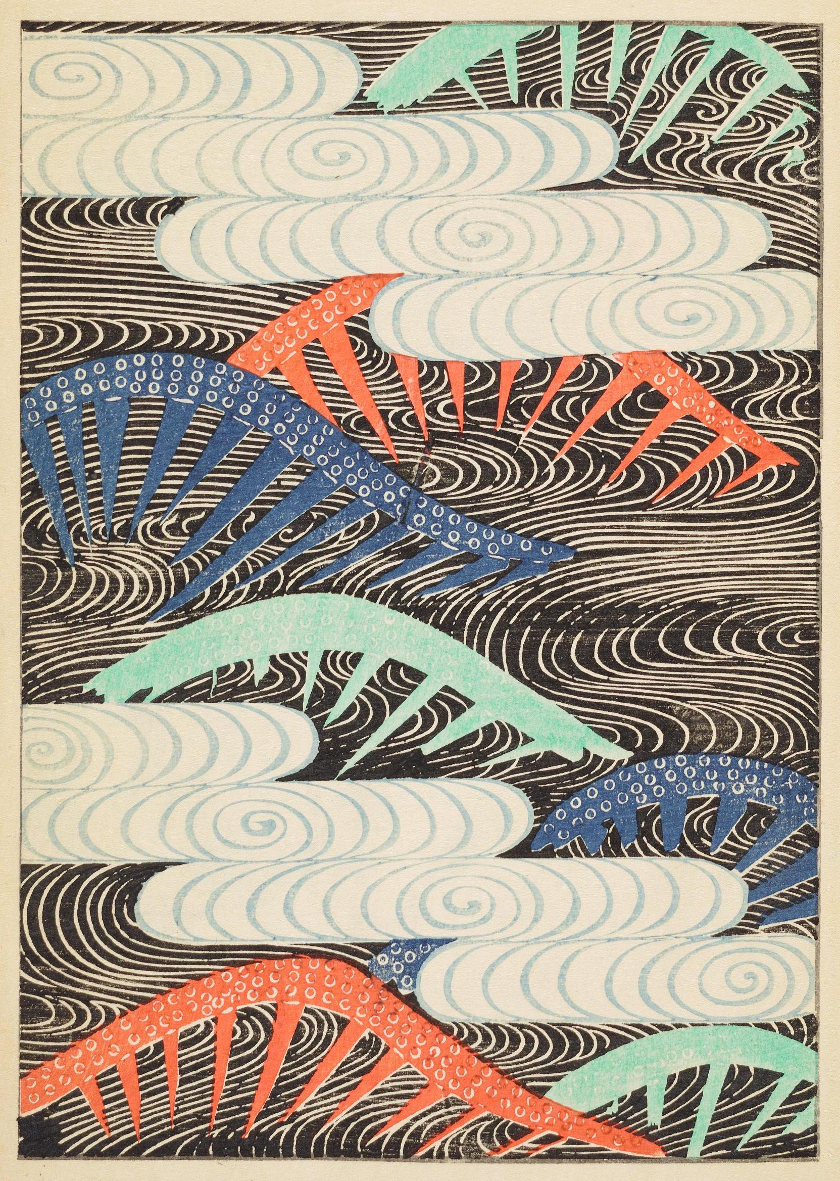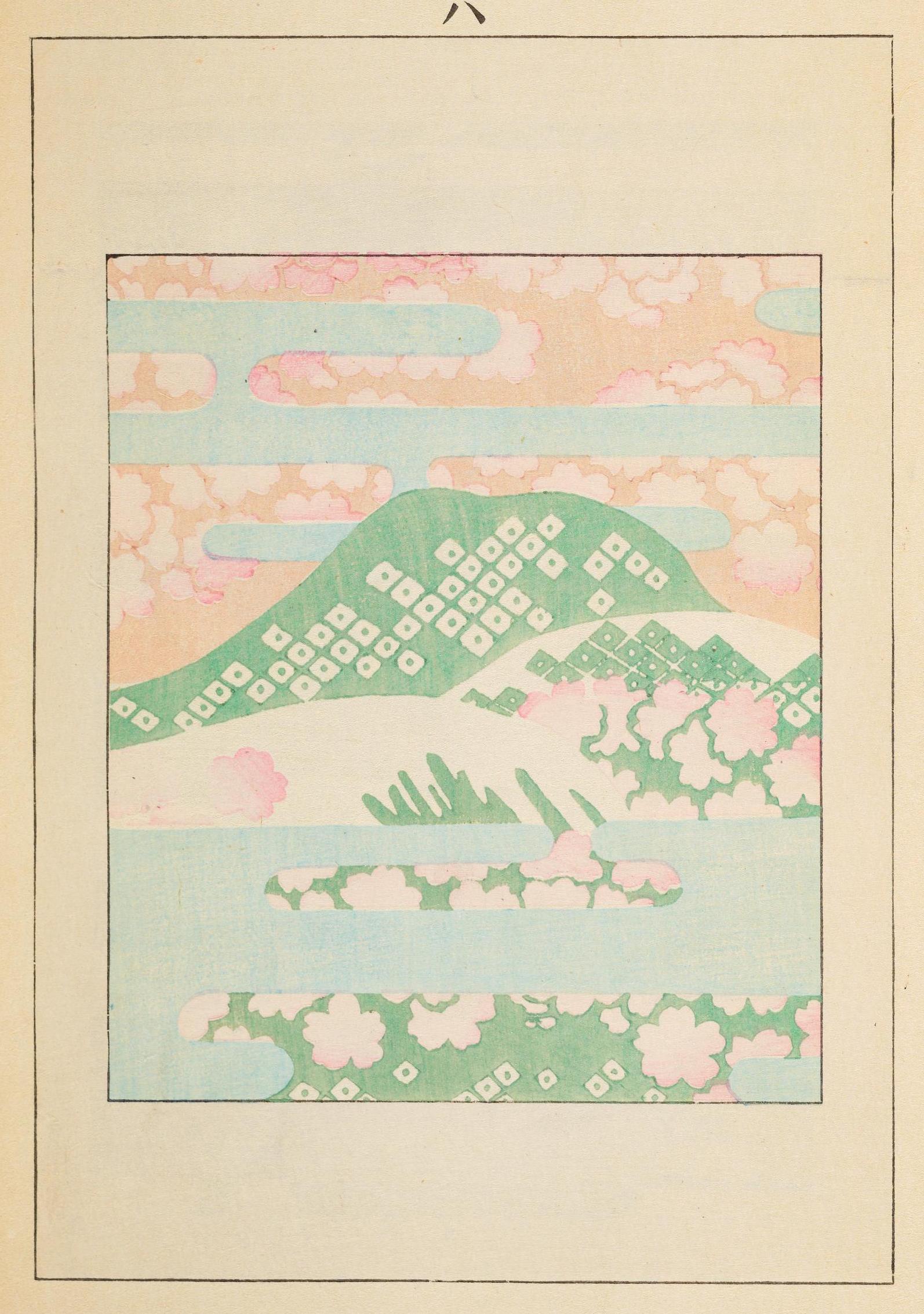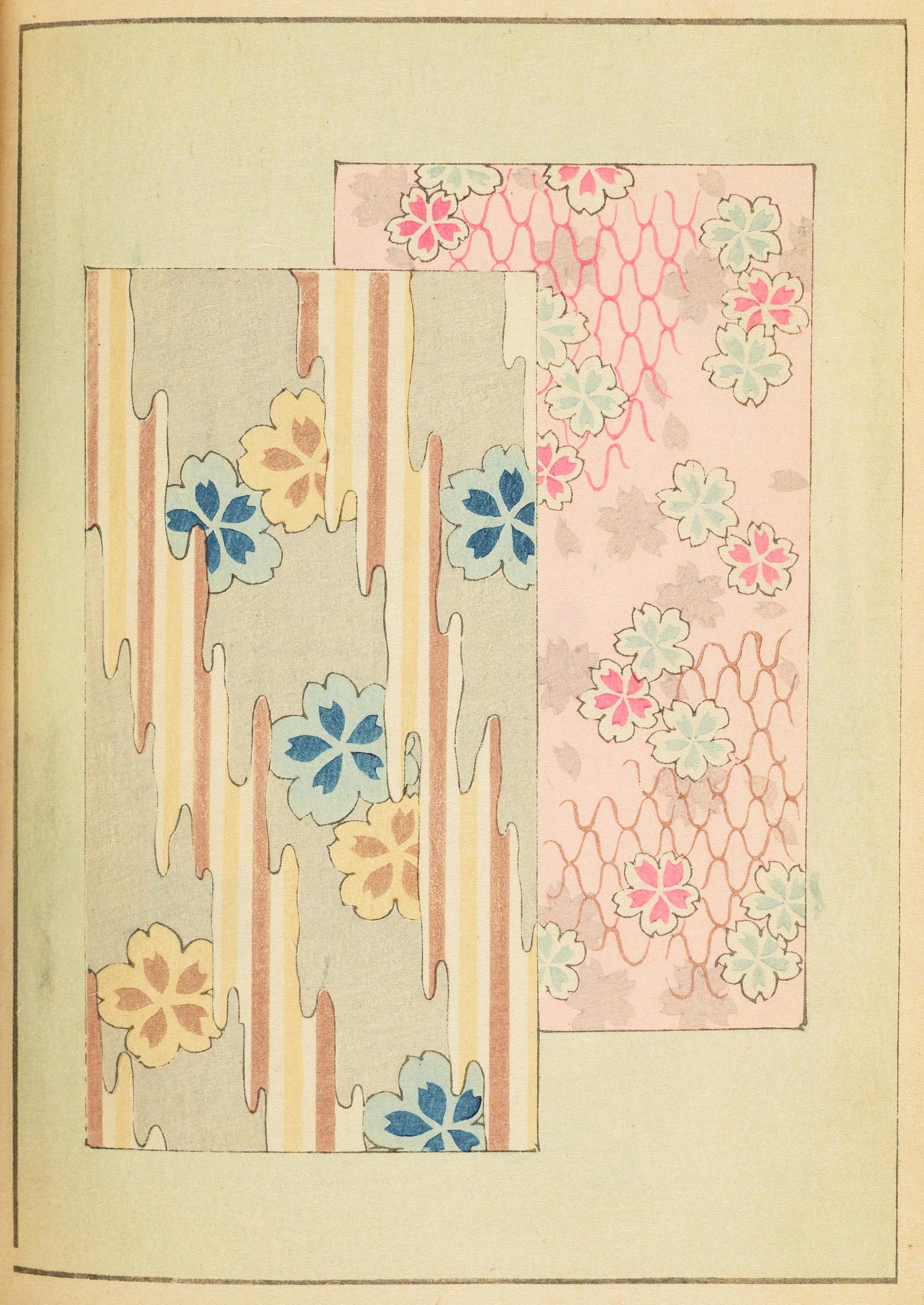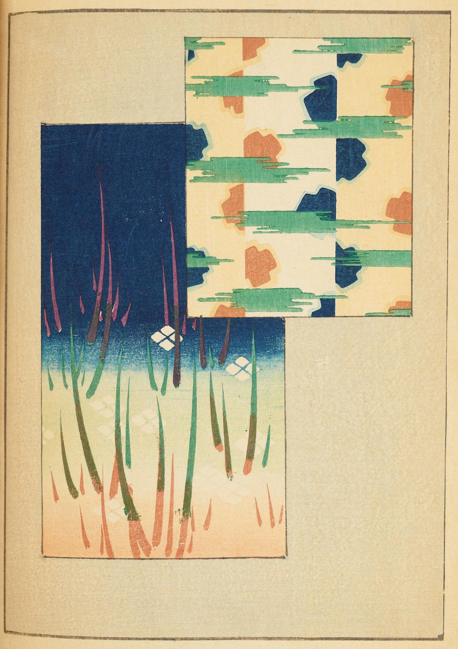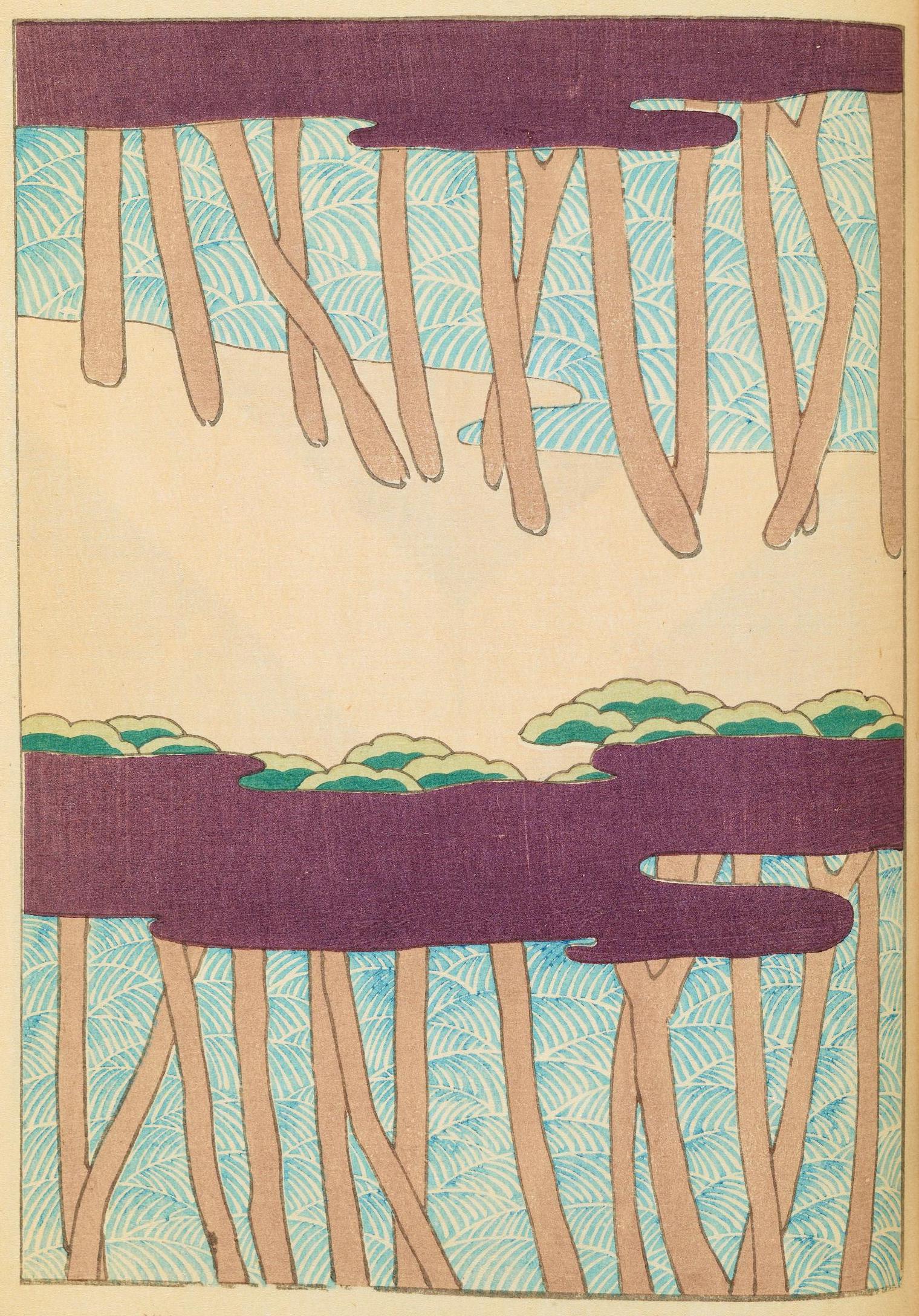 Shin-Bijutsukai (New Oceans of Art) magazine appeared during a watershed in Japanese publishing history: when pattern and design books became standalone works of art. The first Japanese pattern books — colorless woodblock manuals, known as hinagata-bon (雛形本) — were created in the 1660s, when political stability and a bullish economy fostered an expansion in fashion and a desire for voguish textiles. While growing out of this genre, the colorful and abstract designs in Shin-Bijutsukai magazine (1902–1906) reflect a convergence of historical and technological shifts in turn-of-the-century Japanese society. Notably, artists traveling abroad on government grants encountered Art Nouveau and Japonisme — the Western European fondness for a mediated, Japanese aesthetic — which they, in turn, folded back into domestic patterns: forging originality through the prism…