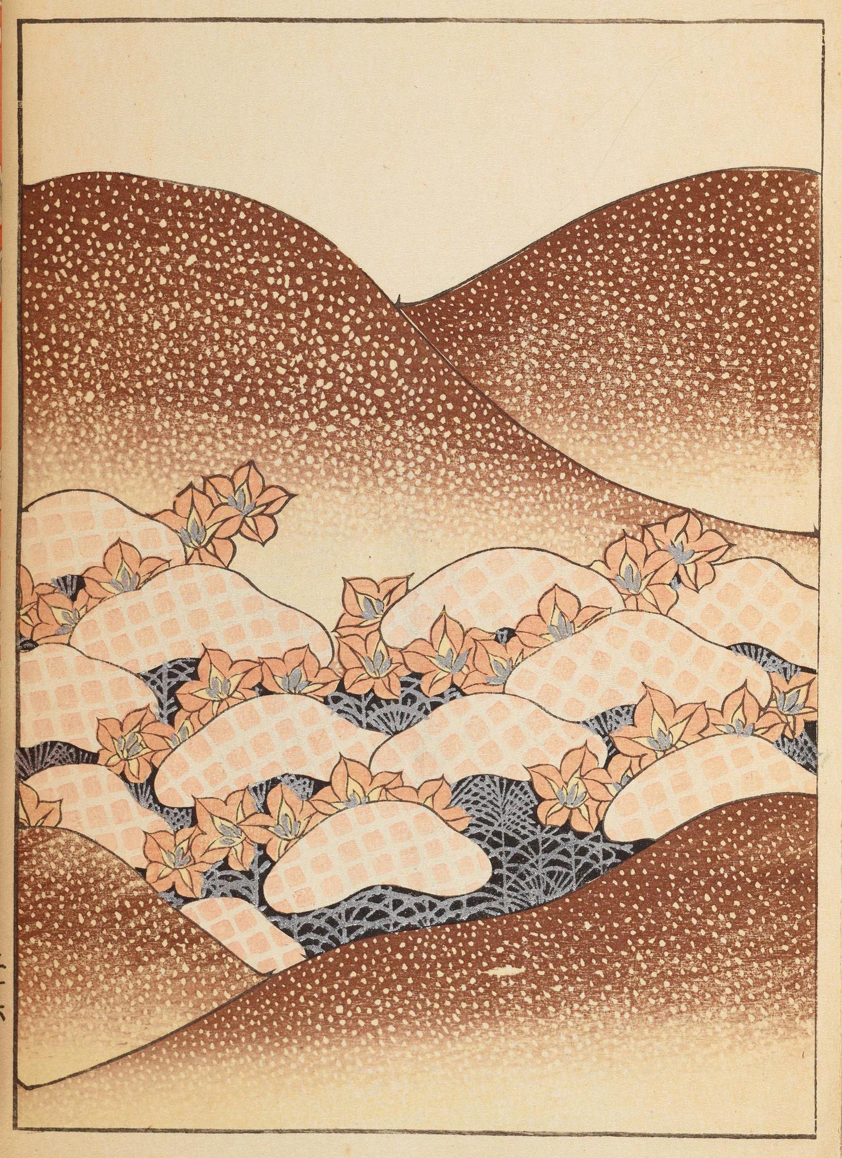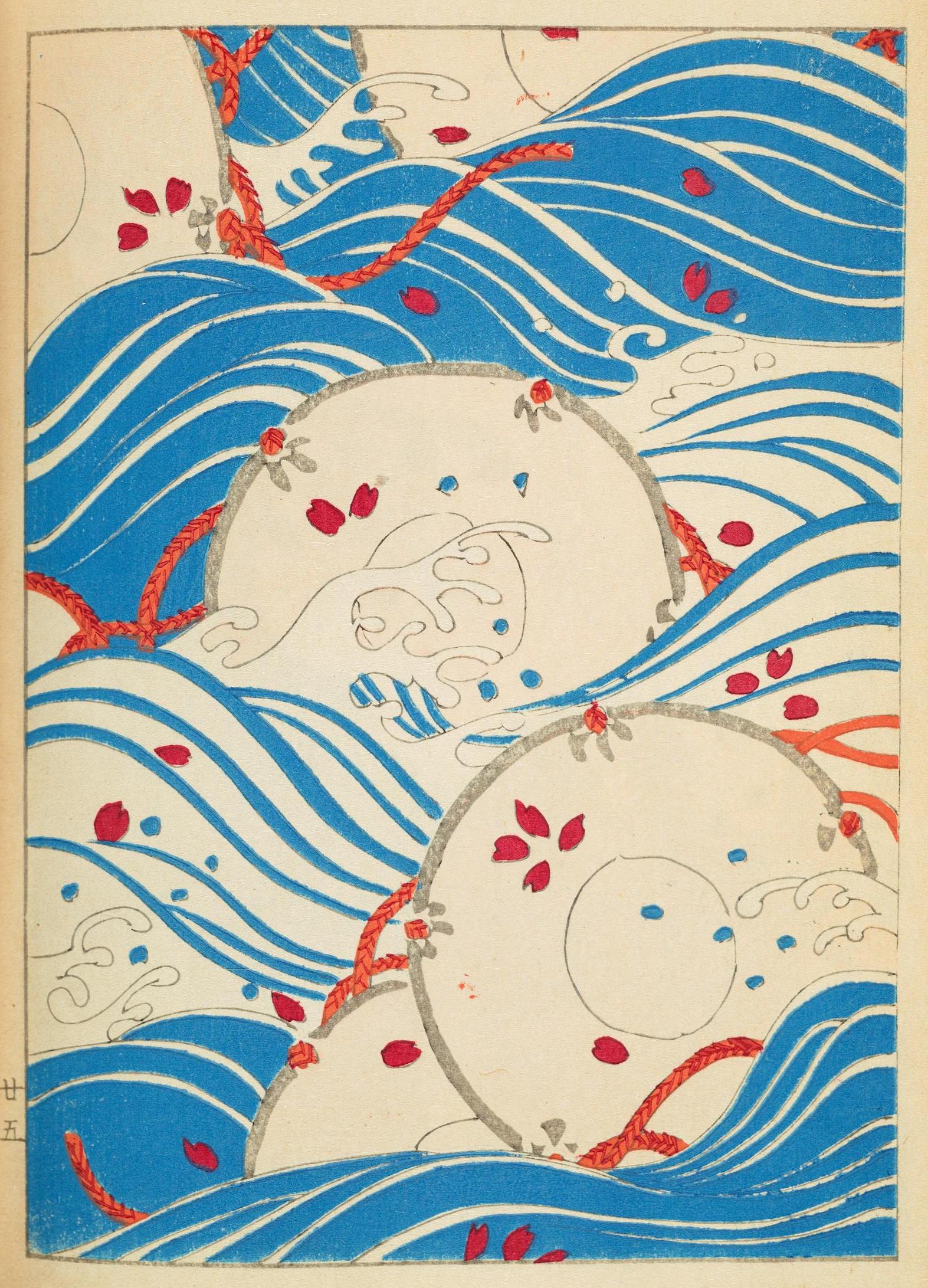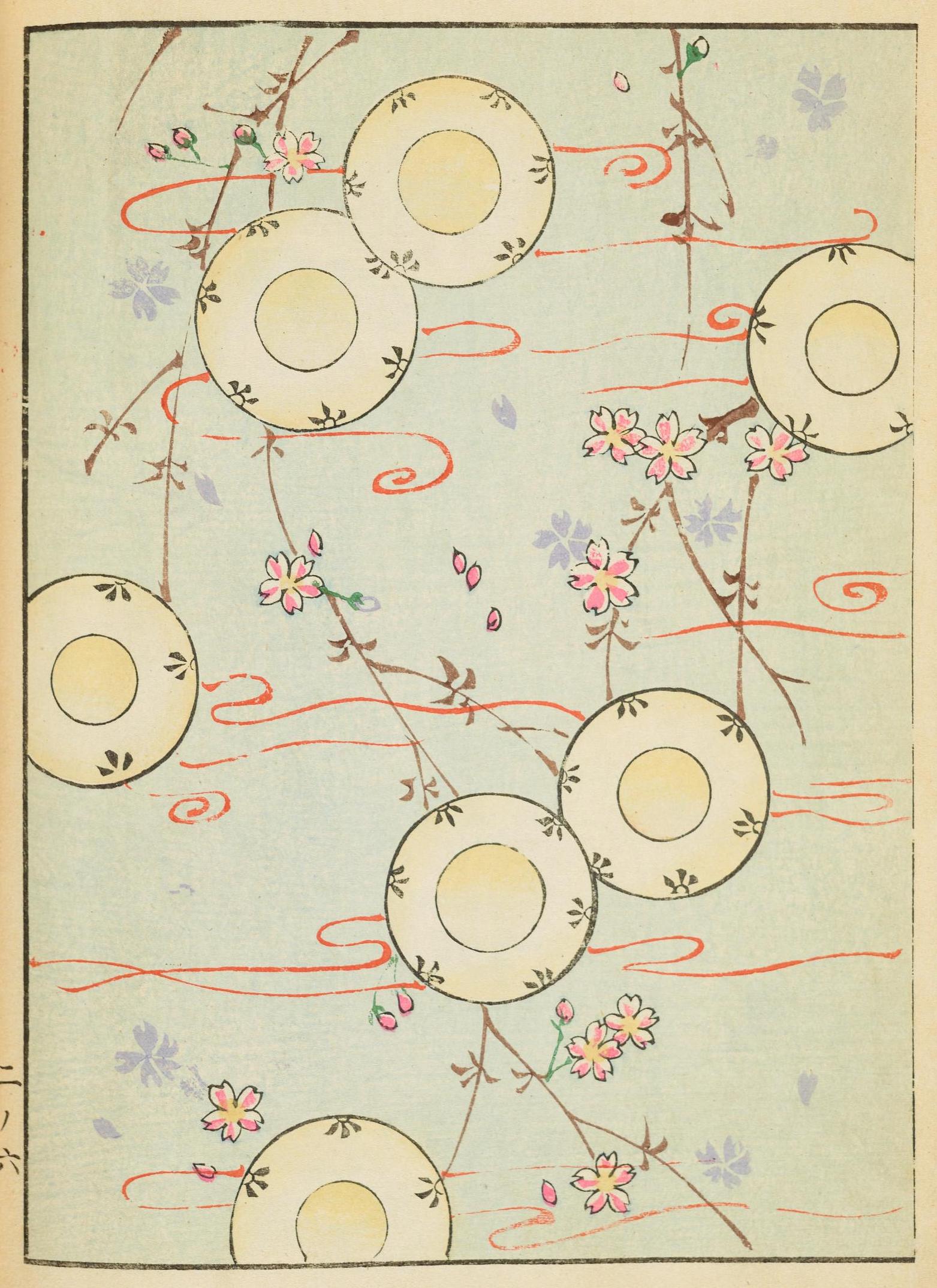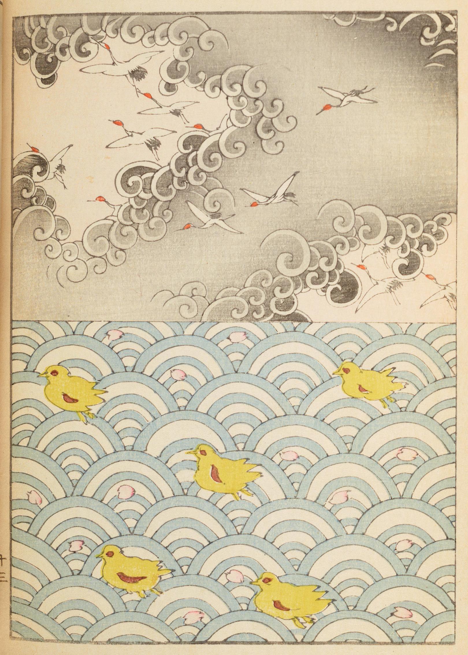 Shin-Bijutsukai (New Oceans of Art) magazine appeared during a watershed in Japanese publishing history: when pattern and design books became standalone works of art. The first Japanese pattern books — colorless woodblock manuals, known as hinagata-bon (雛形本) — were created in the 1660s, when political stability and a bullish economy fostered an expansion in fashion and a desire for voguish textiles. While growing out of this genre, the colorful and abstract designs in Shin-Bijutsukai magazine (1902–1906) reflect a convergence of historical and technological shifts in turn-of-the-century Japanese society. Notably, artists traveling abroad on government grants encountered Art Nouveau and Japonisme — the Western European fondness for a mediated, Japanese aesthetic — which they, in turn, folded back into domestic patterns: forging originality through the prism…