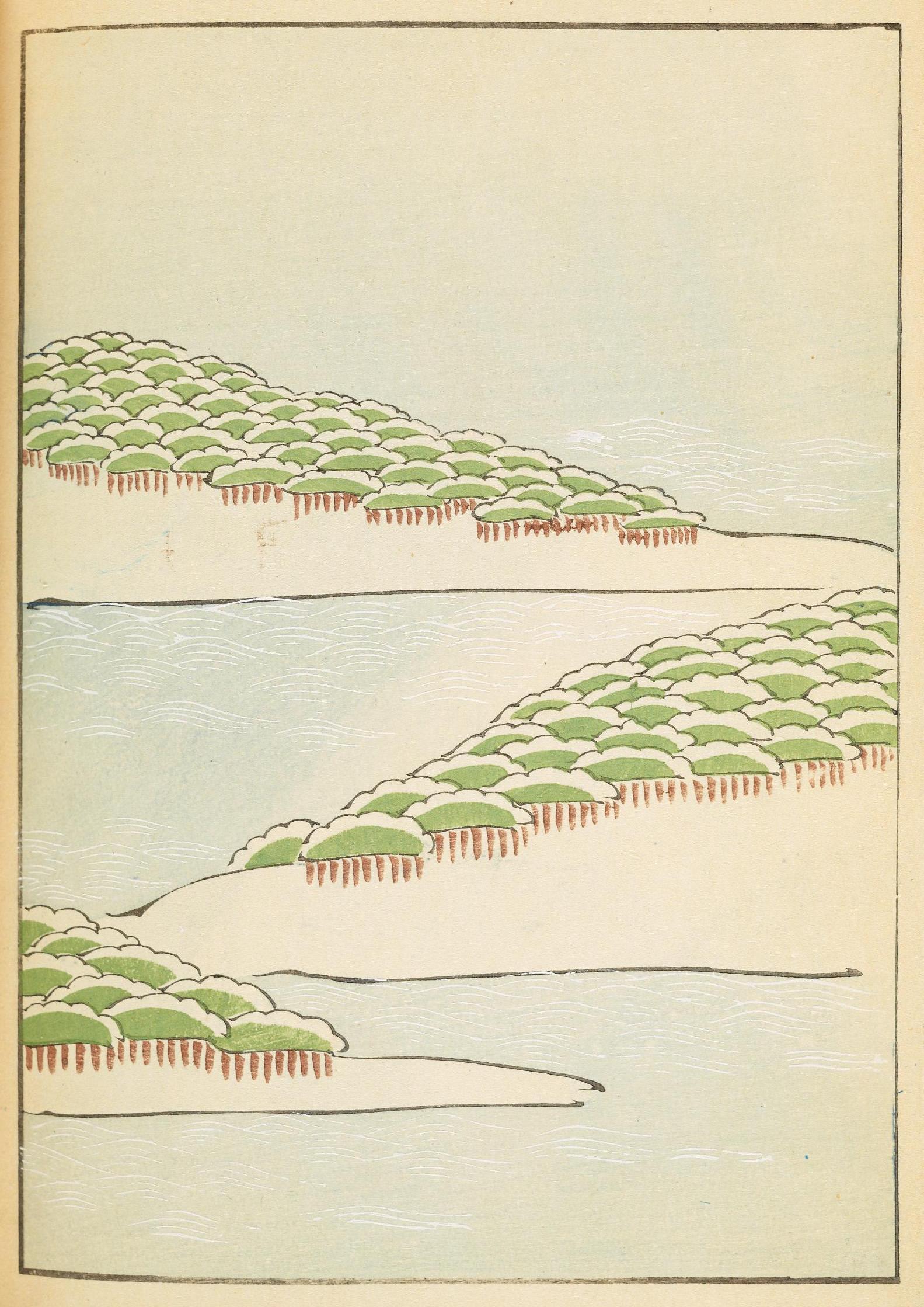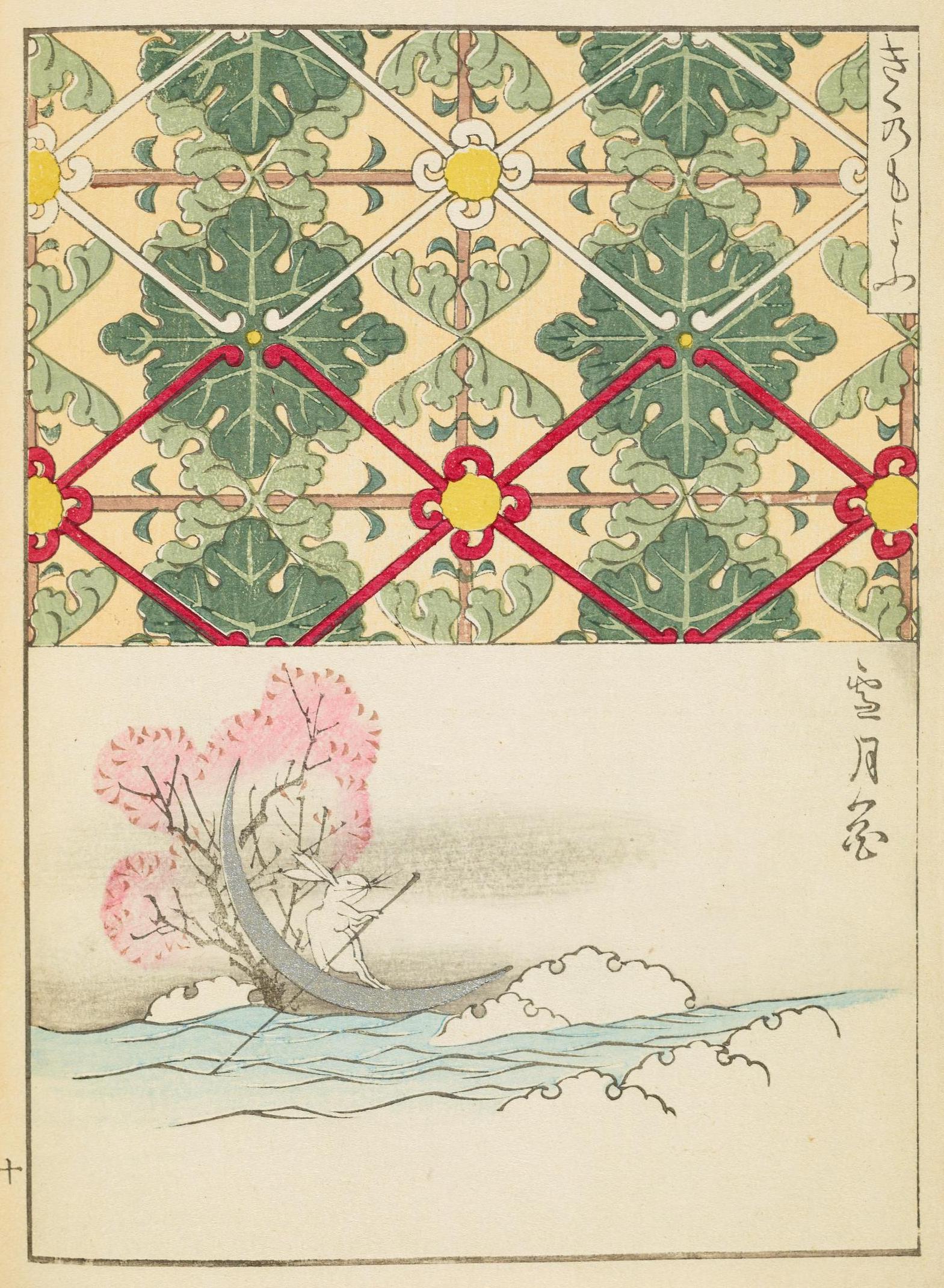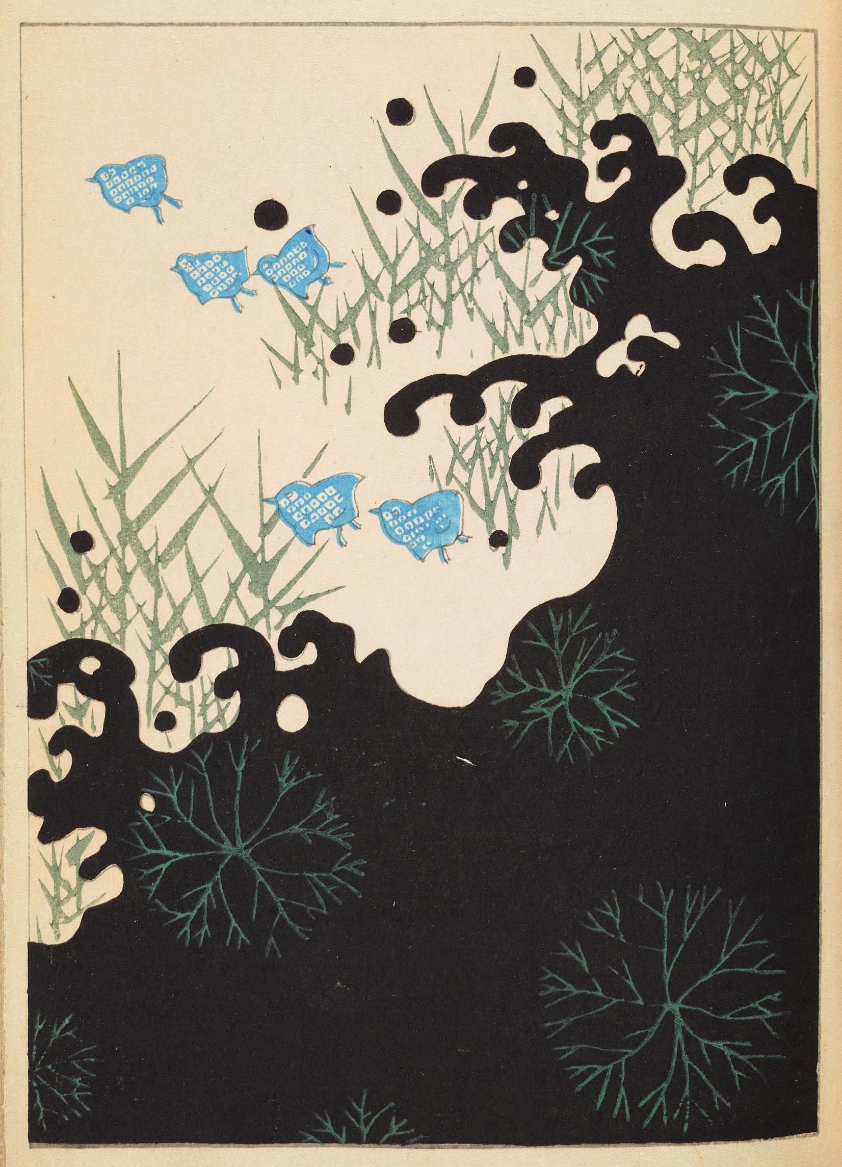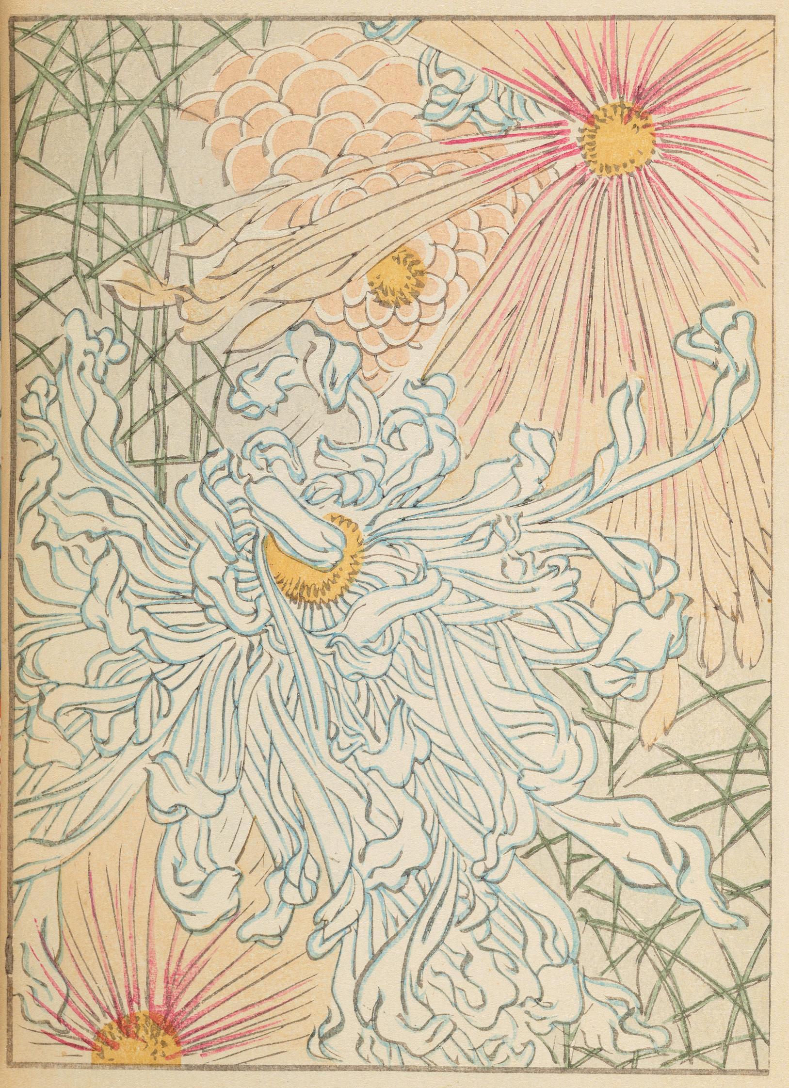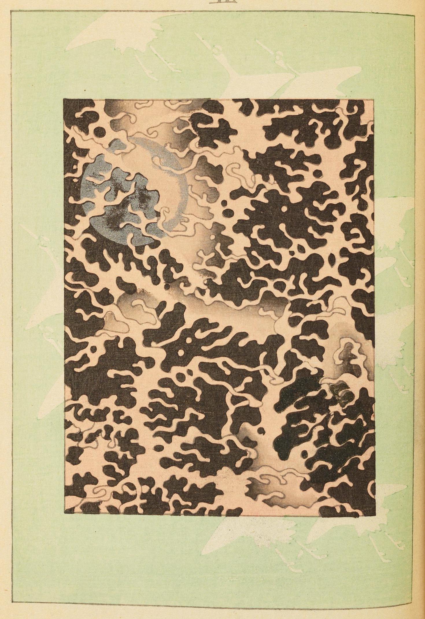 Shin-Bijutsukai (New Oceans of Art) magazine appeared during a watershed in Japanese publishing history: when pattern and design books became standalone works of art. The first Japanese pattern books — colorless woodblock manuals, known as hinagata-bon (雛形本) — were created in the 1660s, when political stability and a bullish economy fostered an expansion in fashion and a desire for voguish textiles. While growing out of this genre, the colorful and abstract designs in Shin-Bijutsukai magazine (1902–1906) reflect a convergence of historical and technological shifts in turn-of-the-century Japanese society. Notably, artists traveling abroad on government grants encountered Art Nouveau and Japonisme — the Western European fondness for a mediated, Japanese aesthetic — which they, in turn, folded back into domestic patterns: forging originality through the prism…