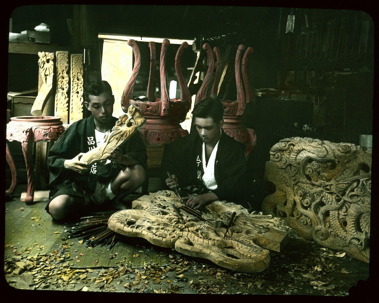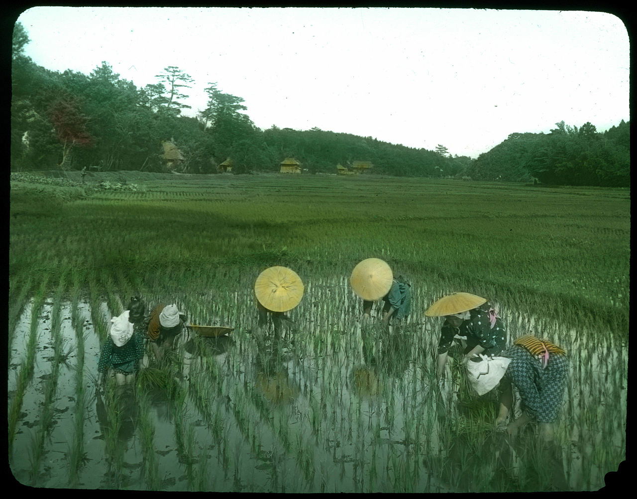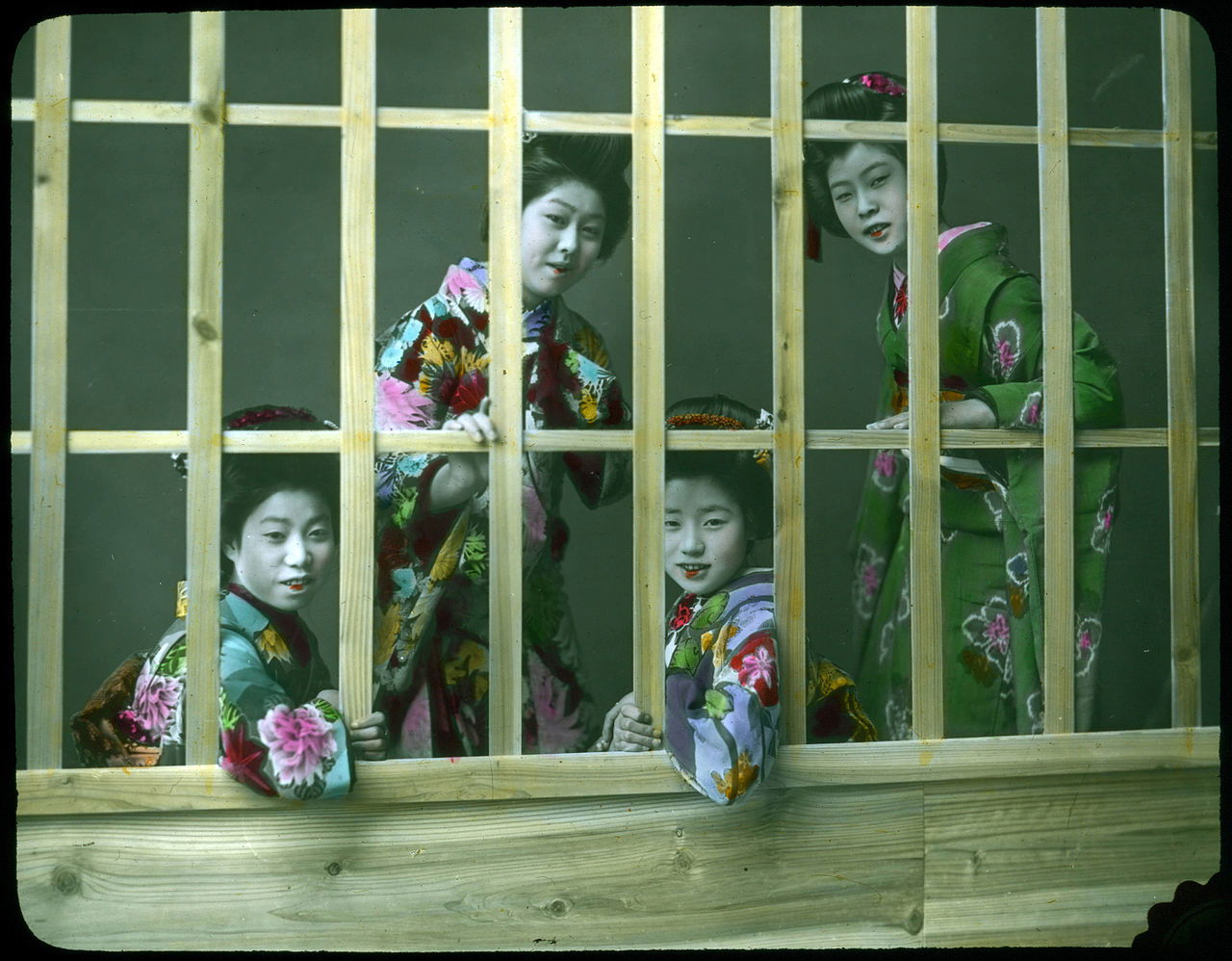 These glass-plate transparencies depicting life in Japan, likely the work of a number of photographers (names unknown), were collected in Yokohama during the years 1908–1918 by Herbert Geddes, a manager for a Canadian import-export company. According to the University of Victoria, where the plates are housed, such photographs (known as "Yokohama Photographs") were “sold to foreign tourists between about 1869 and 1912, before cameras and postcards were generally available”.