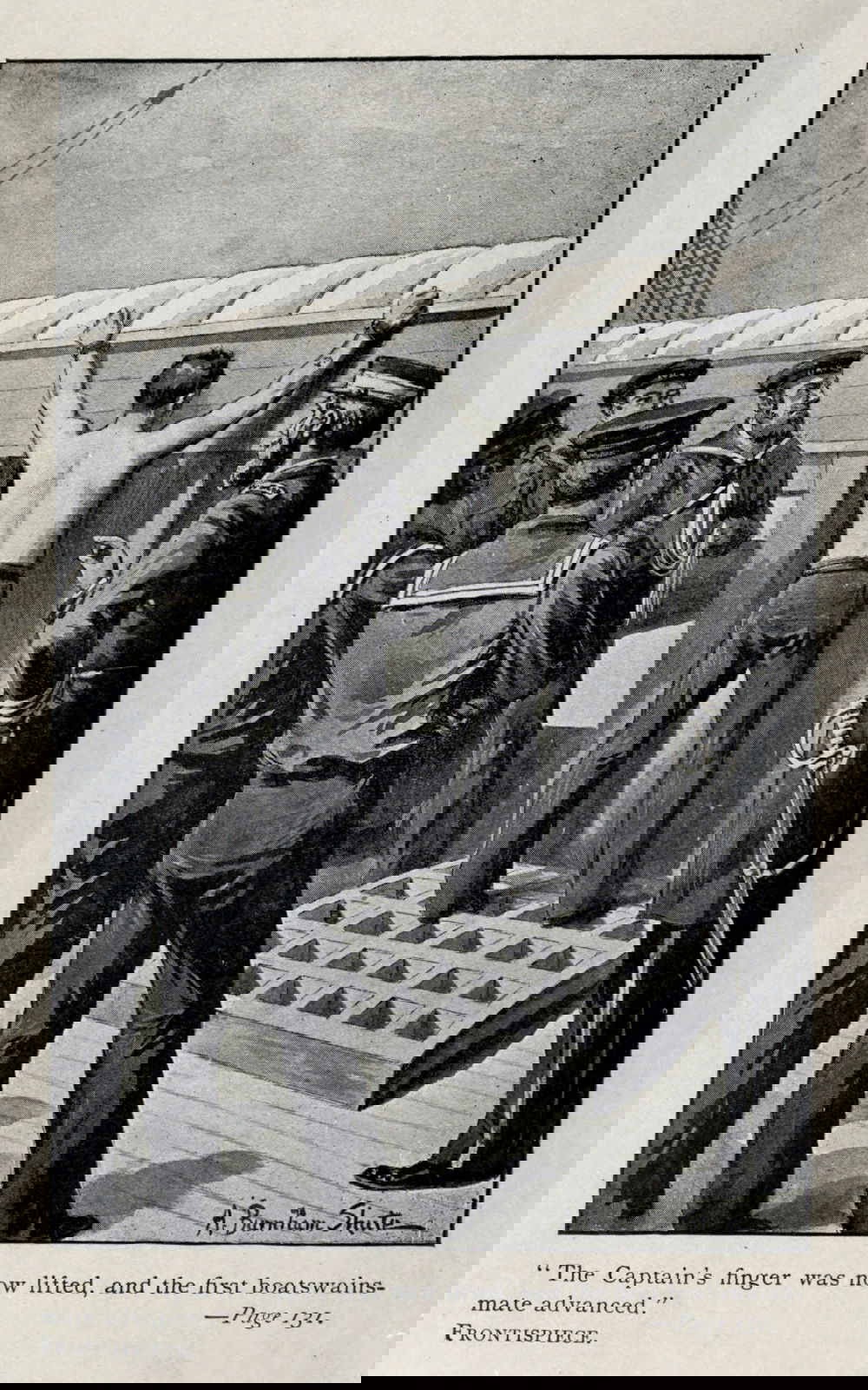 Frontispiece by Augustus Burnham Shute to a ca. 1892 edition of Herman Melville's White-Jacket.