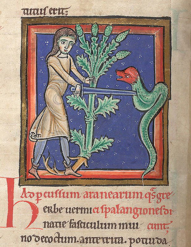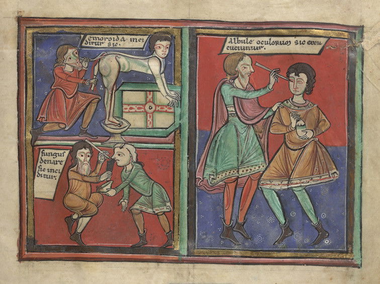 Wonderful series of miniatures from a late 12th-century manuscript thought to hail from England or Northern France, once owned by the monastery at Ourscamps just north of Paris, and now in the collection at the British Library (BL Sloane 1975). As well as the delightfully abstract depictions of herbal plants (including Cannabis), a variety of medieval medical procedures are also shown, such as cauterization and the removal of haemorrhoids. The manuscript is home to more than two-hundred of these images, below is a selection of some of our favourites.